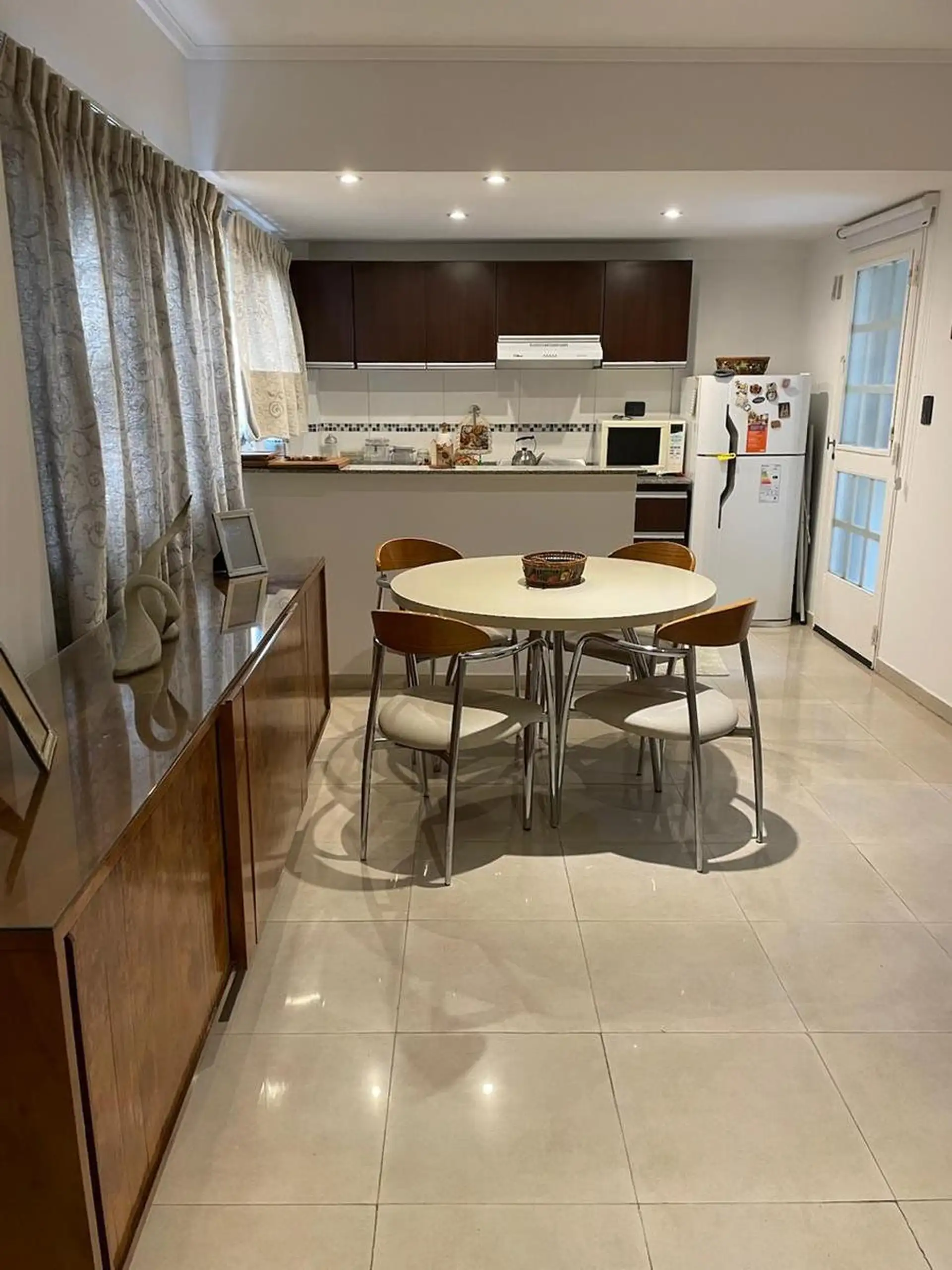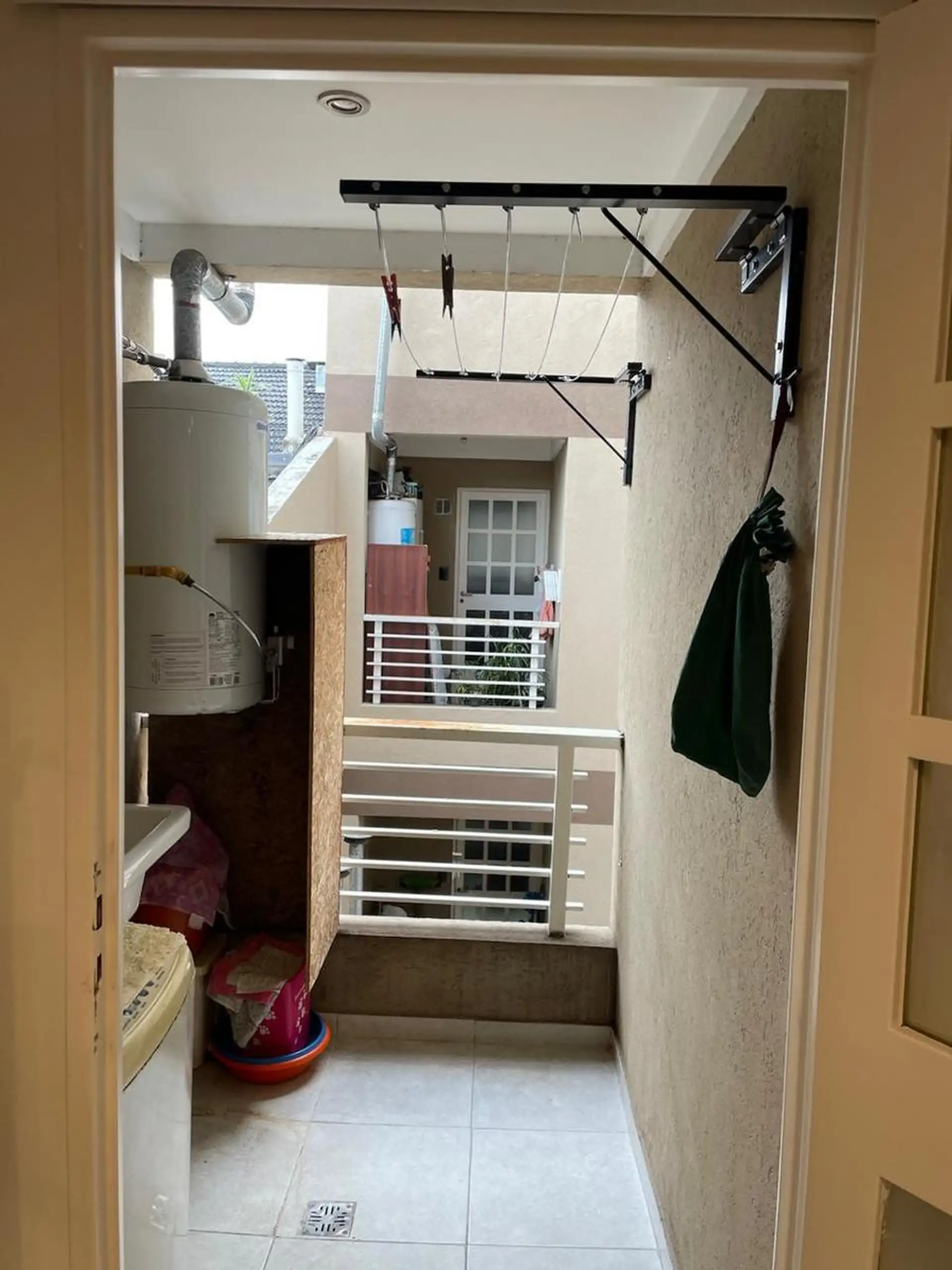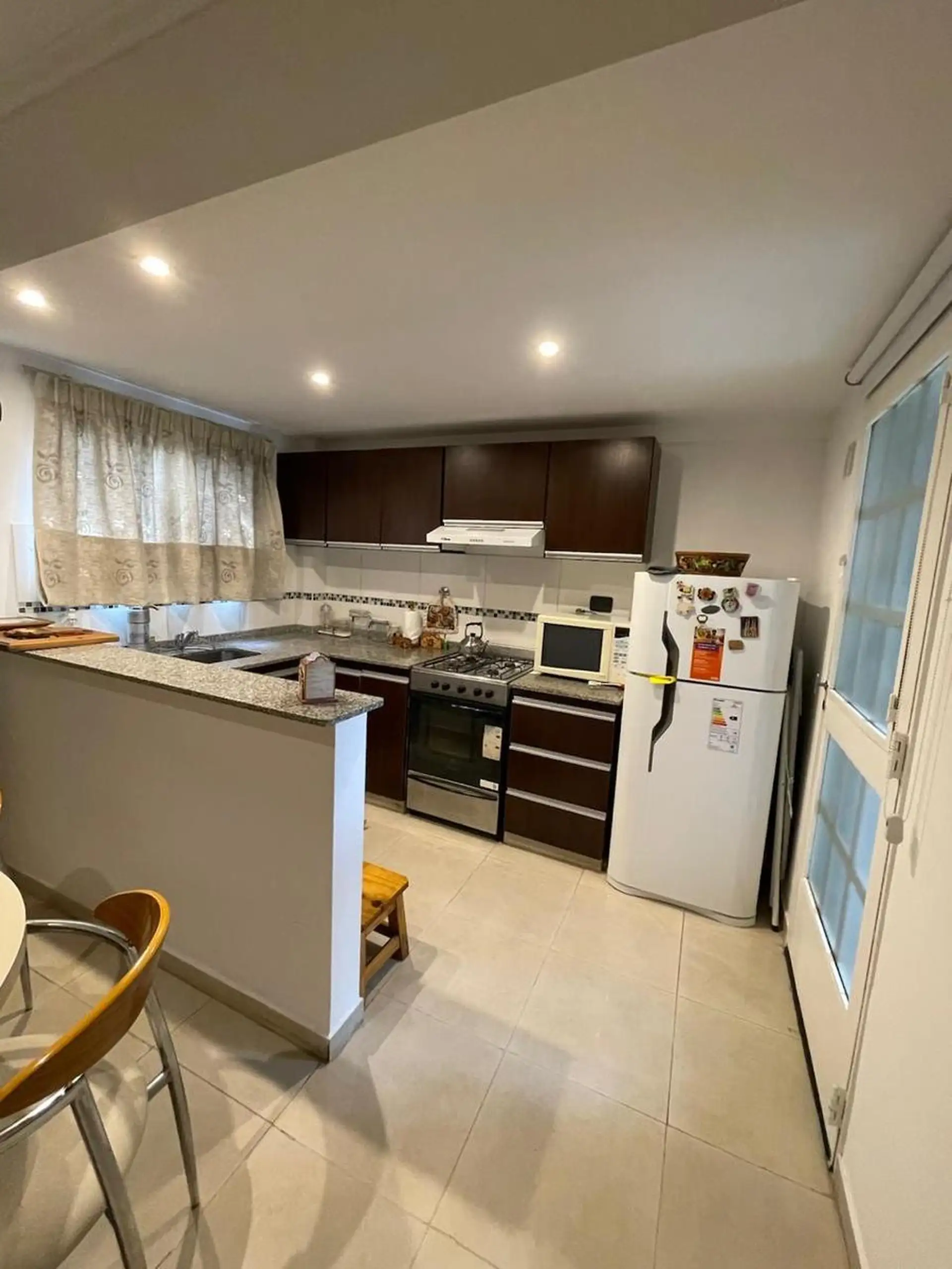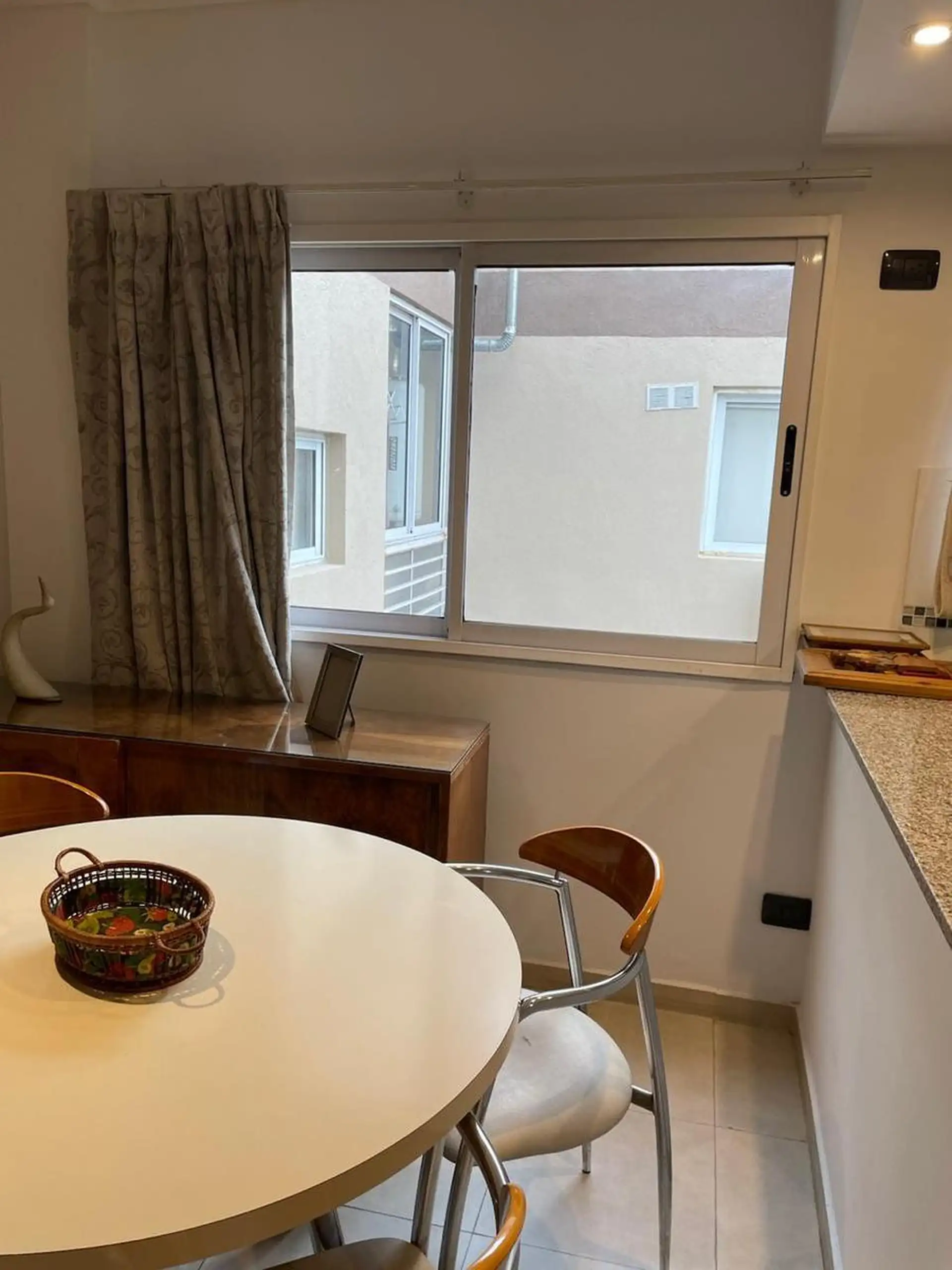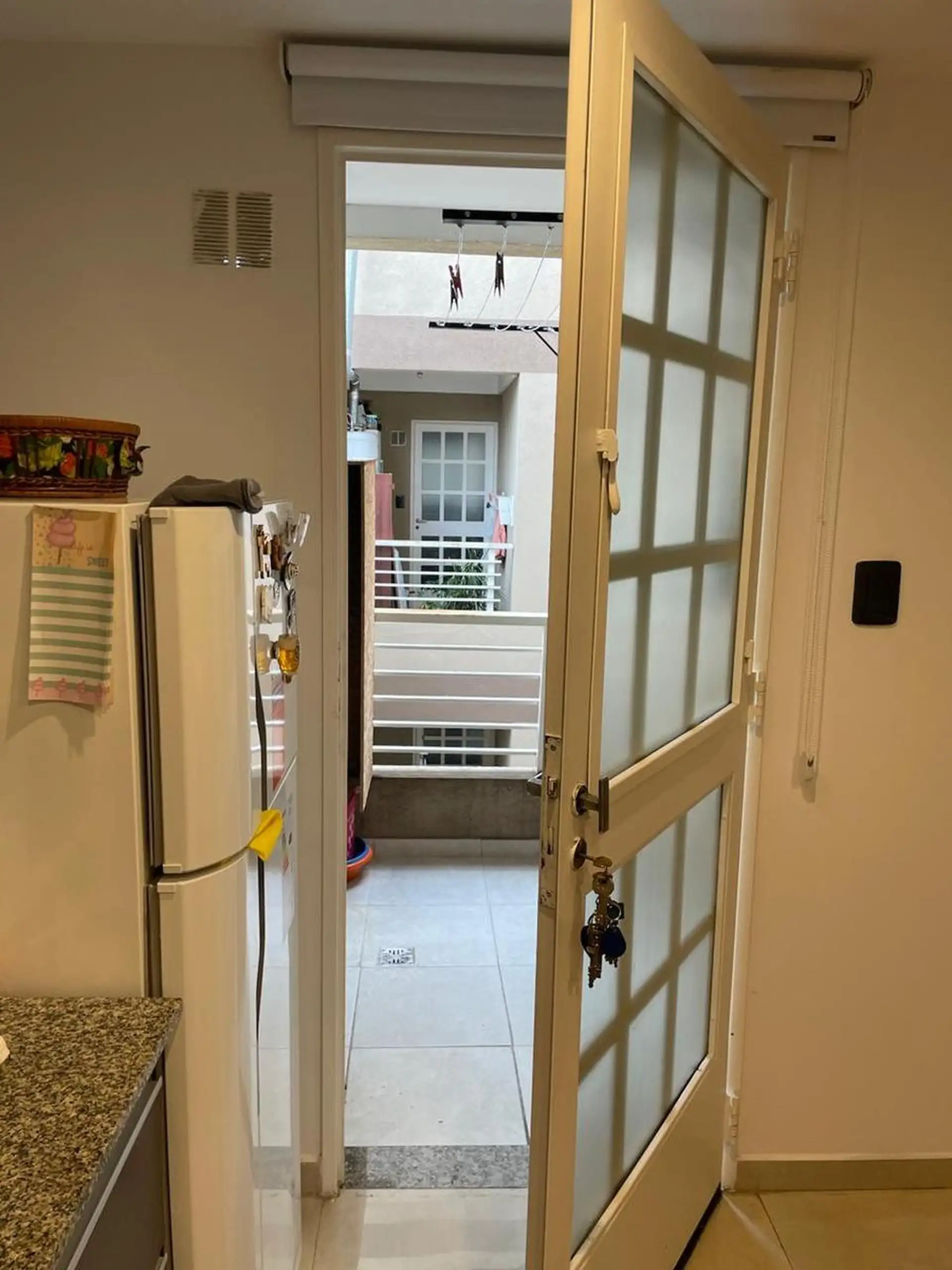 Apartamento de 2 ambientes em Mataderos, 2º andar de fundos, unidade B, com vista para o miolo de quadra. Entregue recém-pintado, com opção de locação sem mobília ou mobiliado. Cozinha com barra para café da manhã; área de serviço independente com ventilação; quarto com armário embutido; banheiro completo; balcão tipo balcão para os fundos.