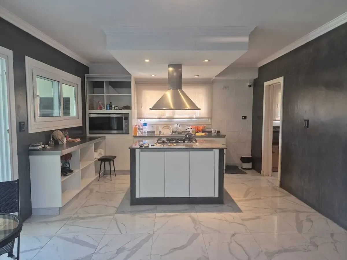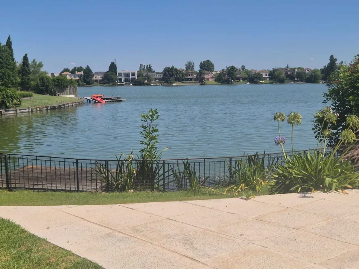Casa para aluguel em Santa Bárbara, Tigre. A casa tem living com pé-direito duplo integrado ao comedor, com lareira, lavabo de recepção, escritório e cozinha ampla com ilha e espaço para refeitório diário. Inclui ar-condicionado, fogão a gás, forno Ariston, área de serviço com termotanque para aquecimento de água, máquina de lavar e caldeira; as dependências completas são independentes da casa. No andar superior, há suíte principal com vista para a laguna e acesso a terraço, além de banheiro com