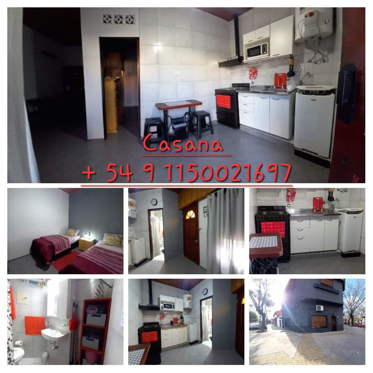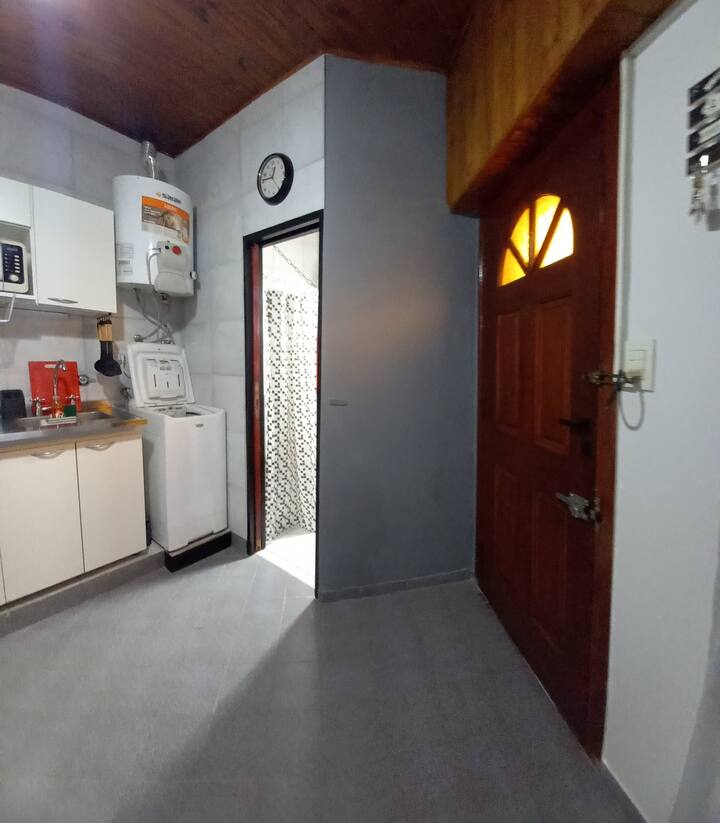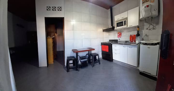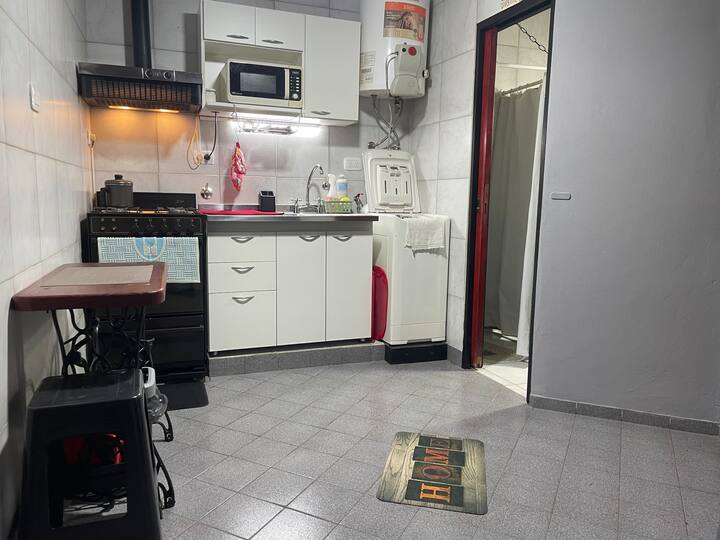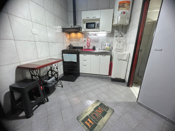 PH (unidade com entrada independente) em Mataderos com 1 dormitório. Unidade equipada e mobiliada com 2 camas de solteiro que podem ser unidas e transformadas em uma cama de casal, armário e cômoda, mesa de cabeceira e TV. Cozinha com micro-ondas, máquina de lavar, ferro, torradeira elétrica, ar-condicionado frio/calor, louça e utensílios, além de geladeira com freezer, cafeteira elétrica e chaleira. A limpeza é feita 1 vez por semana.