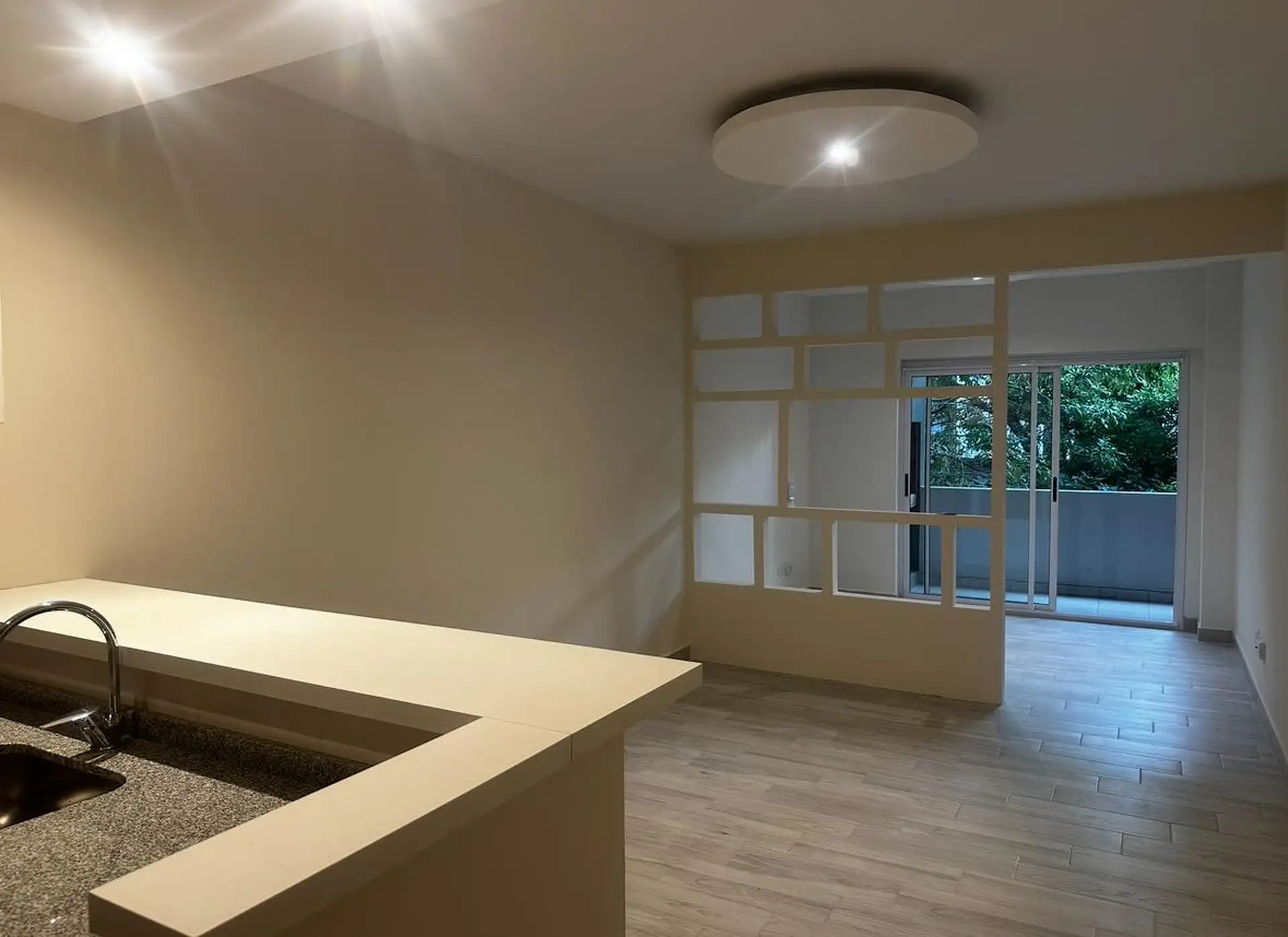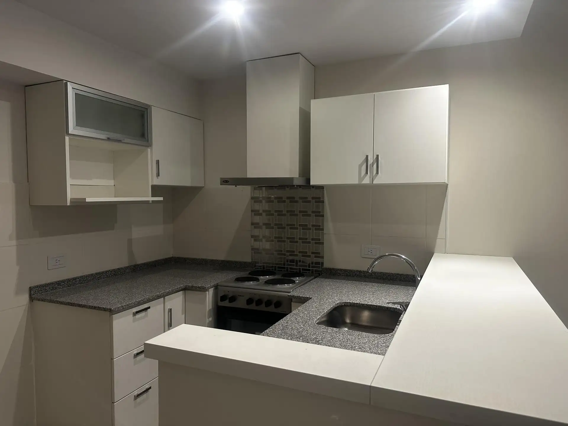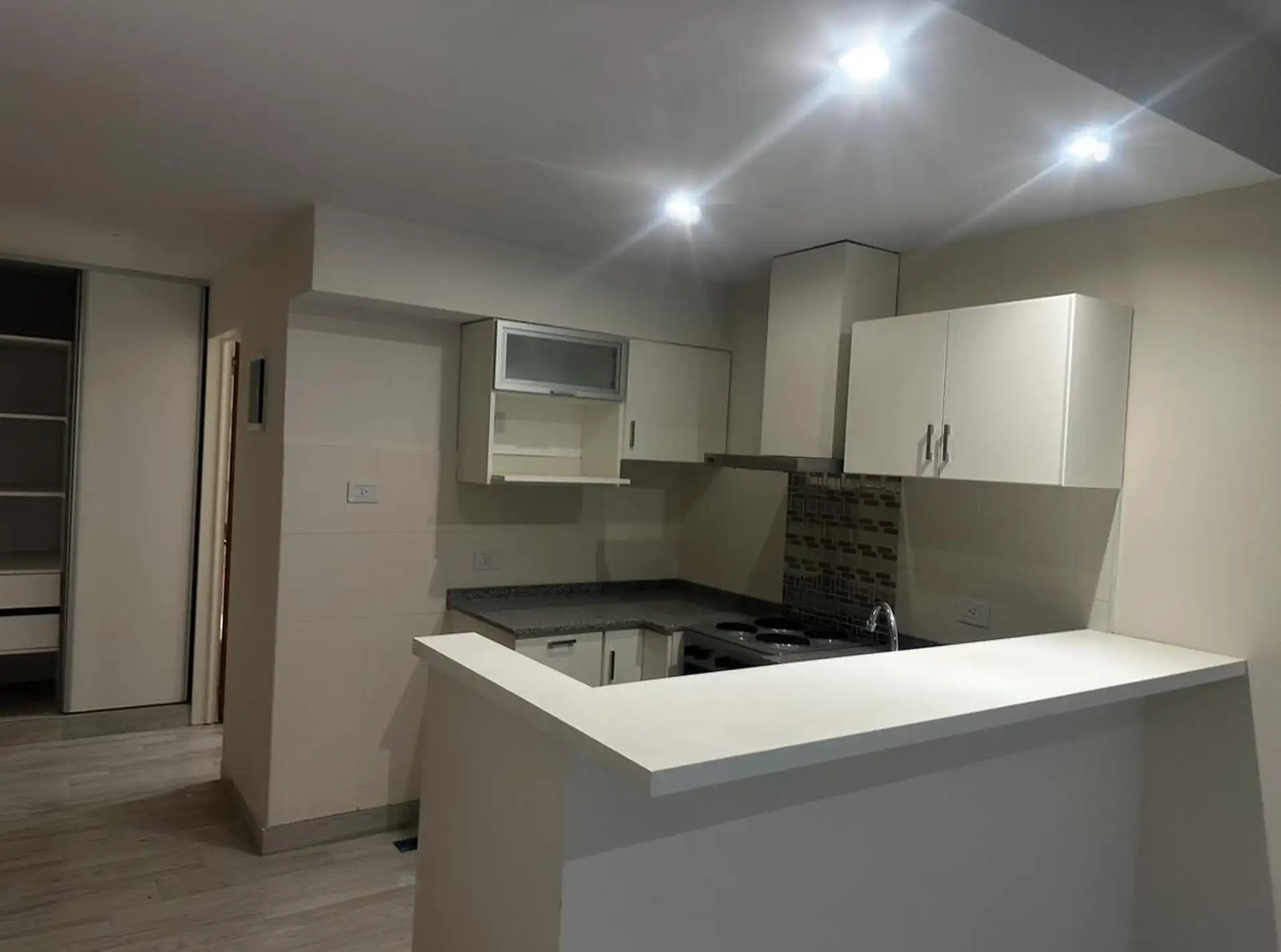 Kitnet novo em Monserrat, com cozinha integrada e área de café da manhã (desayunador), 1 banheiro completo e varanda com área de churrasqueira (parrilla). O prédio tem jacuzzi, solário, setor de churrasqueiras, academia e 2 salões de usos múltiplos. O aluguel publicado é USD 650, com opção de vaga de garagem por USD 80 à parte; a venda é USD 90.000, com opção de vaga de garagem por USD 10.000 à parte.