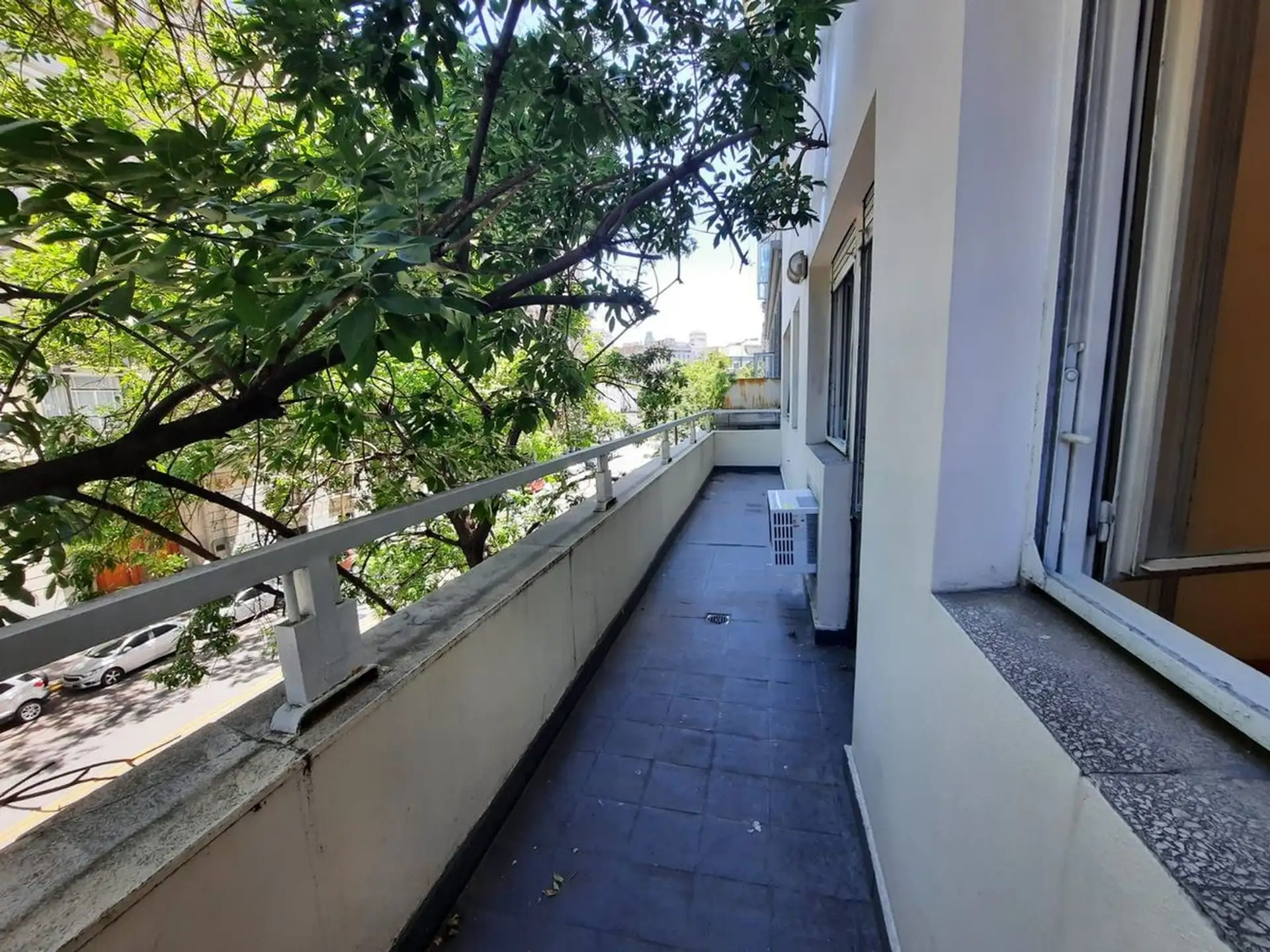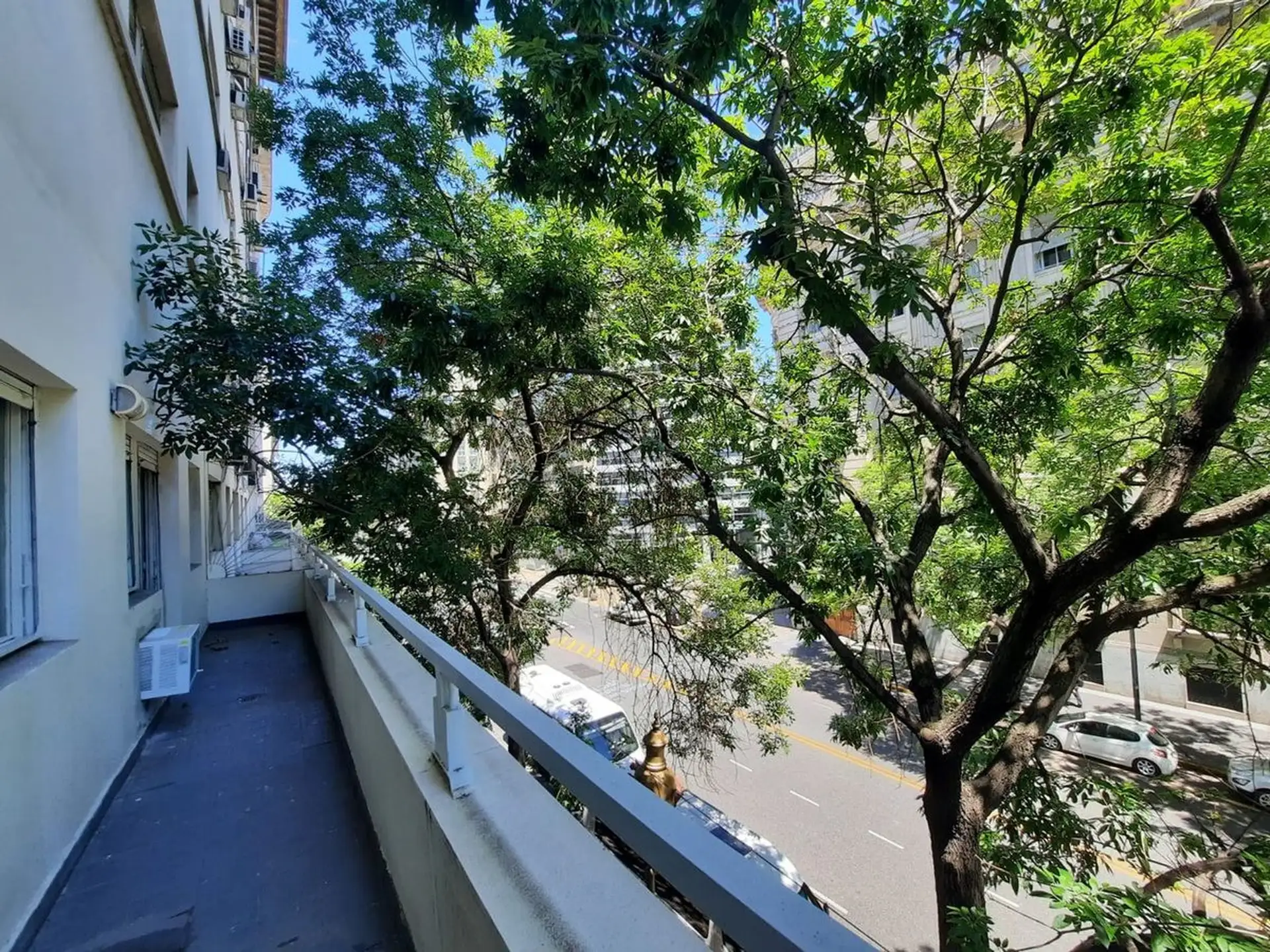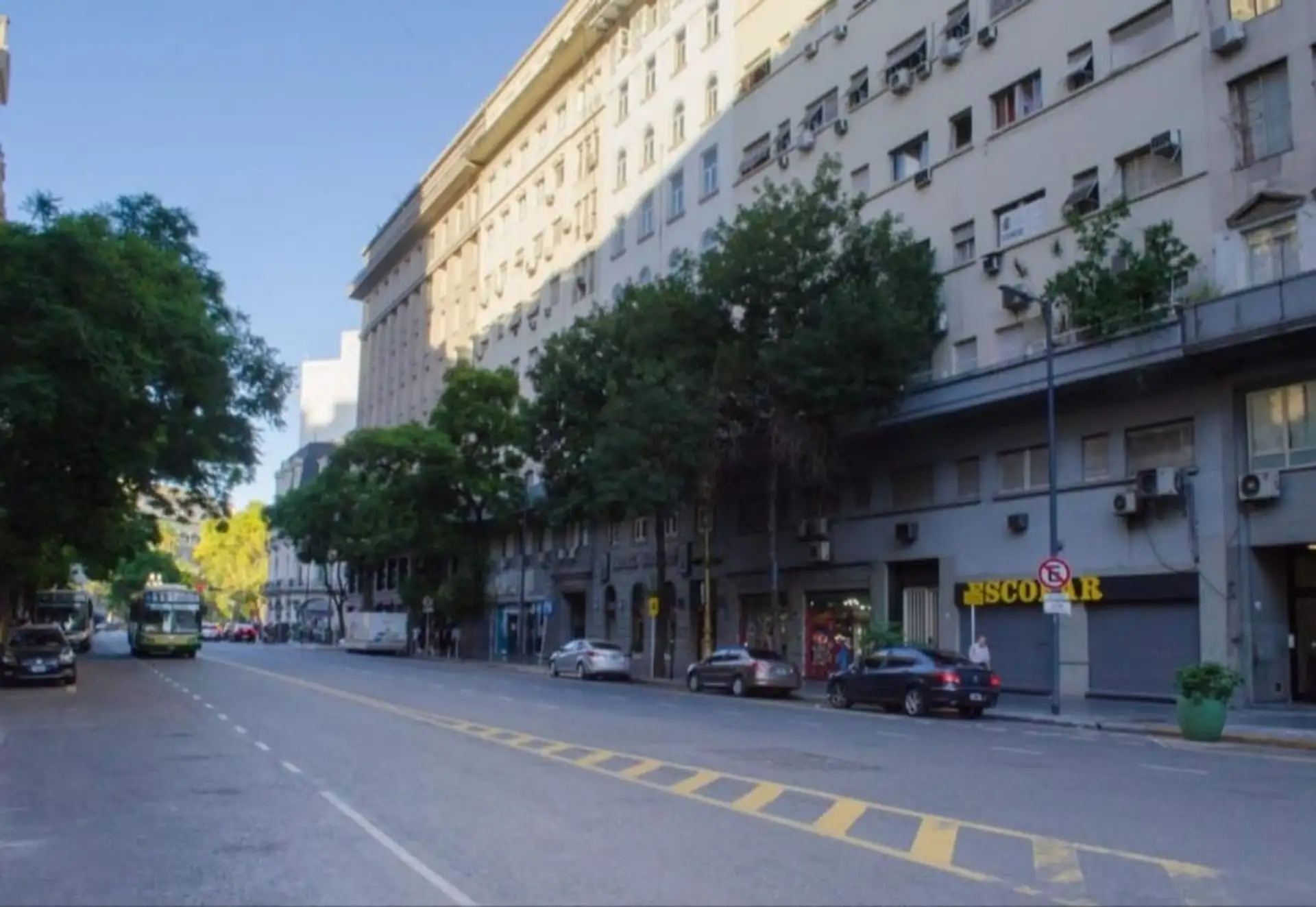 Apartamento de 2 ambientes com 41 m², no 2º andar de frente para a rua, em prédio com elevador. O imóvel fica na Av. Diagonal Sur, a cerca de metros do Cabildo, entre Peru e Bolívar, próximo à Plaza de Mayo. Conta com sala e sala de jantar com 3,5 m x 3 m, varanda de 9 m², dormitório de 3,4 m x 3 m com placard e ar-condicionado, cozinha de 2,4 m x 1,77 m com fogão/placa e armários aéreos e banheiro completo com box, de 2,28 m x 1,96 m.