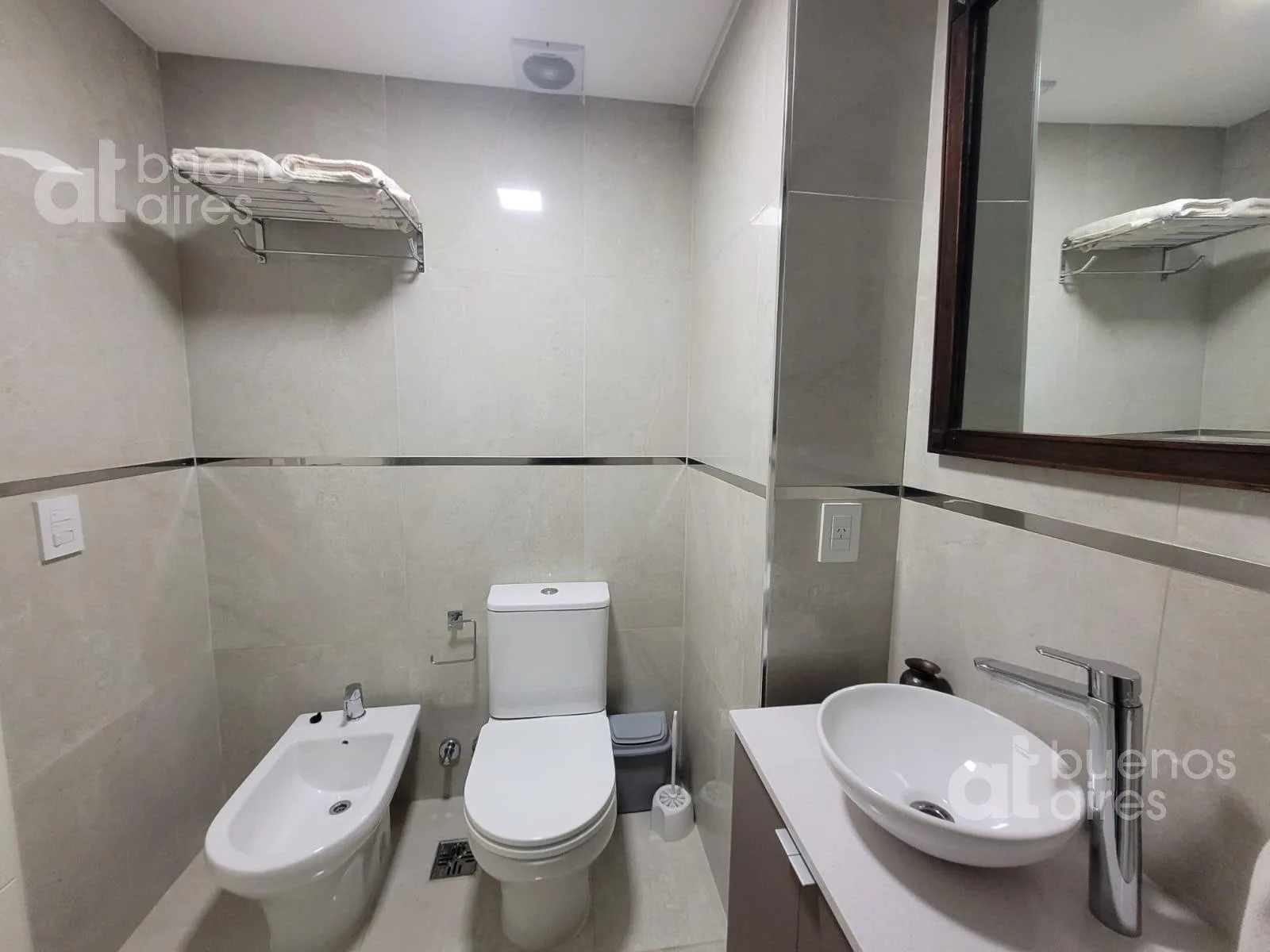 Kitnet em Monserrat, unidade em complexo “Paseo de la Cisterna”, com varanda de fundos. Cozinha integrada com fogão por anéis (anafes) e pequeno forno elétrico; geladeira com freezer. Cama rebatível, ar-condicionado frio-quente e banheiro completo. Capacidade máxima de 2 pessoas. O edifício tem piscina, solarium, lavanderia, espaço de coworking e segurança 24 h. Linha E do Subte, estação Bolivar, e linha A, estação Plaza de Mayo. Disponível a partir de 20/03/2026. O valor publicado é com tudo in