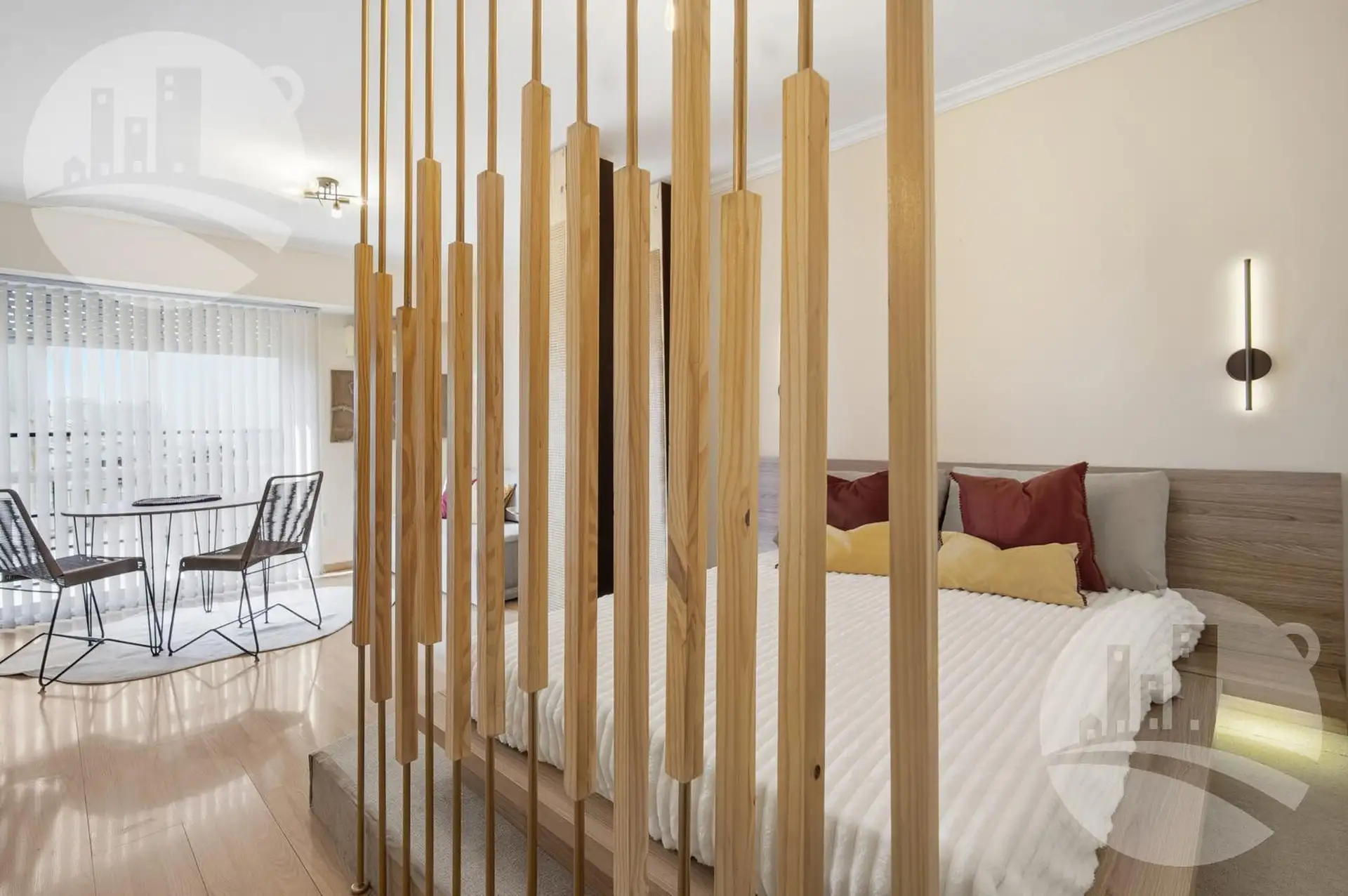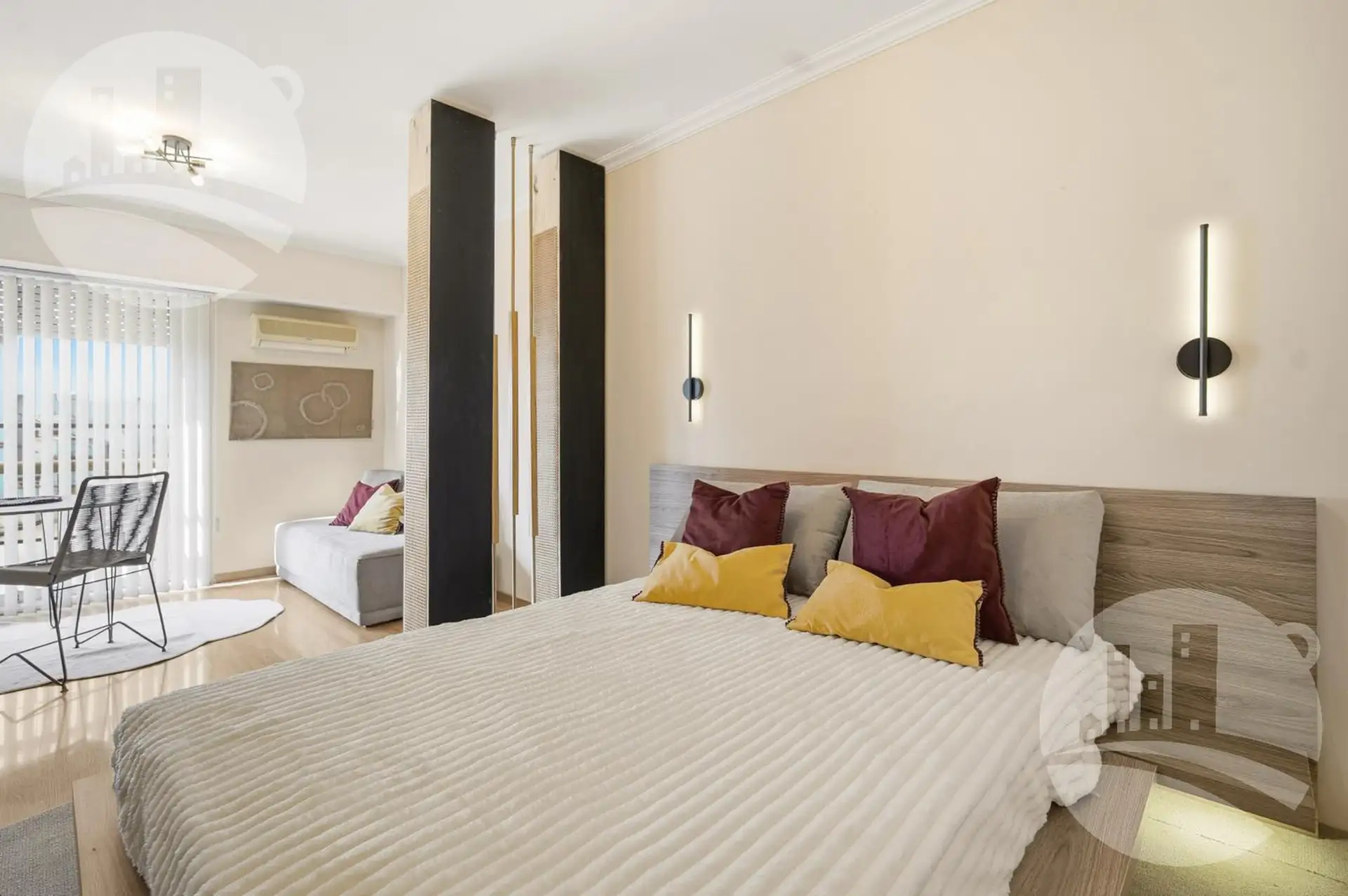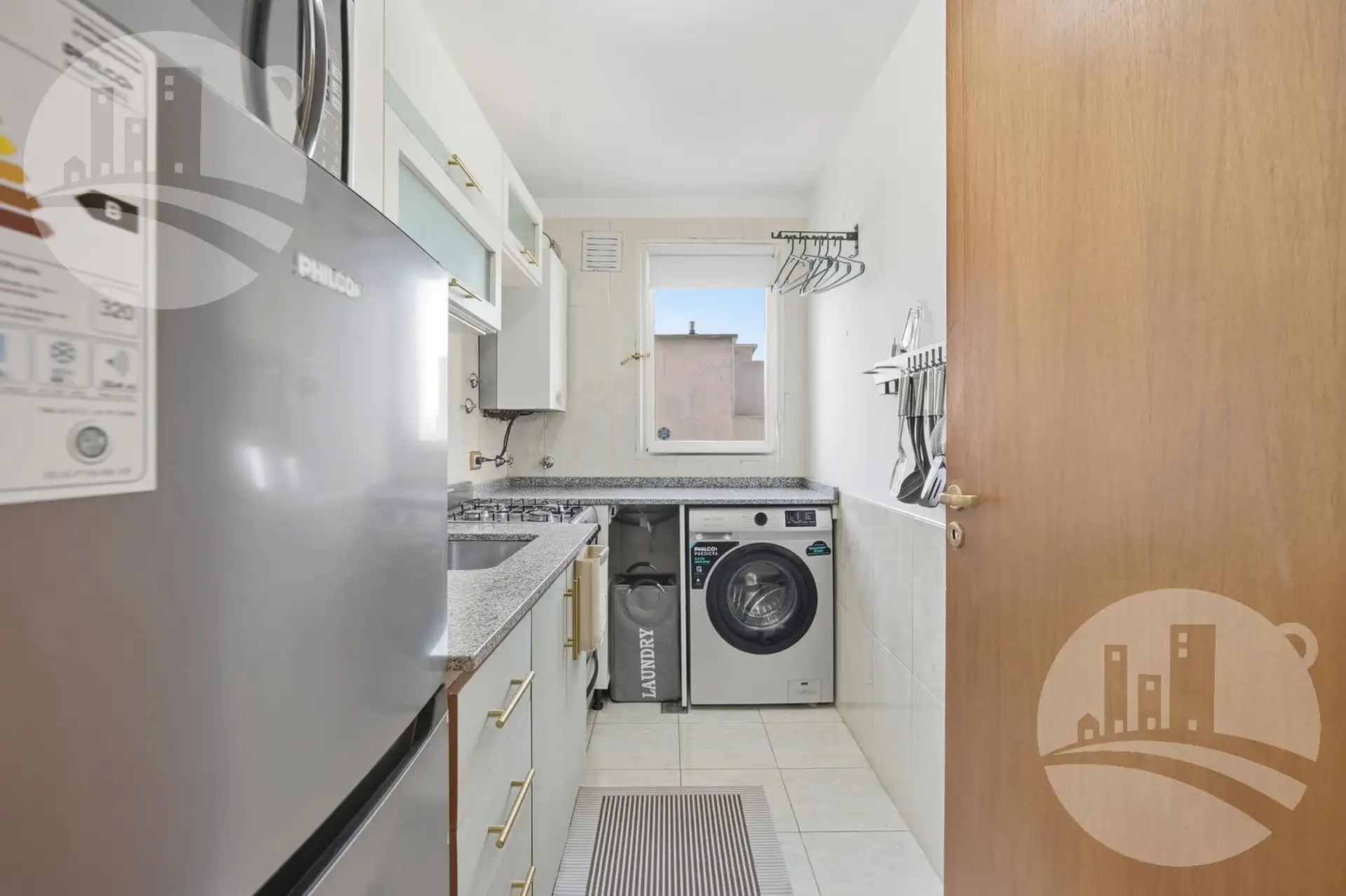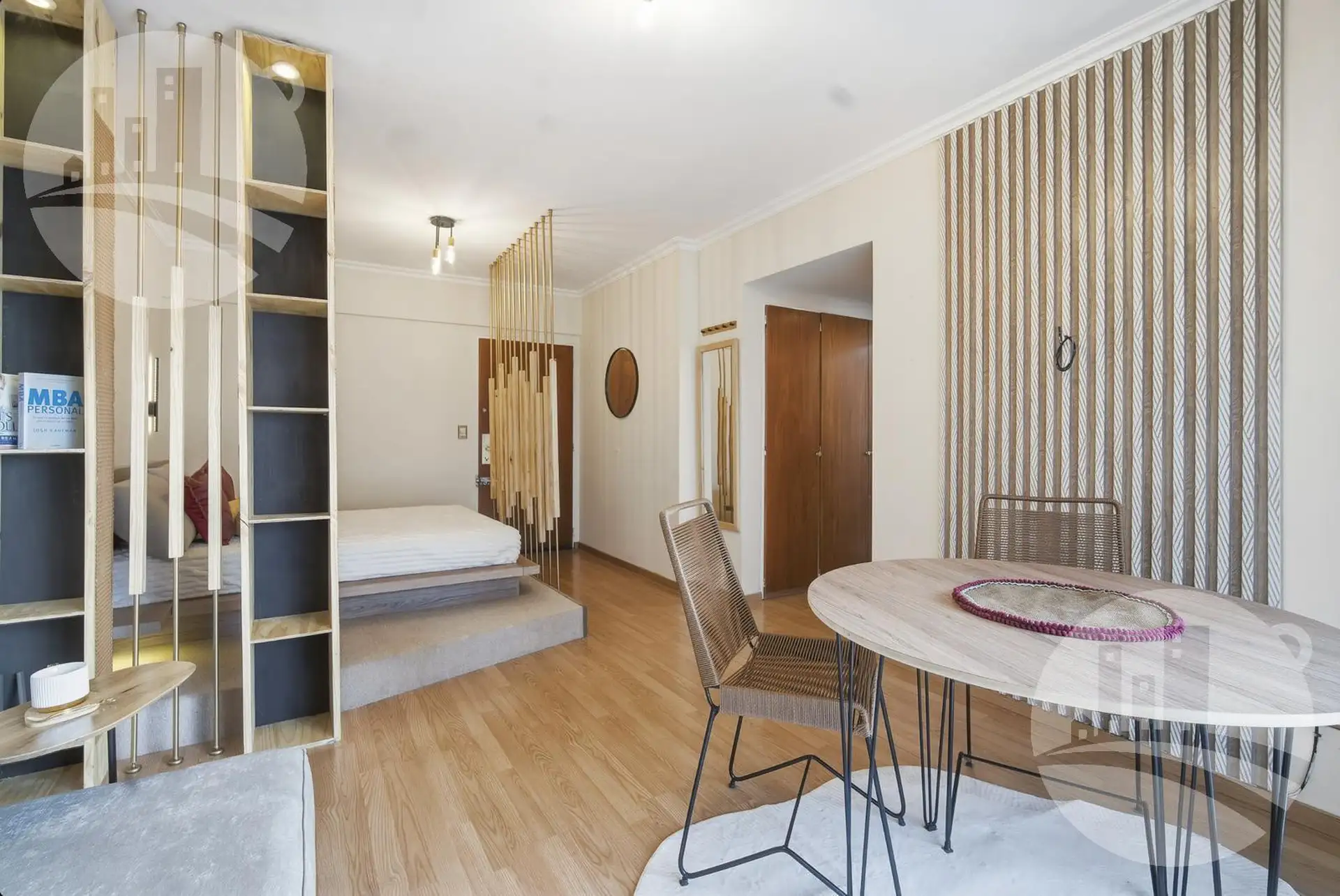 Apartamento de 2 ambientes (1 dormitório) com mobiliário e decoração, no 2º andar alto de uma torre em Monserrat. Possui cozinha independente com desayunador/comedor diário, gás natural e caldeira dual para água quente e aquecimento por piso radiante individual, além de amplo armário e banheiro completo com banheira. Inclui ar-condicionado frio/calor. O condomínio tem baixas expensas que incluem Wi-Fi e água; contrato por 12, 24 ou 36 meses. O preço é acrescido de serviços (energia elétrica, gás