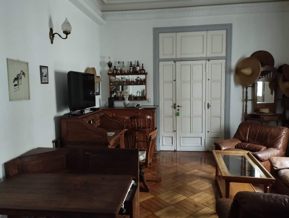 Apartamento em Monserrat com 1 quarto, cozinha, 1 banheiro completo e WiFi. O prédio tem segurança 24 horas, lavanderia e elevadores. Há janelas voltadas para o miolo de quadra e vista do Congresso Nacional por uma área de circulação interna; inclui TV de 42 polegadas com conexões HDMI ou USB e ferro. A locação é válida apenas para 7, 8 e 9 de outubro a US$ 33.000 por diária.