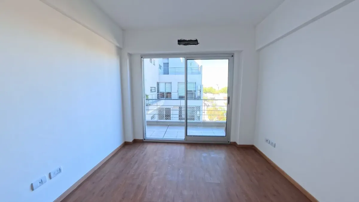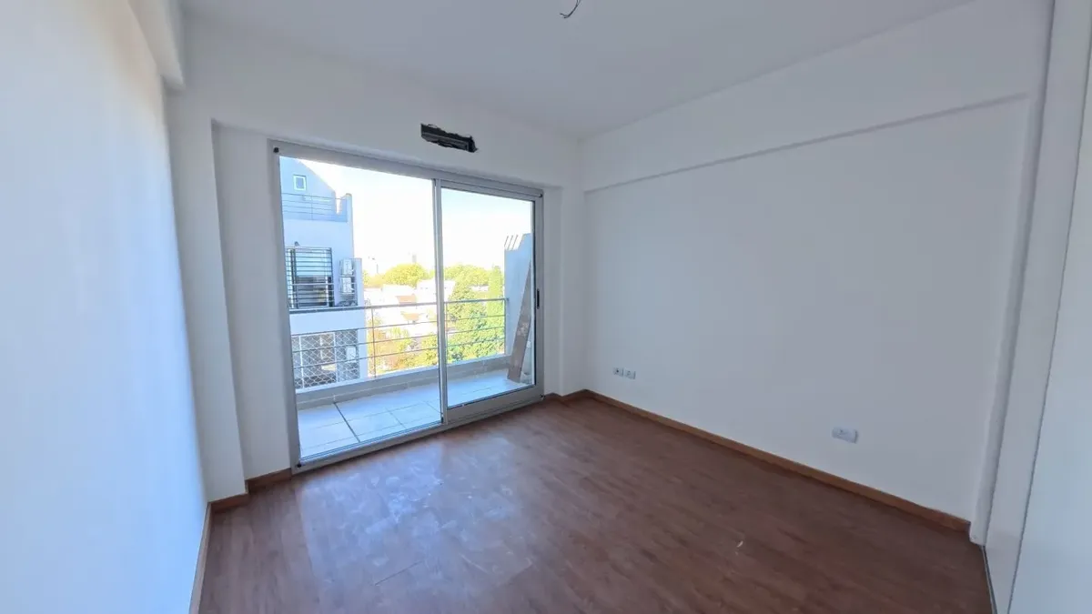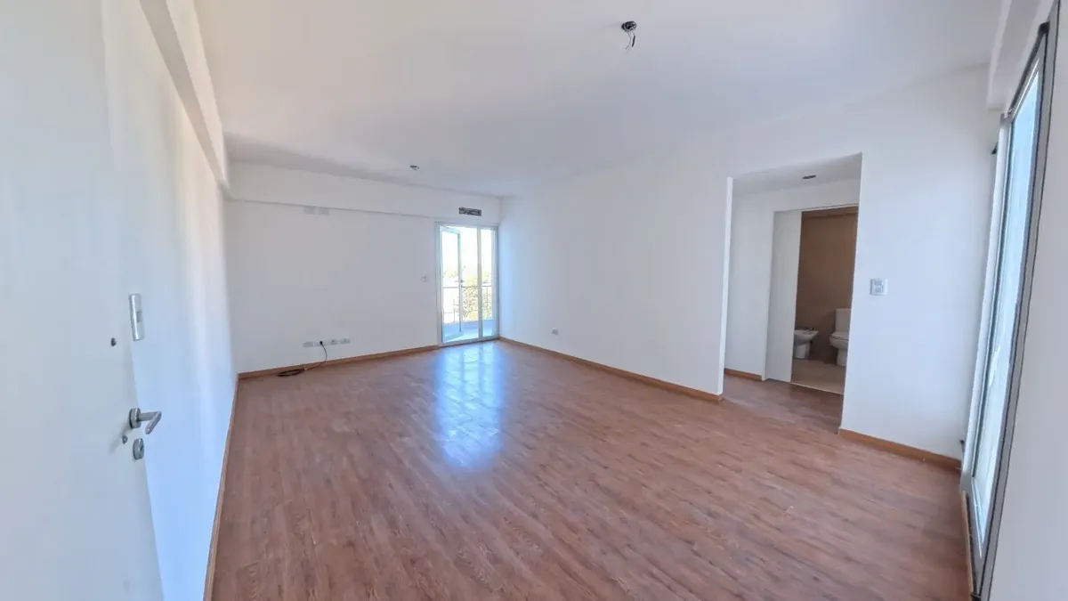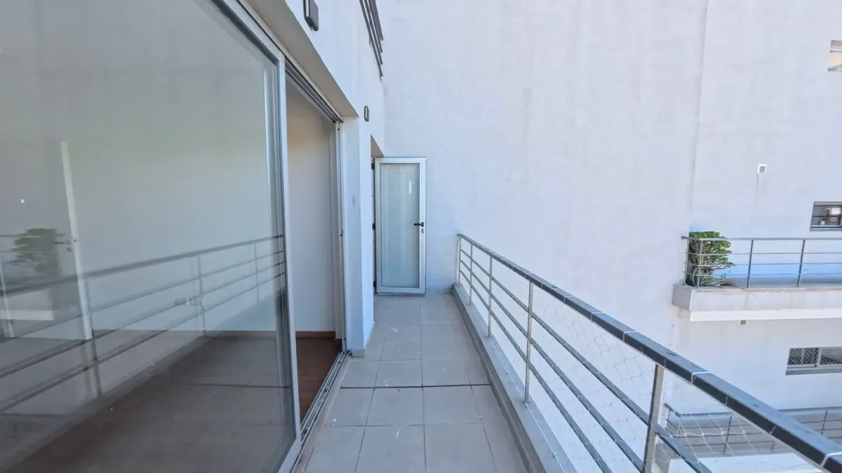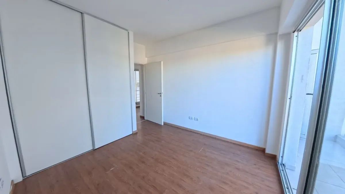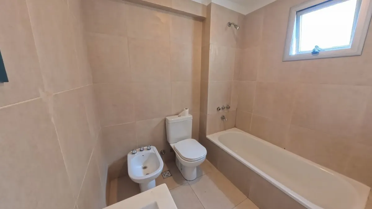 Apartamento de dois ambientes com 56,9 m², 6º andar, com vista de fundos e varanda contínua. Cozinha independente a gás, banheiro completo com janela, 1 quarto com placard e living-comedor com circulação dupla. Há baulera no 7º andar e acesso por hall semiprivado; o prédio tem dois setores, com 1 elevador por setor. Condomínio de $150.000, incluindo AYSA e água quente central. Exige contrato de 1 ou 2 anos, reajuste trimestral por IPC, mês de adiantamento, depósito de USD 700, comprovação de ren