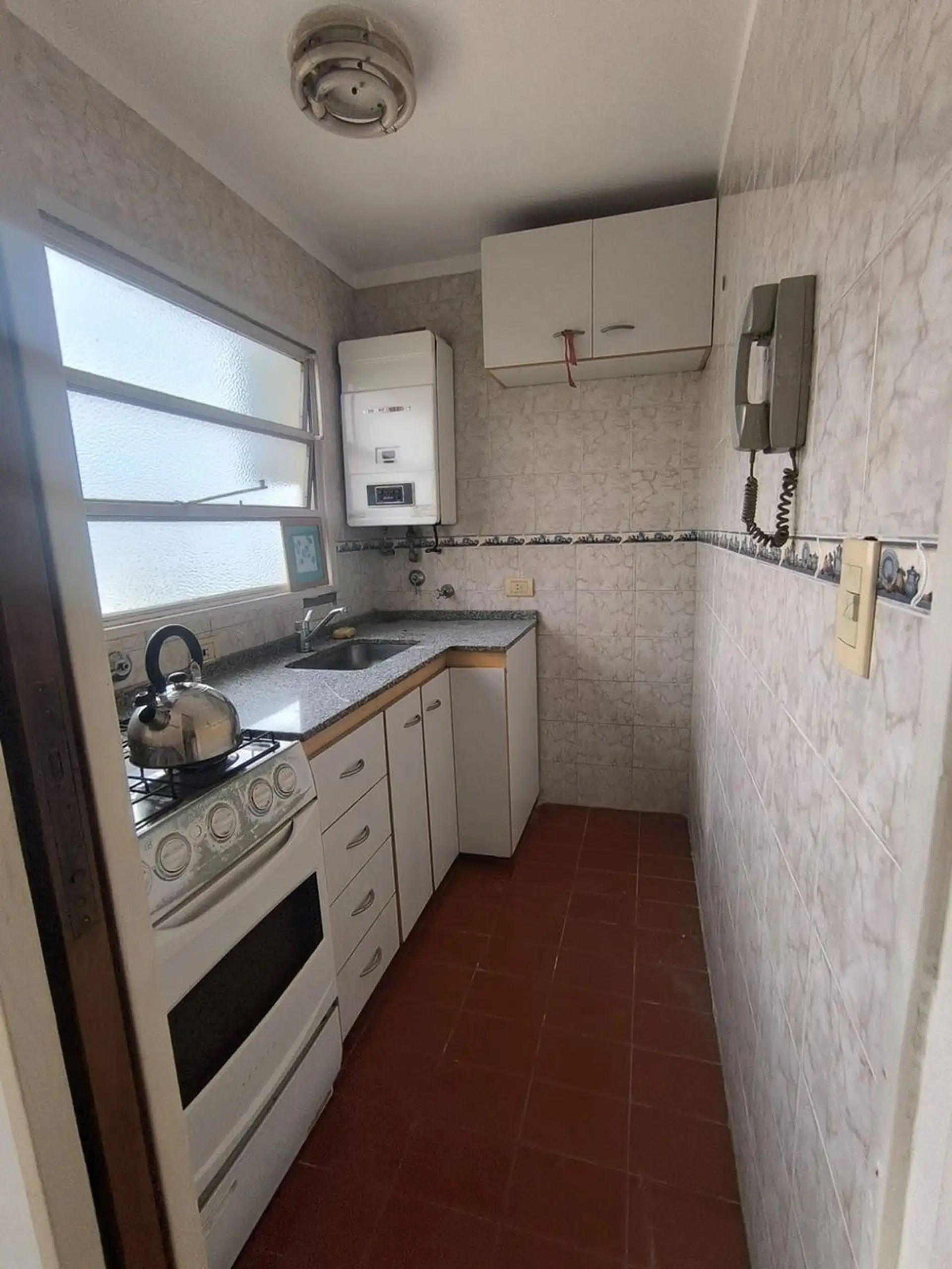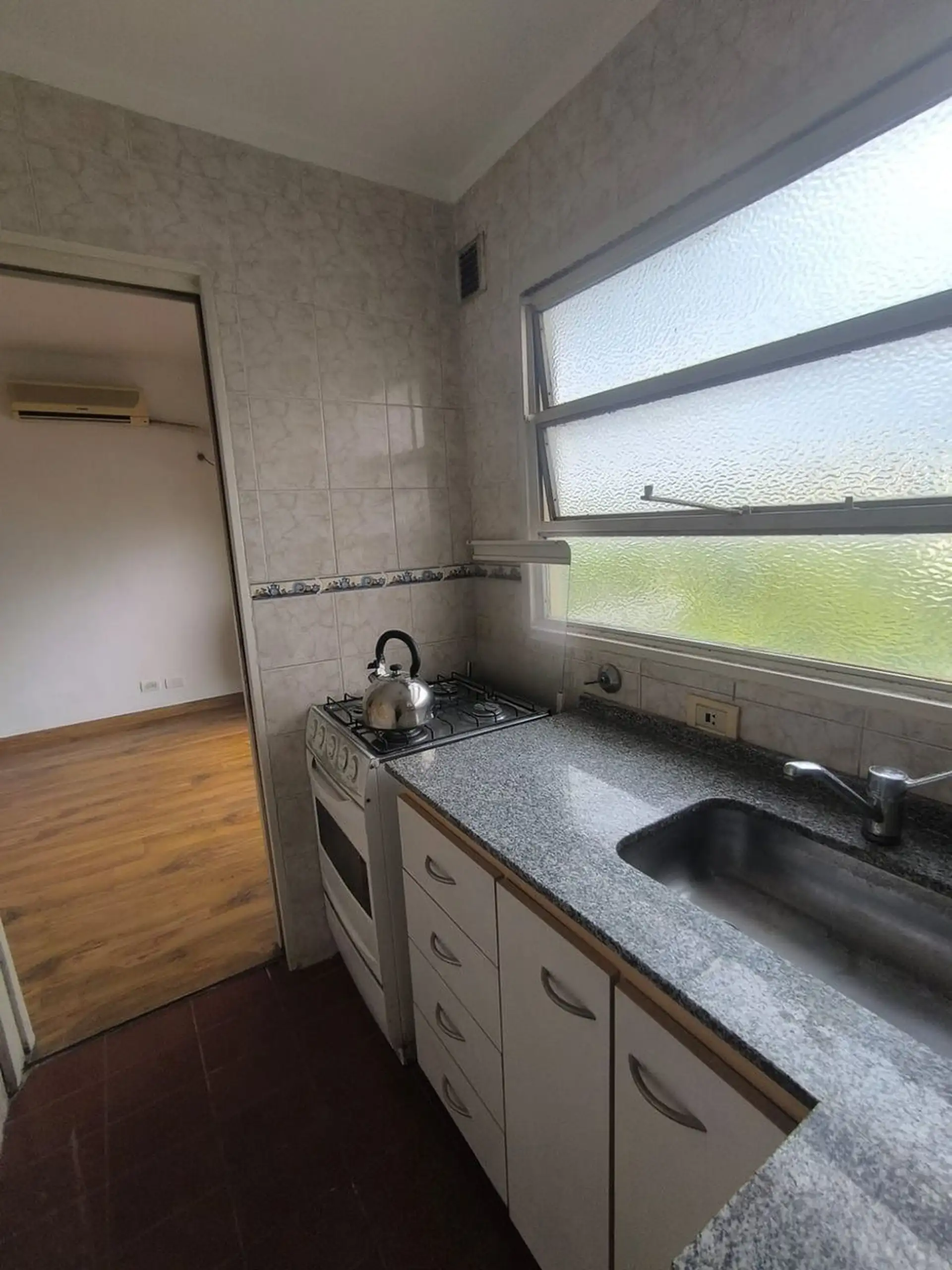 Kitnet para aluguel com 7º andar de fundos (contrafrente), com vista aberta, em Villa del Parque na divisa com Montecastro e Villa Santa Rita. Cozinha e banheiro completo separados, água quente por calefón e aquecimento por tiro balanceado, além de ar-condicionado. Inquilino responsável por ABL e serviços. Requisitos: adiantamento e depósito de 1 mês, comprovação de renda, garantia própria ou seguro de fiança e seguro contra incêndios.
