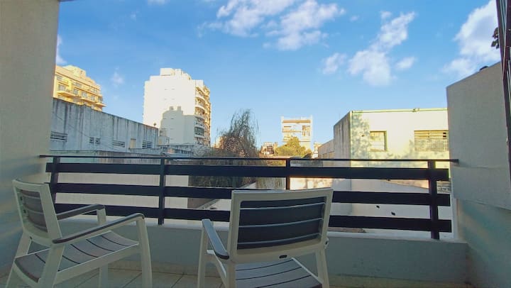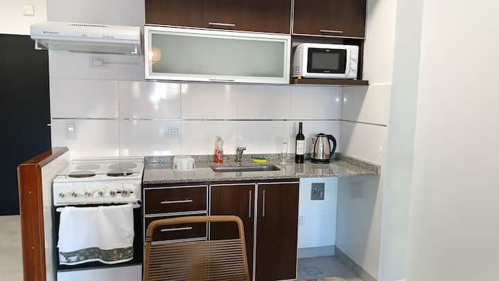 Apartamento novo em Monte Castro, mobiliado, com 1 dormitório e elevador. Inclui roupas de cama, toalhas e toalhas de banho, micro-ondas, chaleira elétrica e TV de 42", além de cadeiras para ambientes internos e externos. Localiza-se em área residencial, a alguns blocos do Shopping Monte Castro, a 1 quadra da Av. Jonte e a 8 quadras da Av. Juan B Justo.