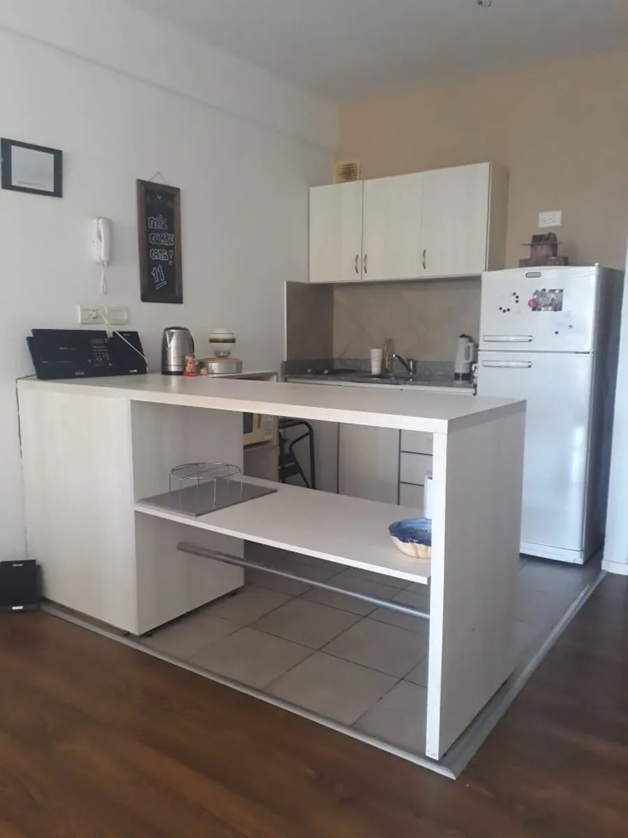 Kitnet no 2º andar, com varanda voltada para a rua, em prédio com elevador elétrico e piscina. Ao entrar, há um corredor com armário embutido e banheiro completo com banheira. A cozinha é integrada ao living/quarto com acesso à varanda frontal. Medidas aproximadas: cozinha 2,44 x 1,80 m (com espaço para geladeira e lavadora), banheiro 1,55 x 2,30 m, living/quarto 5,84 x 3,024 m e varanda 2,45 x 1,30 m; área total 35 m² aprox. mais varanda 3 m² aprox. Requisitos para locação: 1 mês de adiantament