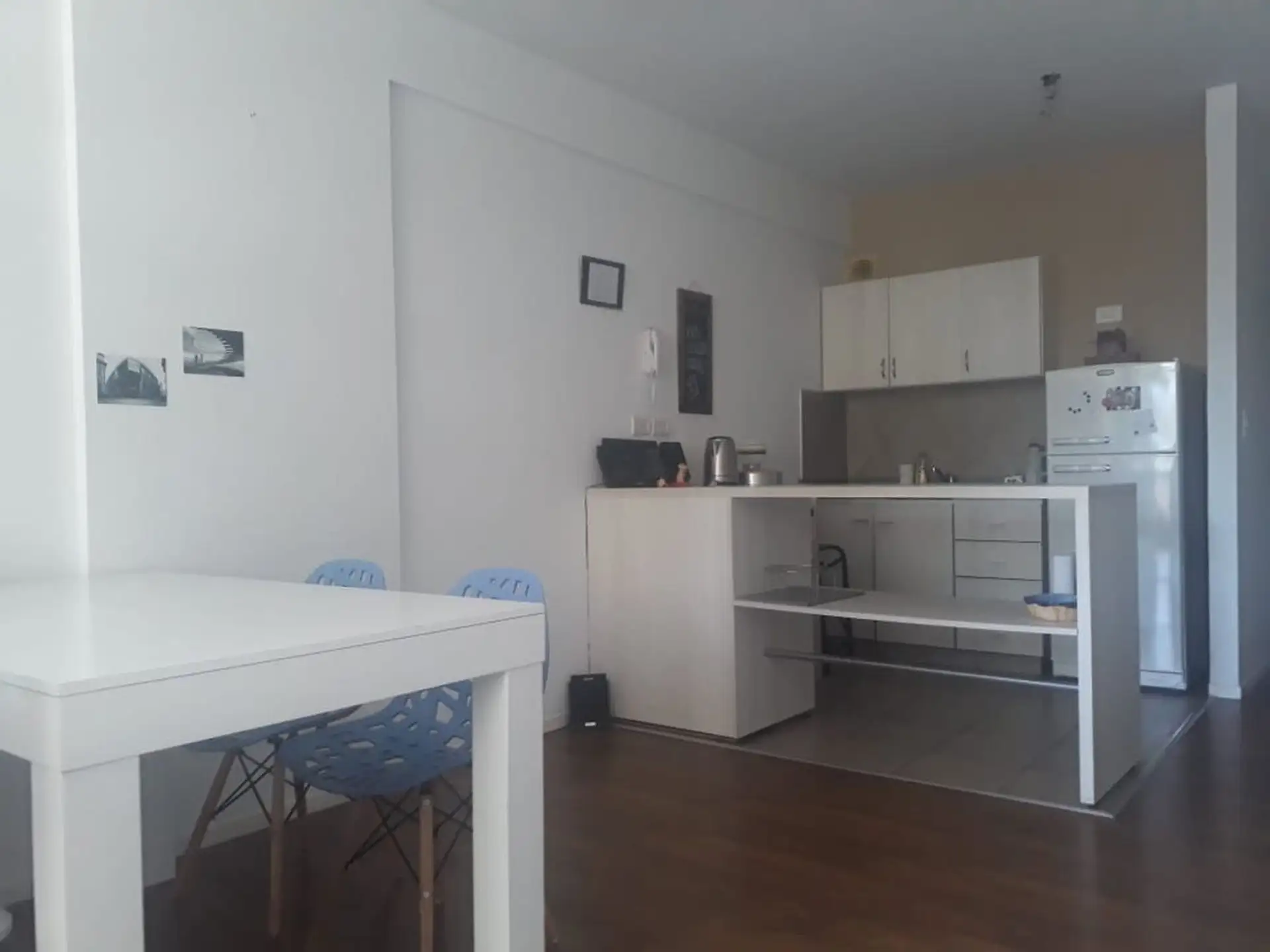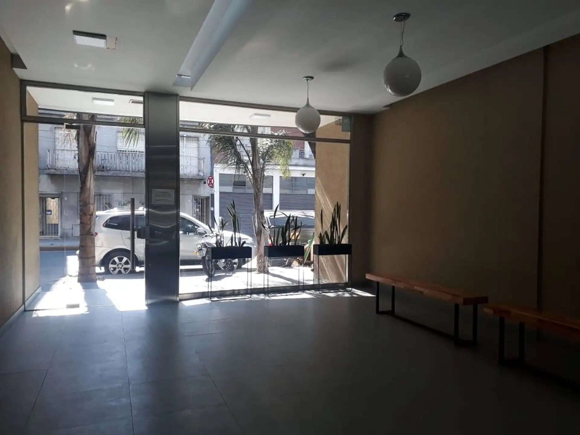 Apartamento de um único ambiente com 35 m² (aprox.) mais varanda de 3 m² (aprox.), no 2º andar e de frente para a rua. Cozinha integrada, living/dormitório com acesso à varanda e banheiro completo com banheira. O prédio tem piscina e o condomínio inclui AYSA. A cozinha mede 2,44 x 1,80 m, o banheiro 1,55 x 2,30 m e a área de living/dormitório 5,84 x 3,024 m; a varanda mede 2,45 x 1,30 m. Exige 1 mês de adiantamento e 1 mês de depósito, comprovantes de renda (últimos 3 meses) e garantia por propr
