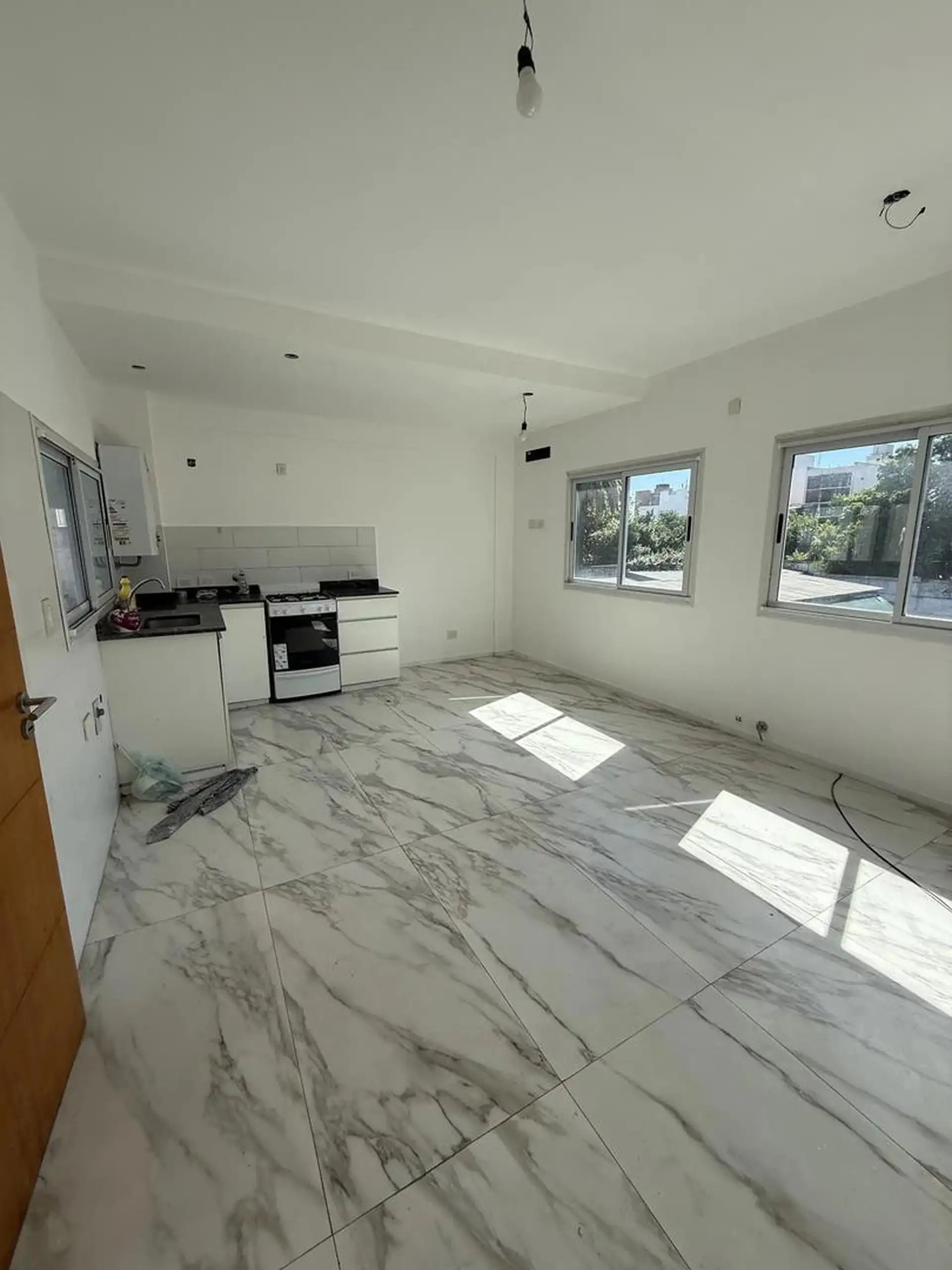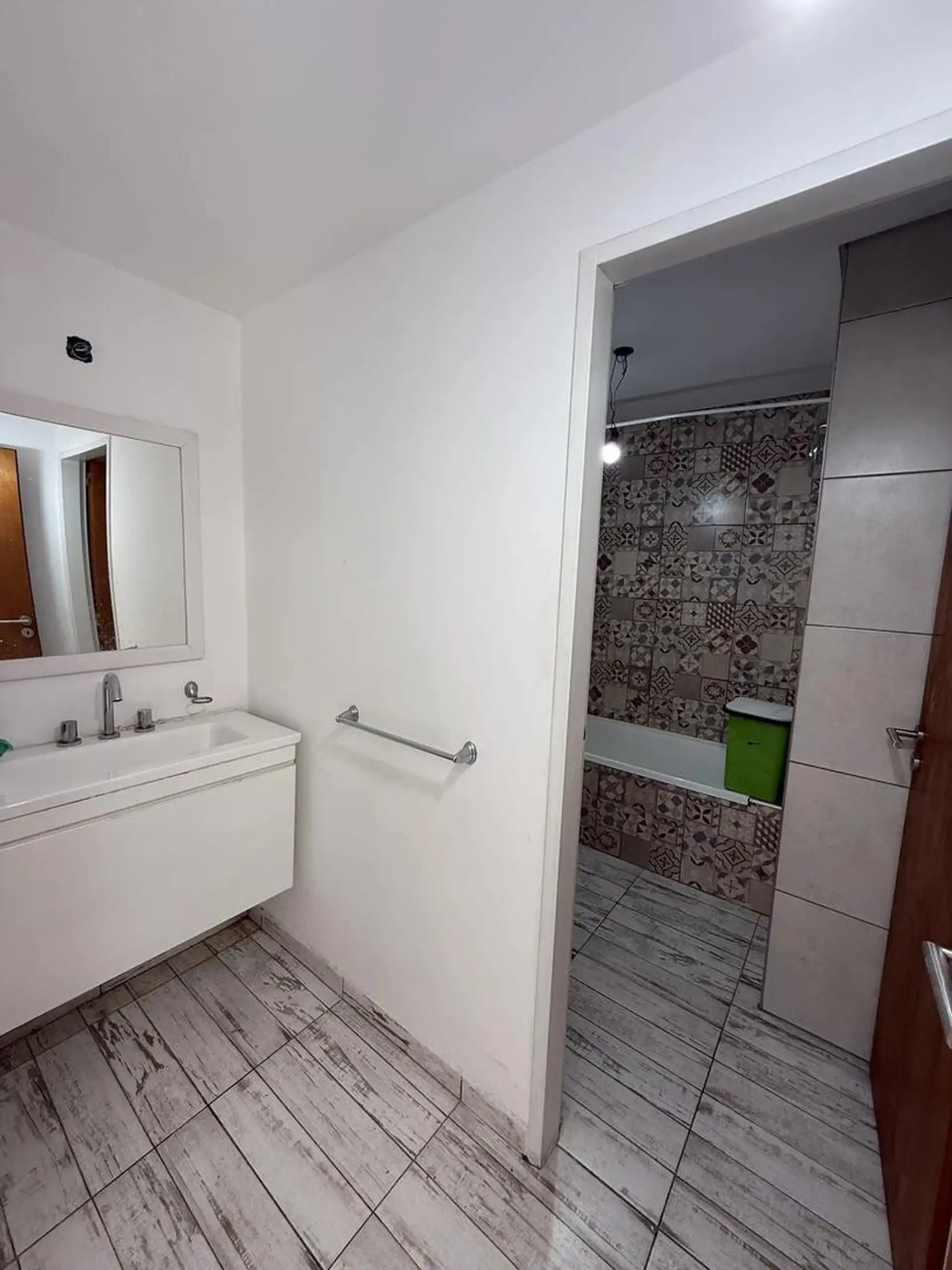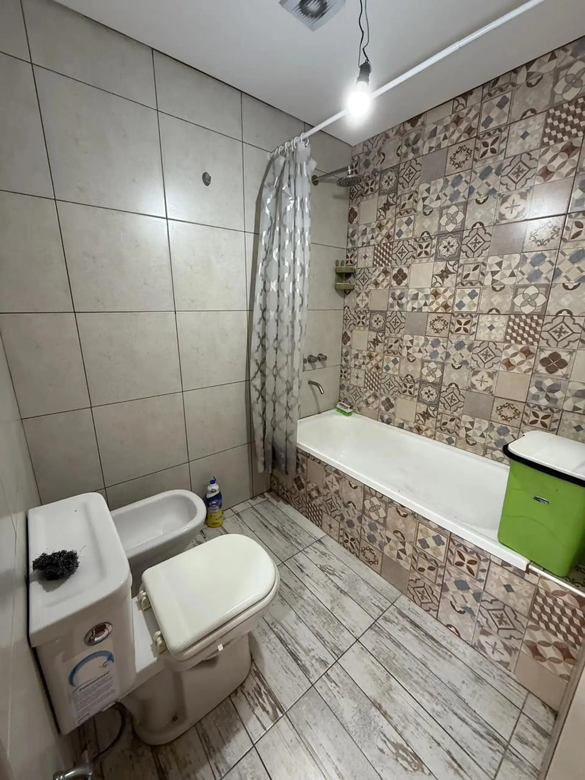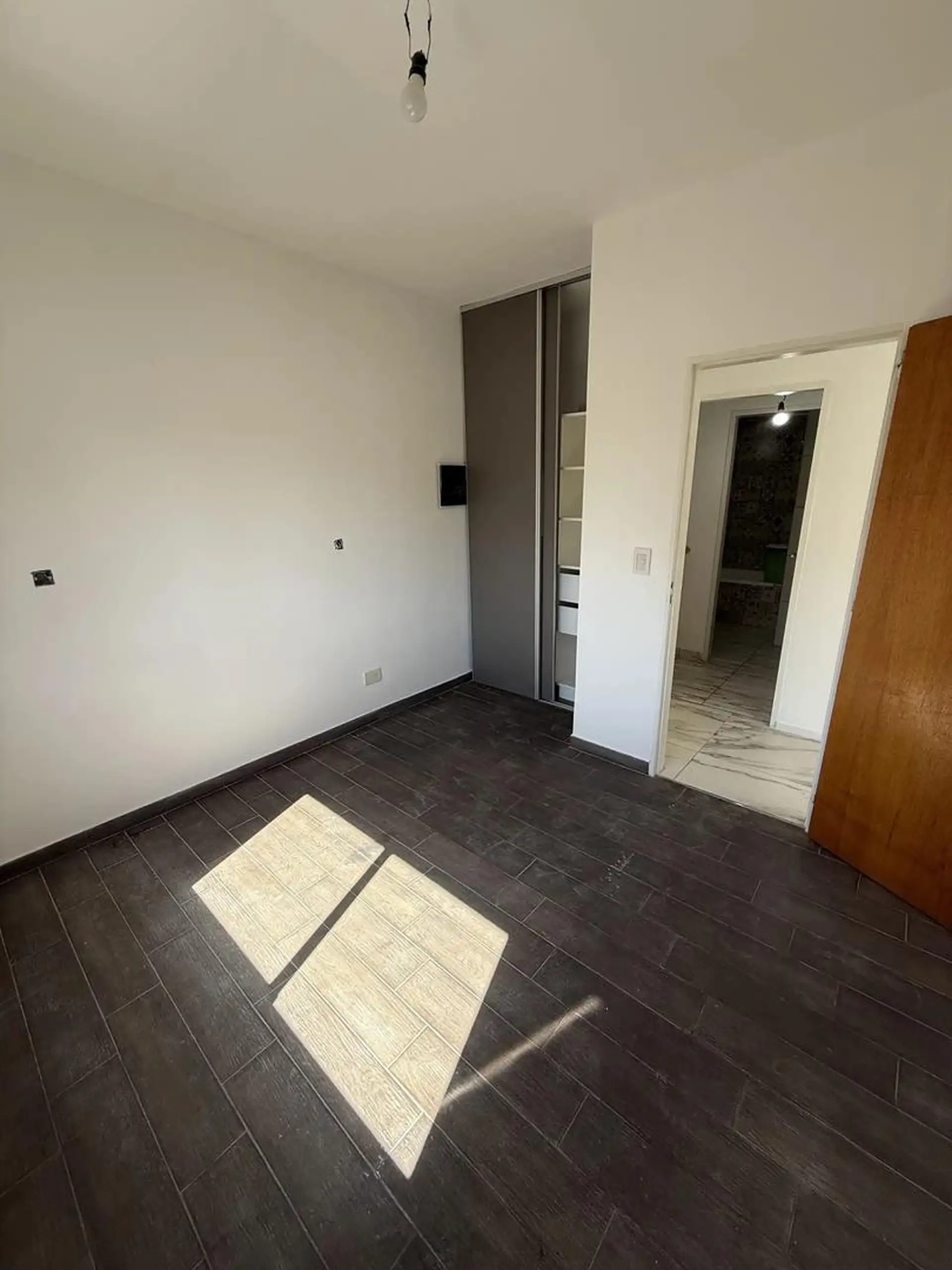 Apartamento de 2 ambientes no 2º andar, de fundos (contrafrente), em Morón. Sala de estar e jantar, cozinha com bancada e armários inferiores, quarto com armário. Banheiro e antebanheiro. Condomínio: 110000. Não aceita animais de estimação. Fica a poucos metros da Plaza de Morón e a algumas quadras da estação do Ferrocarril Sarmiento.