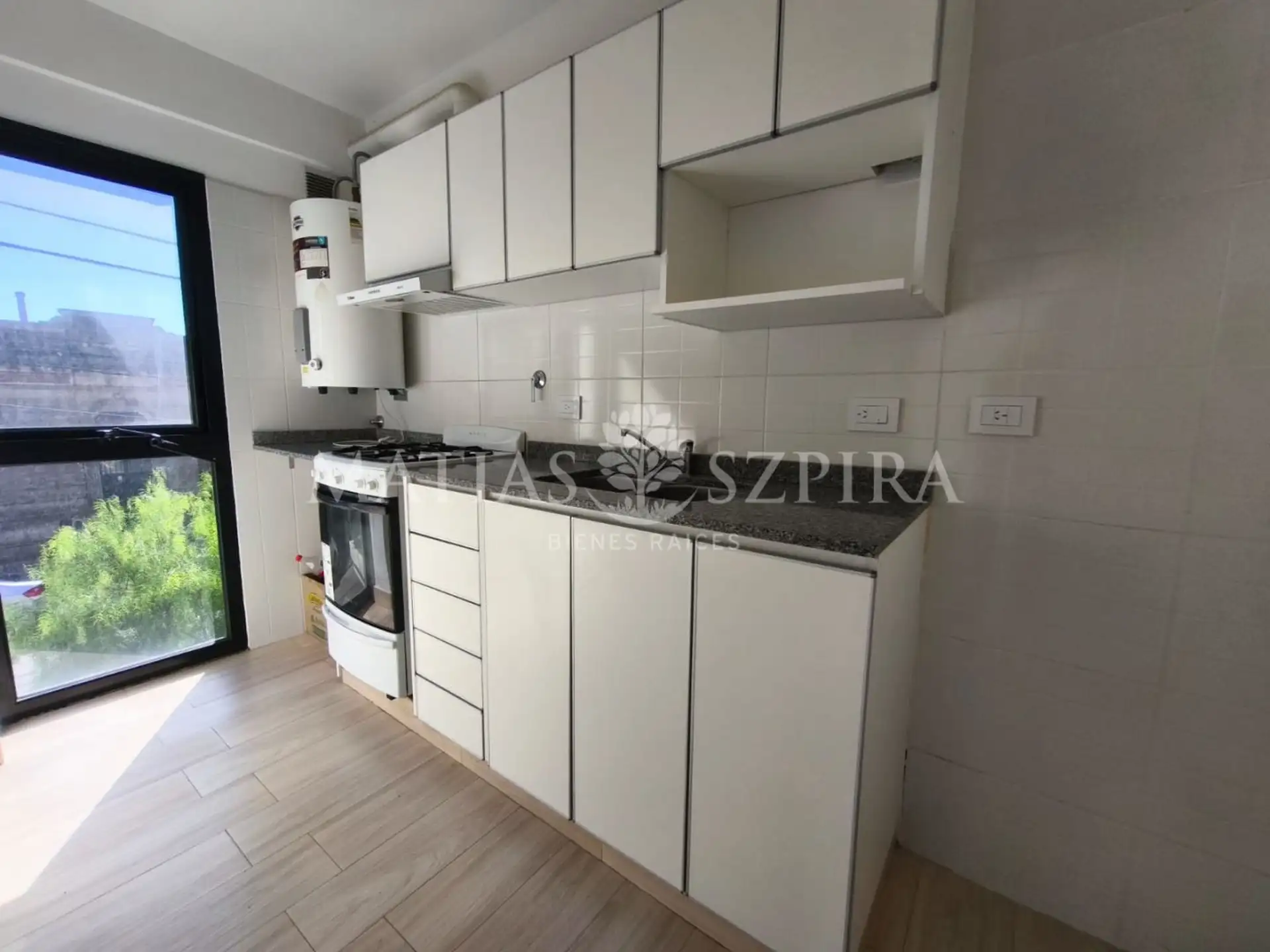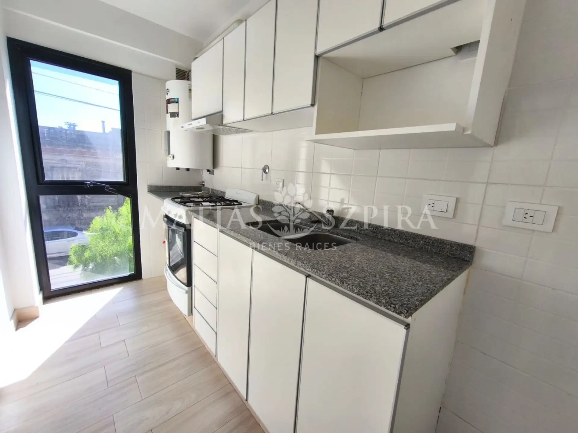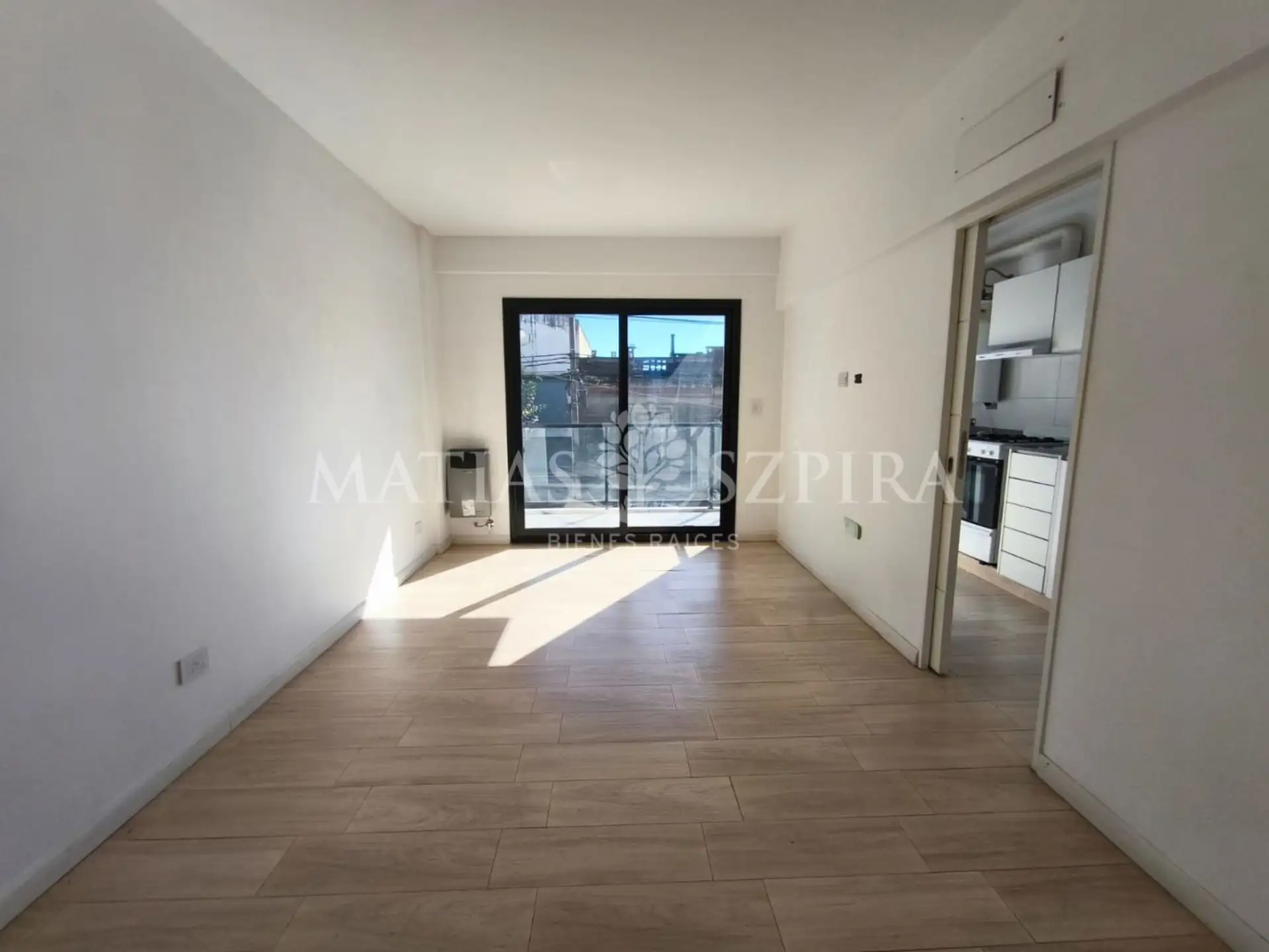 Apartamento de 2 ambientes em Morón Norte, no primeiro andar de frente para a rua. Possui sala de estar e jantar com saída para a varanda, cozinha independente com espaço para máquina de lavar roupas, banheiro completo e quarto com armário embutido.
