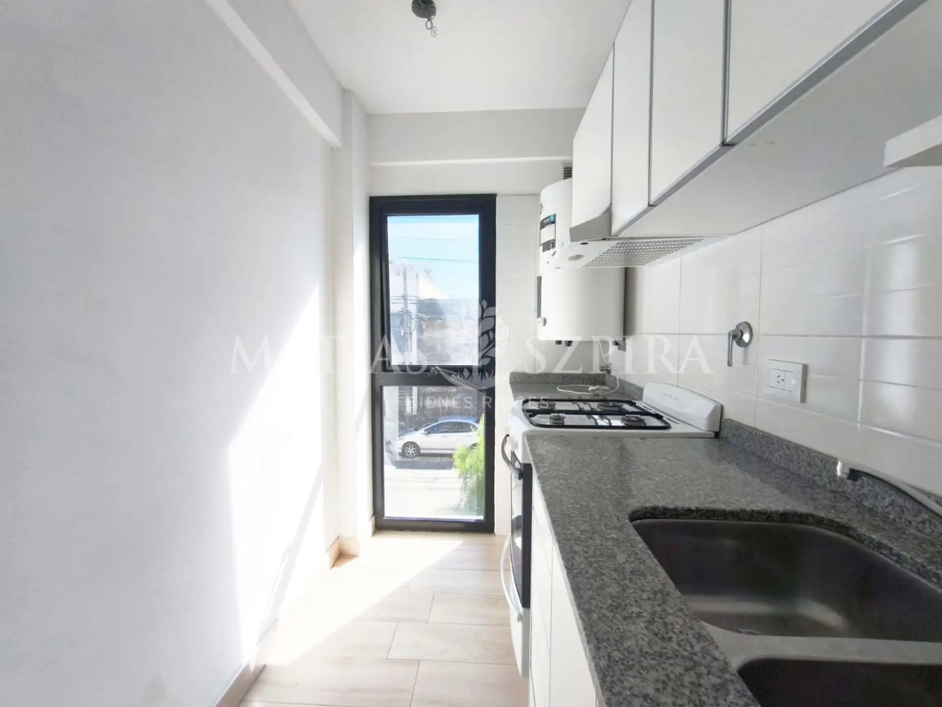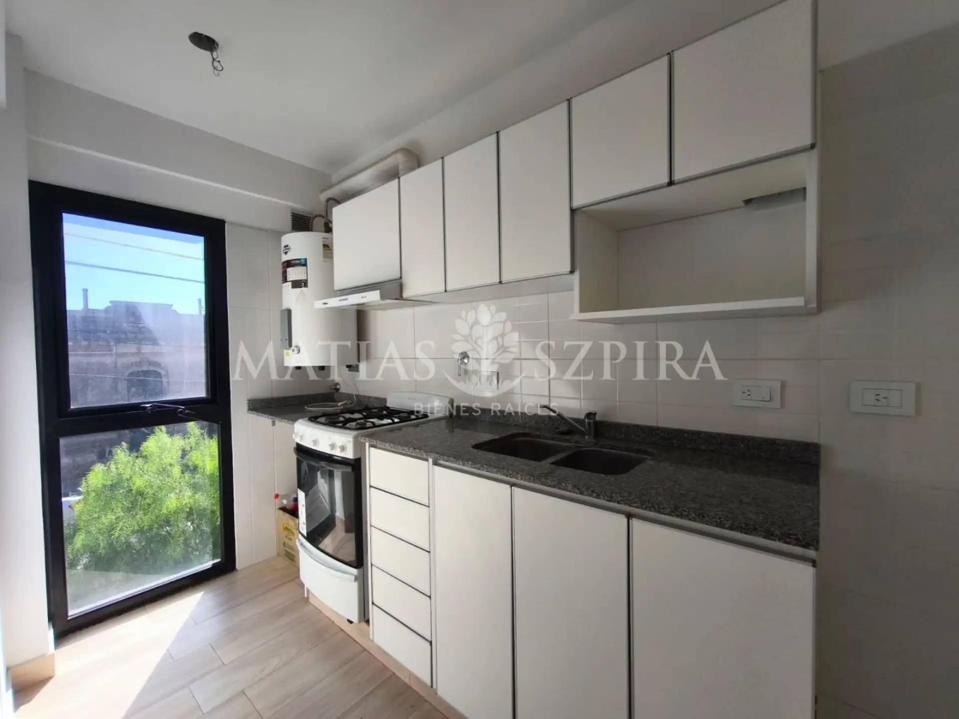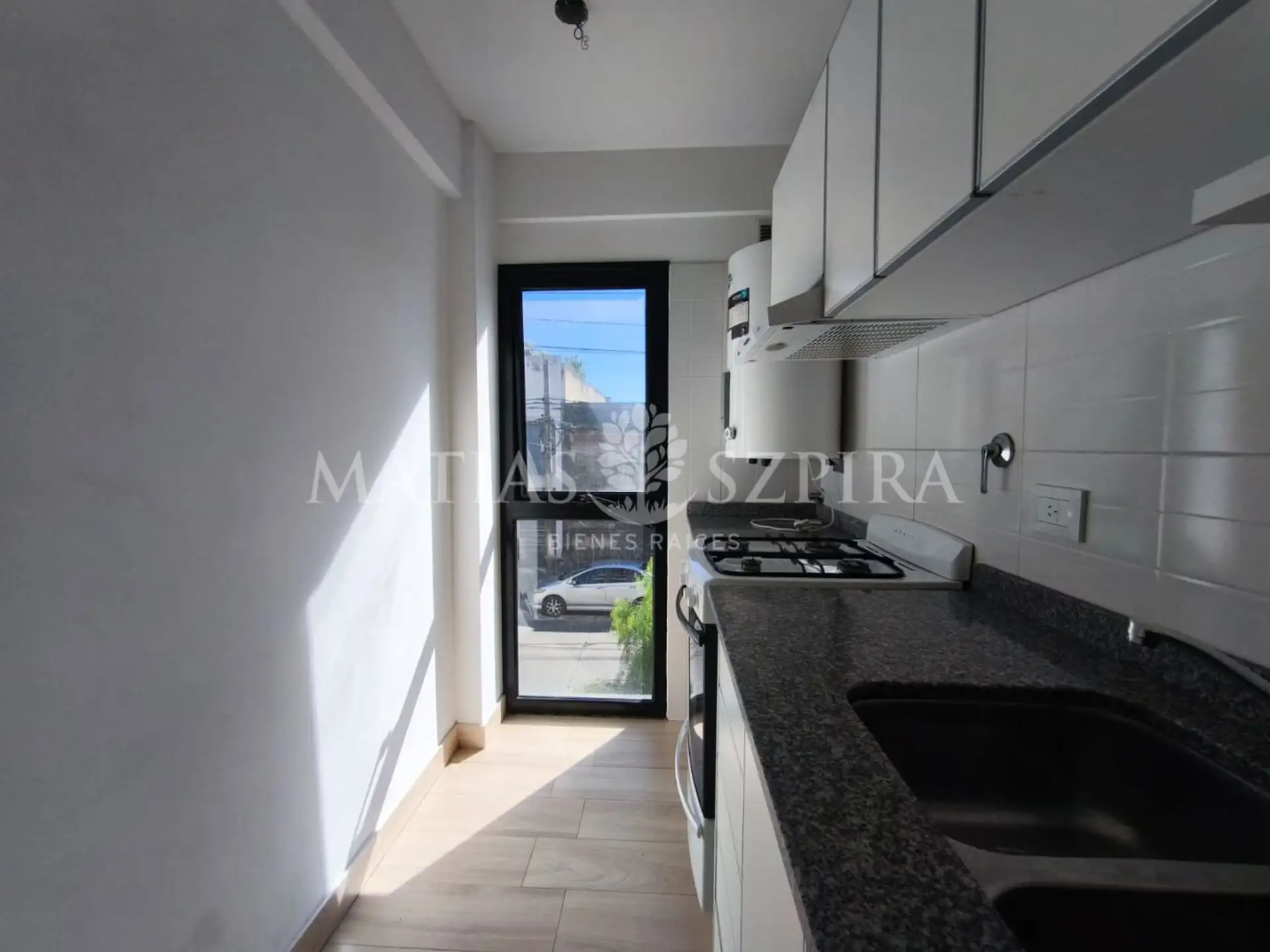 Apartamento de 2 ambientes em Morón Norte, no primeiro andar de frente para a rua. Possui sala de estar e jantar com saída para a varanda, cozinha independente com espaço para máquina de lavar roupas, banheiro completo e quarto com armário embutido.