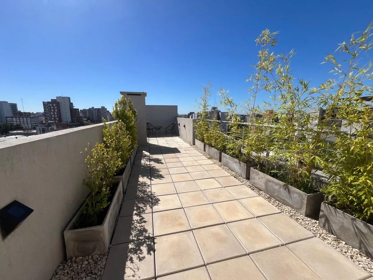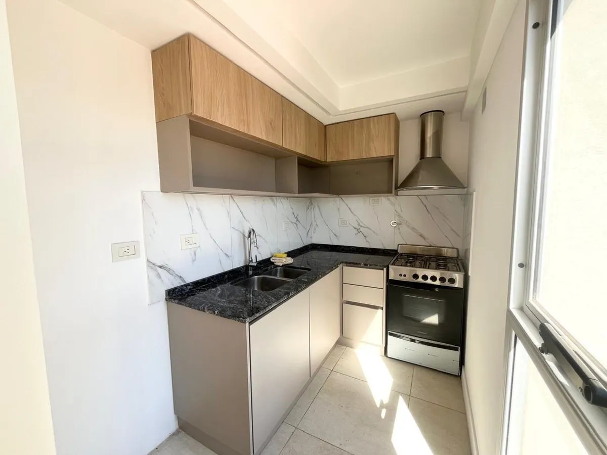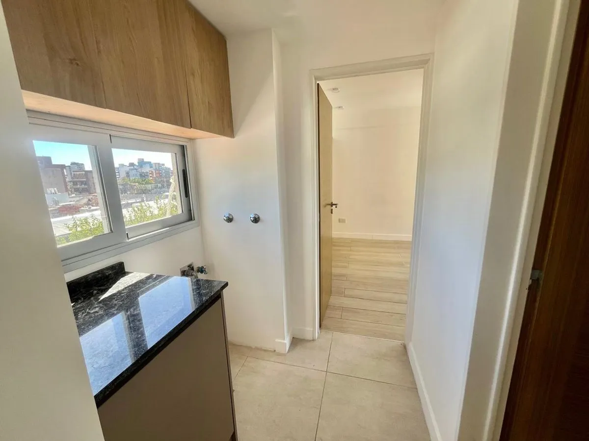 Apartamento de 2 ambientes novo (nunca habitado) em Morón, no 6º andar, com varanda e vista. O prédio tem elevador, terraço amplo e bem ambientado, além de espaço de salão de festas com área de churrasco. Fica perto do centro comercial de Morón, da praça central e da Estación de Morón.