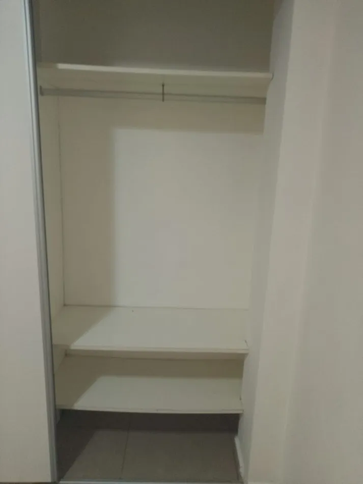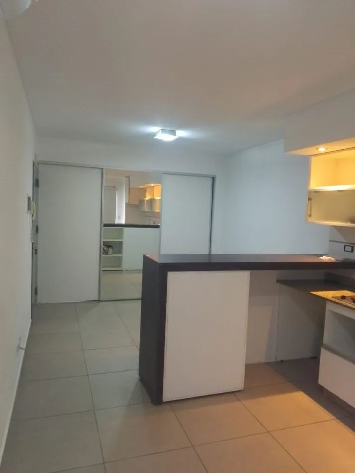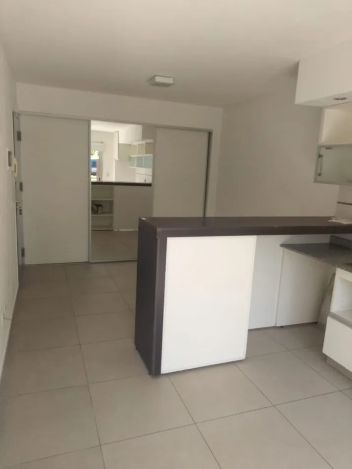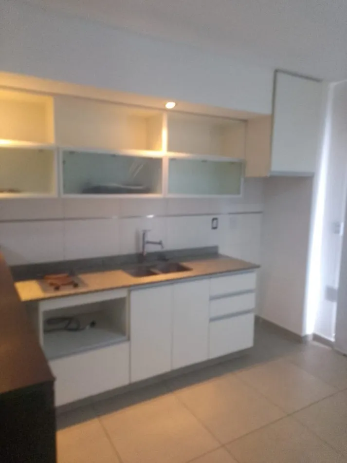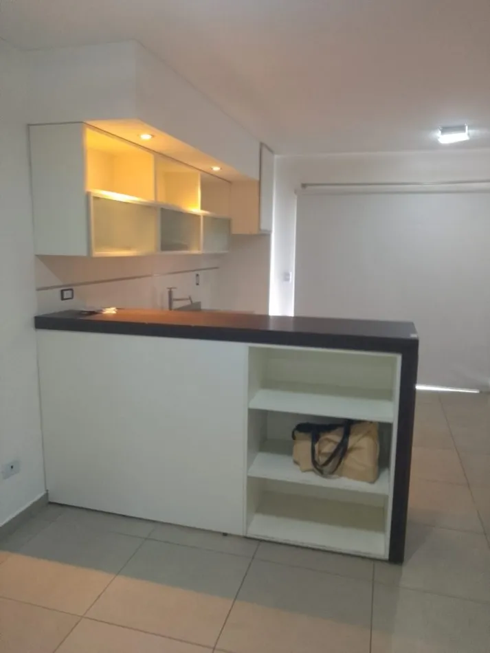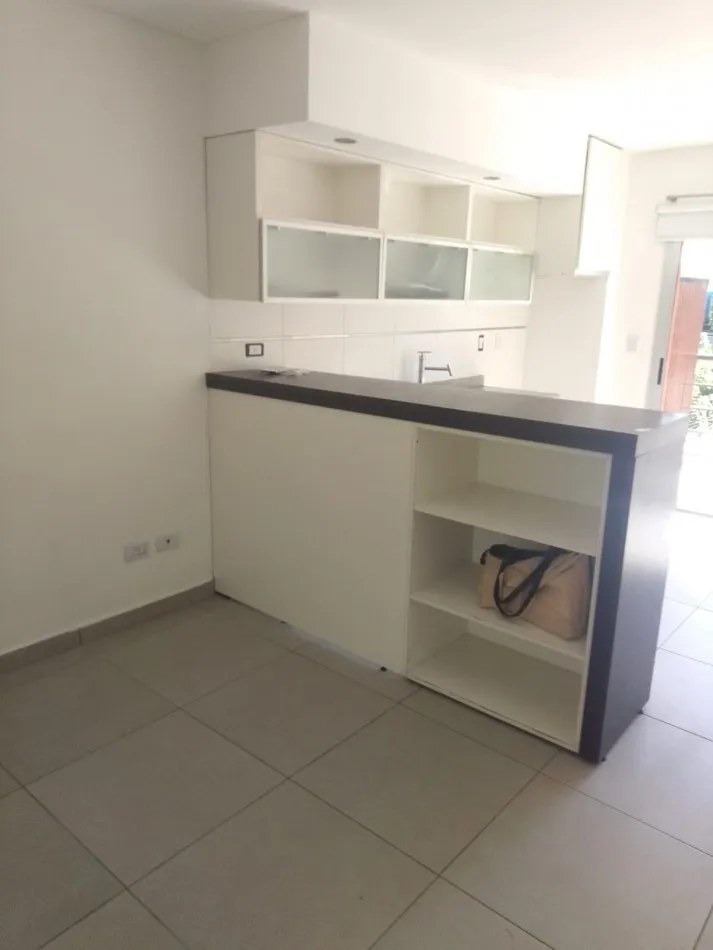 Kitnet em 1º andar com varanda de frente para a rua. Possui 27 m² e iluminação em todos os ambientes. Inclui blackout, ar-condicionado frio/calor, cozinha com armários inferiores e aéreo, fogão com 2 bocas (anafe), balcão para refeições, armário e banheiro completo.