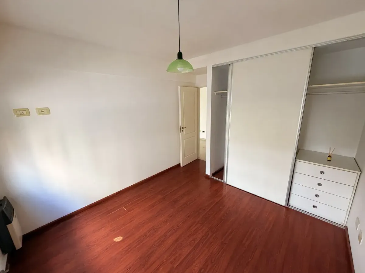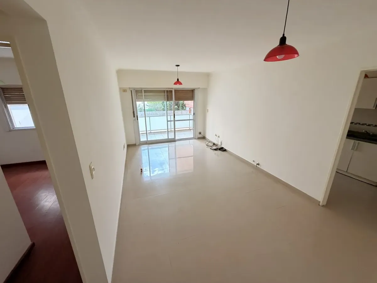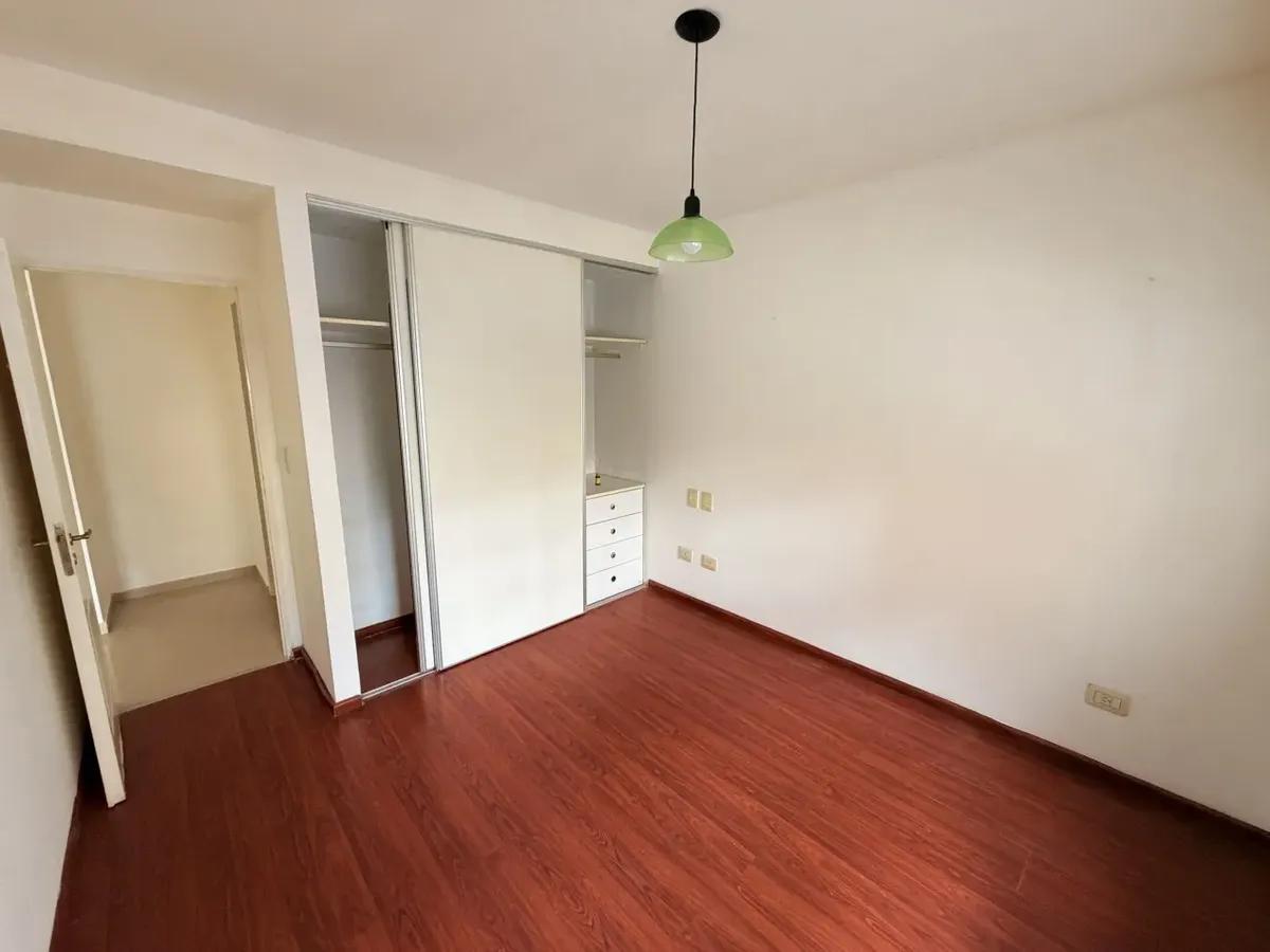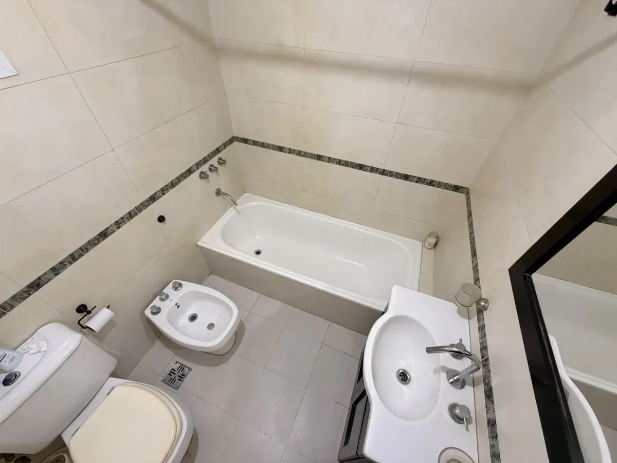 Apartamento de dois ambientes em Castelar Norte, semipiso, no primeiro andar e de fundos. Conta com cozinha separada com móveis sob a bancada, armário aéreo e área de lavanderia, com instalação para máquina de lavar. O banheiro completo tem janela. A sala tem saída para a varanda e o dormitório inclui armário.