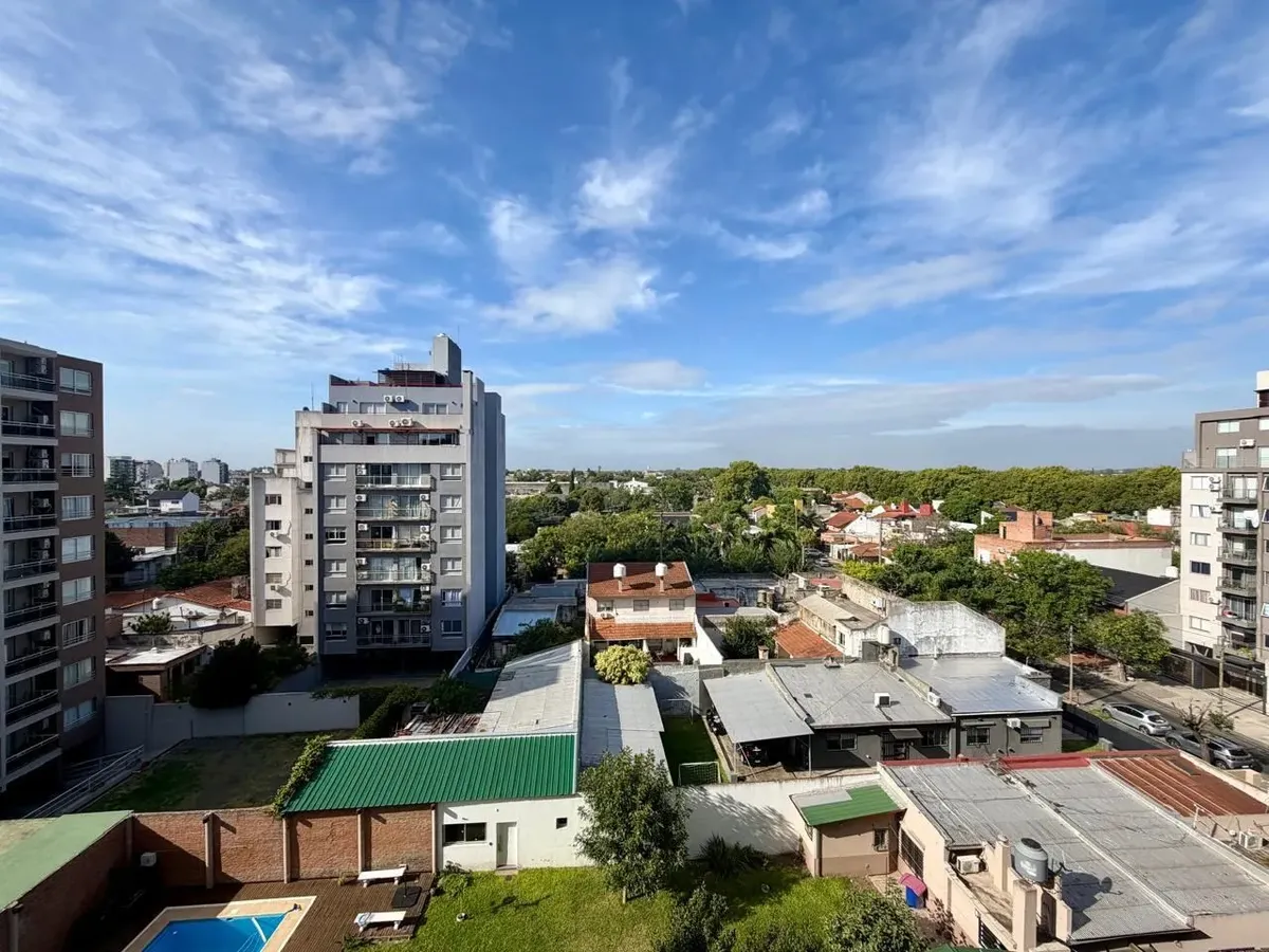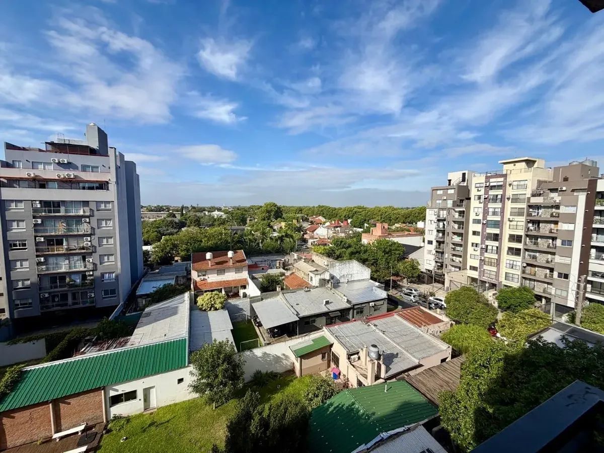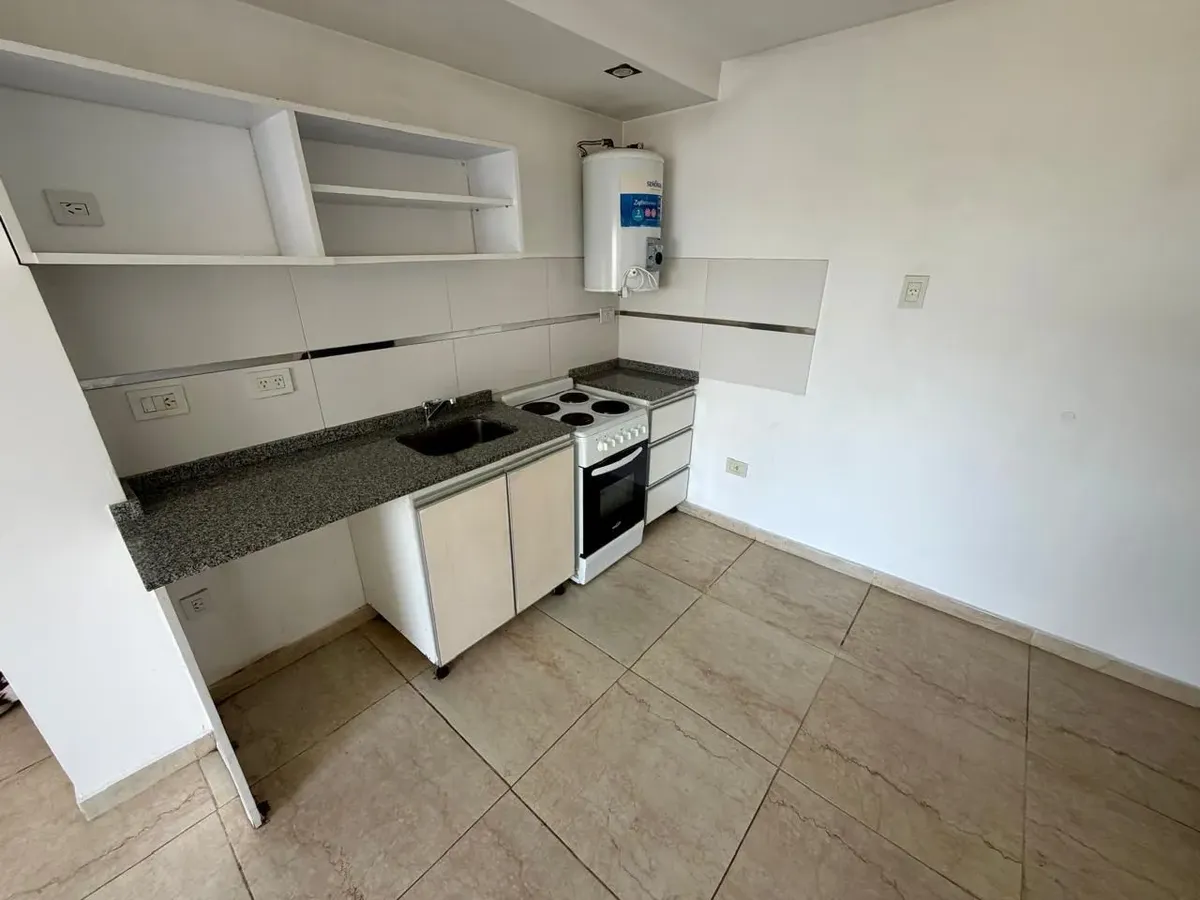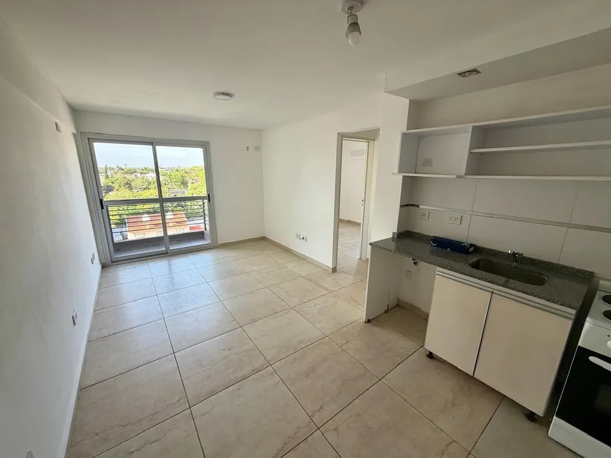 Apartamento de 2 ambientes para alugar em Morón Centro, na rua García Silva 1380, no 6º andar, voltado para os fundos (contrafrente). Dispõe de living e sala de jantar, cozinha integrada, 1 dormitório e 1 banheiro completo. É totalmente elétrico, com termoacumulador (termotanque) e fogão elétrico. Não aceita animais.