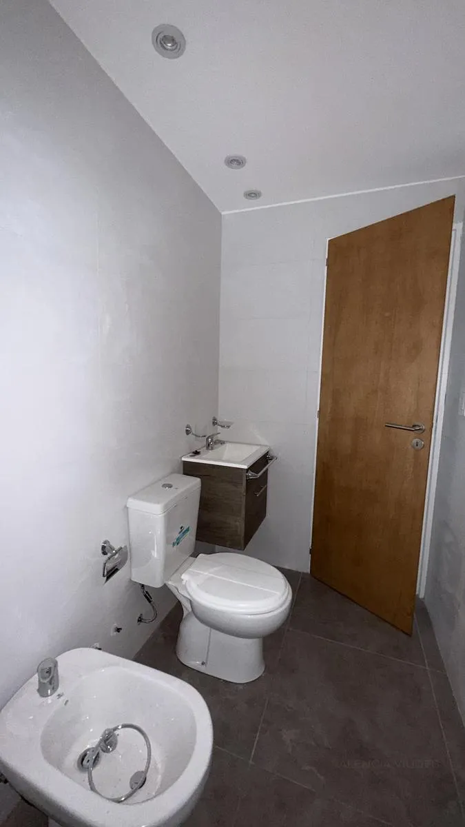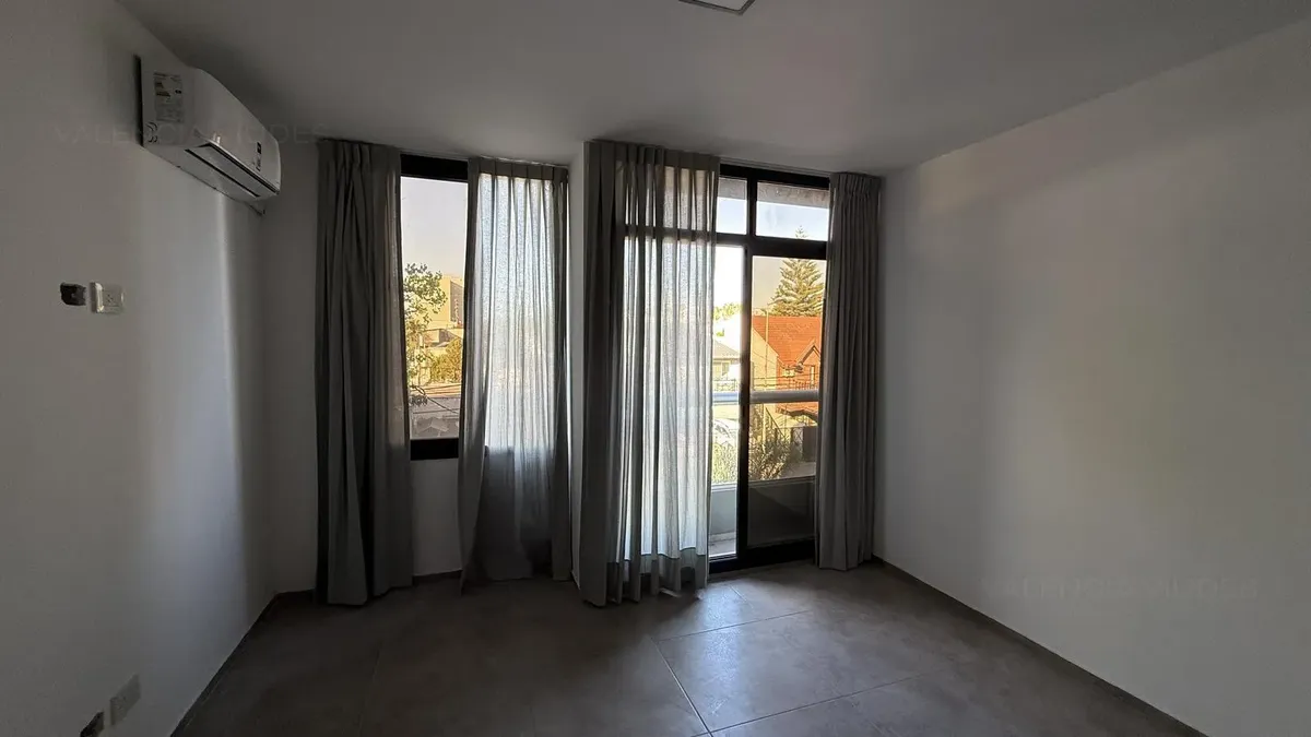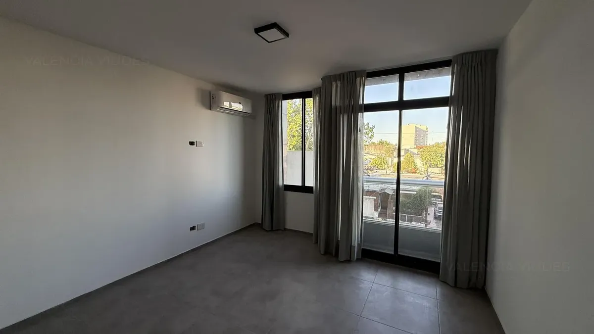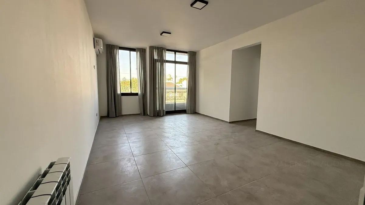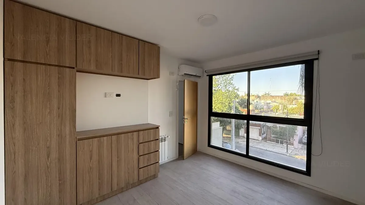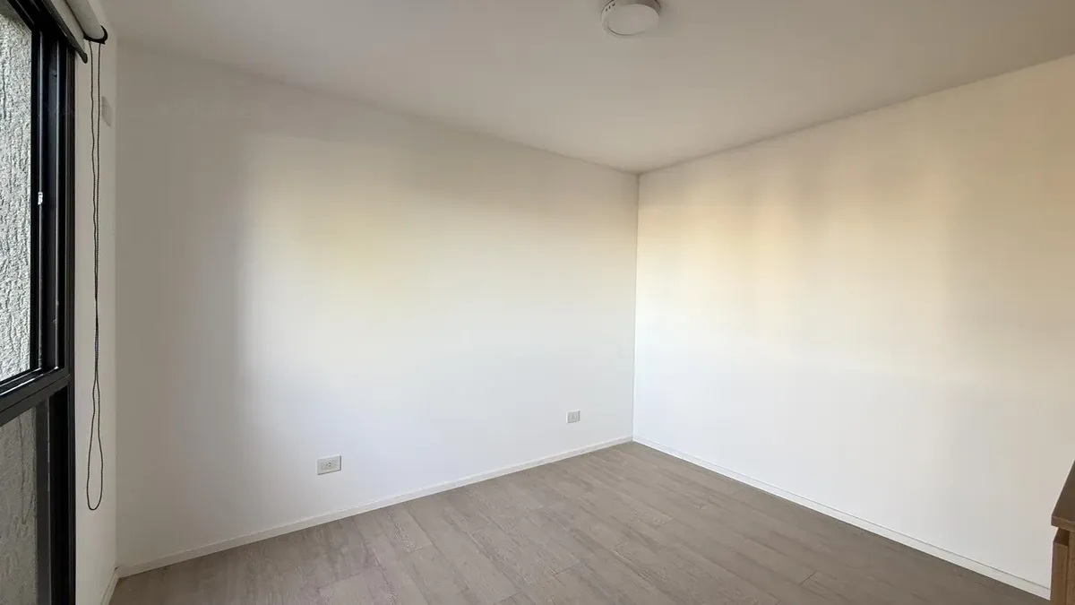 Apartamento de 2 ambientes em Morón Sur, com 1 quarto. Cozinha e sala integradas, com alacena, armário sob a bancada e coifa; cozinha elétrica instalada. Há saída para varanda do tipo balcão francês, quarto com guarda-roupa e espaço para TV, e banheiro completo. O imóvel é entregue com ar-condicionado, aquecimento por radiadores e cortinas instaladas, além de caldeira central no edifício para calefação eficiente. Não há área para instalação de máquina de lavar (sem descarga de lavarropas).