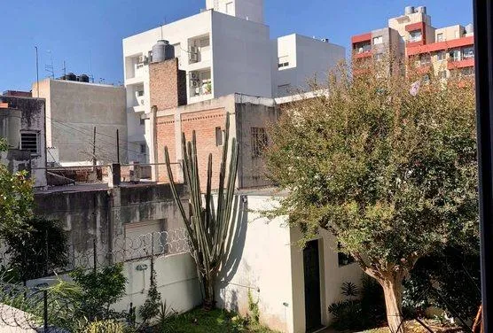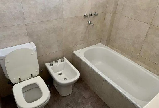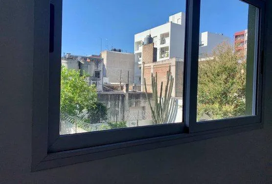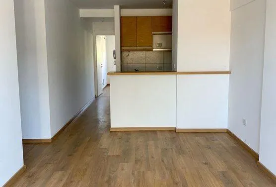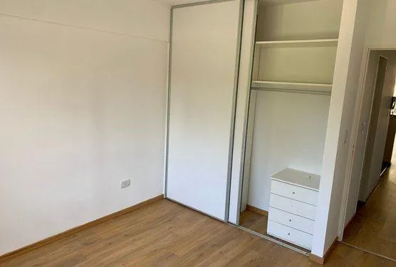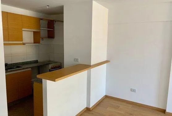 Apartamento de 2 ambientes com 1 quarto, no 1º andar, com varanda voltada para a rua, em Morón. A sala de estar e jantar dá acesso à varanda; cozinha integrada com armários na parte inferior, alçena, bancada e saída de água para lavadora, com espaço para geladeira. Banheiro completo com banheira e box com vaivém, além de dormitório com janela voltada para o fundos do edifício, vista aberta e armário embutido. Conta com pré-instalação para ar-condicionado e aquecimento de água por caldeira. O pré