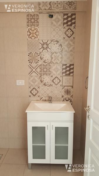 Apartamento de 1 ambiente de frente para a rua, com varanda, em Morón. Inclui cozinha com equipamento completo embutido, com balcão em granito, armário superior (alacena) e bancada (bajo mesada). O imóvel tem piso cerâmico; paredes e teto em gesso; banheiro com banheira e vanitory; conexão para máquina de lavar (lavarropa) e aquecedor de água elétrico (termotanque); fogão elétrico (anafe) e infraestrutura elétrica para ar-condicionado. Janelas de alumínio branco. A unidade é aprovada para uso pr