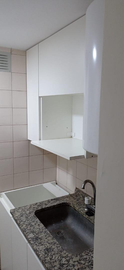 Apartamento de 2 ambientes para aluguel em Morón, no 3º andar de frente, com 1 quarto, sala de estar e jantar, banheiro completo e cozinha tipo kitchenette. O quarto tem armário embutido e porta de correr para a varanda. A kitchenette inclui bancada e armários, além de fogão por vitrocerâmica. Há atualização do valor locativo a cada 3 meses pelo ICL, contrato de 24 meses e depósito em garantia de U$ 500; aluguel do mês de ARS 430.000. É aceito 1 pet de porte pequeno.