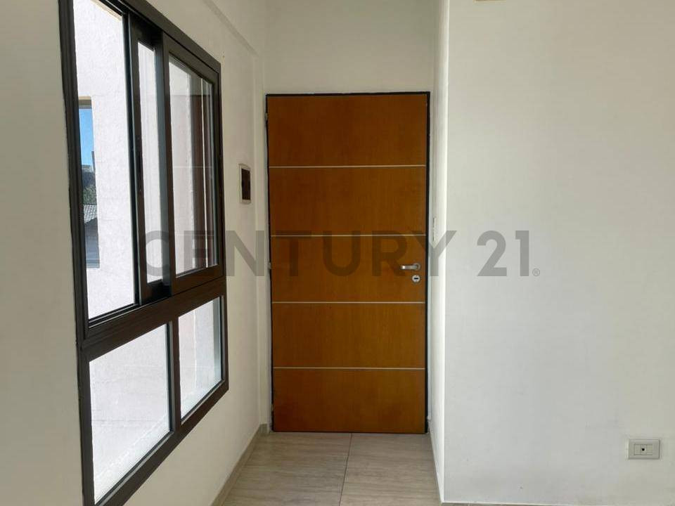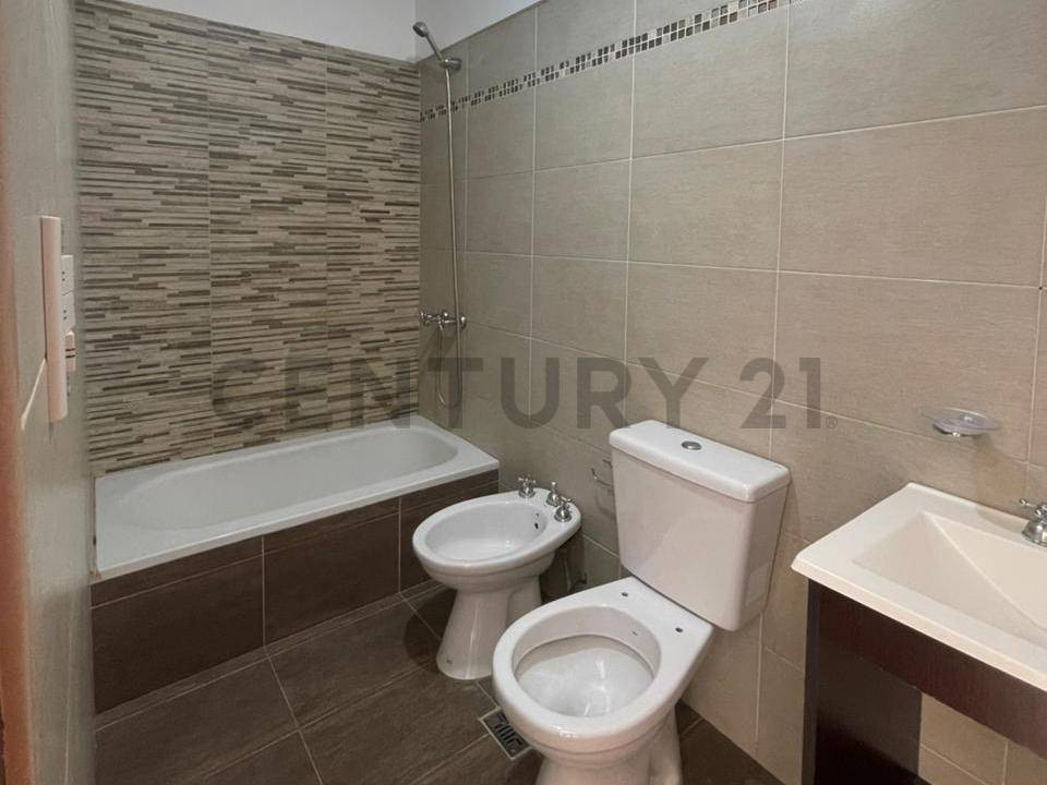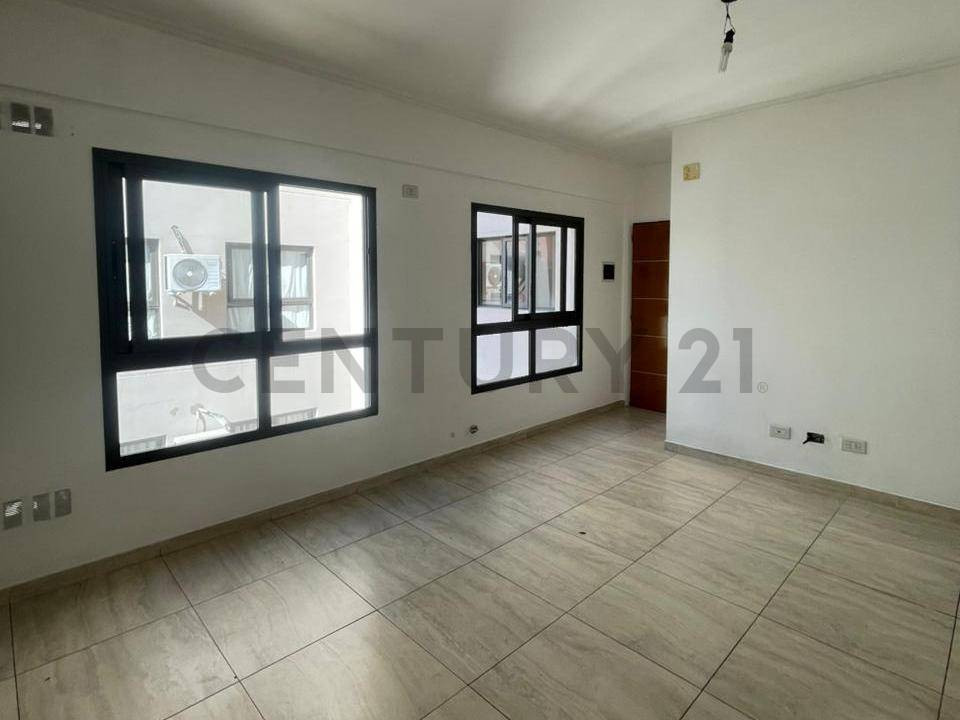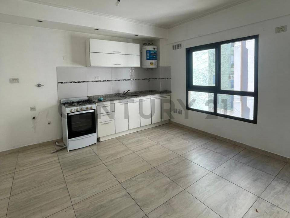 Apartamento de dois ambientes para aluguel em Morón, na Calle Belgrano. Possui 1 quarto com guarda-roupa embutido com portas de correr e saída para a varanda, além de sala de estar/jantar com janelas de vidro duplo. Cozinha integrada com móveis sob e sobre bancada, bancada em granito, fogão e termotanque novos. Inclui 1 banheiro completo com banheira, pisos de porcelanato, aberturas de alumínio com grades de segurança e ar-condicionado por dutos (tiro balanceado) para aquecimento. A varanda fica