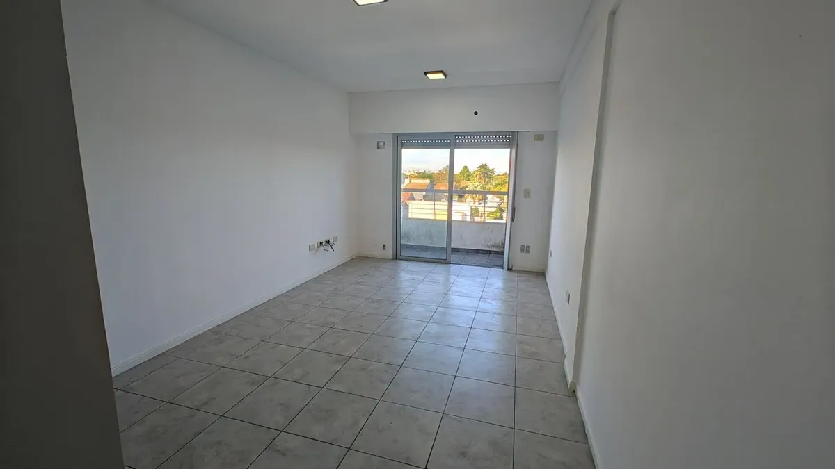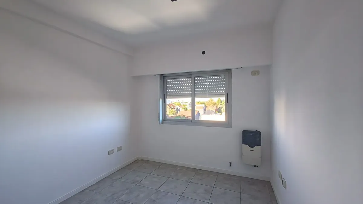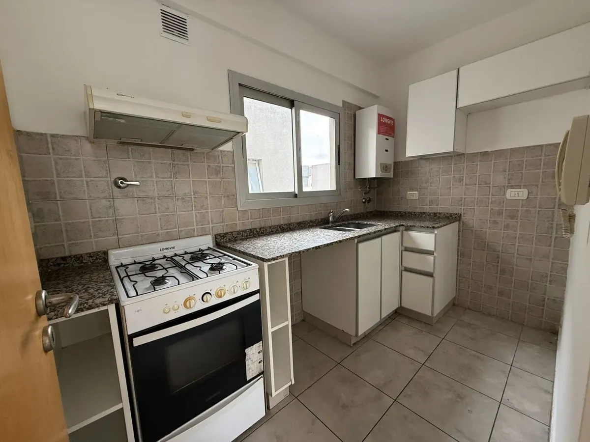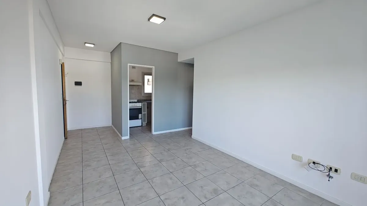 Apartamento de 2 ambientes em Castelar, Morón. Conta com sala de estar e jantar, cozinha separada com forno a gás e ventilação própria, varanda de fundos com vista para o contrafrente e banheiro completo com banheira. O dormitório principal tem armário embutido. Contrato de 24 meses com reajuste trimestral pelo índice IPC.