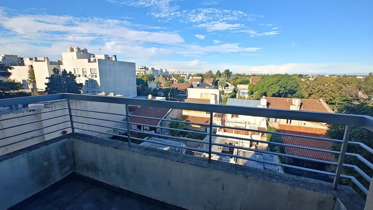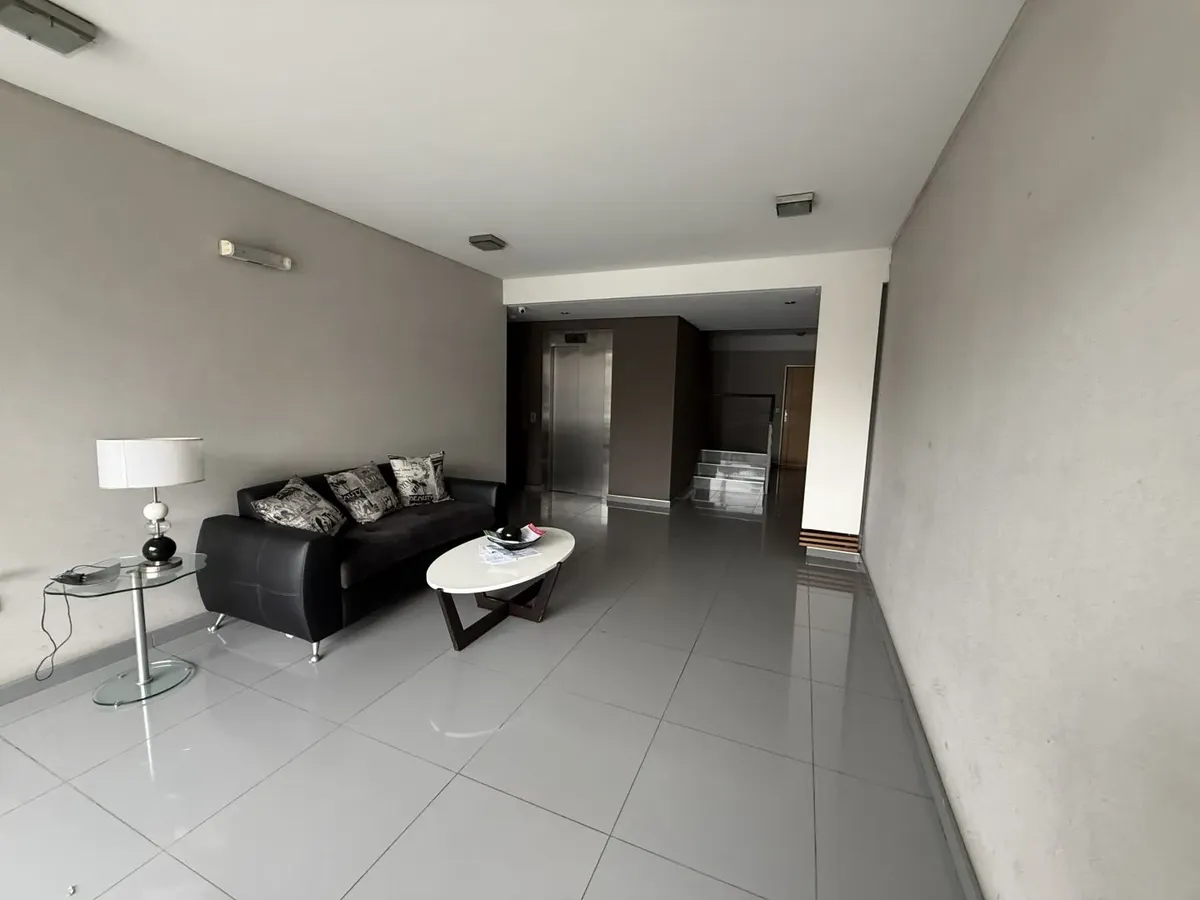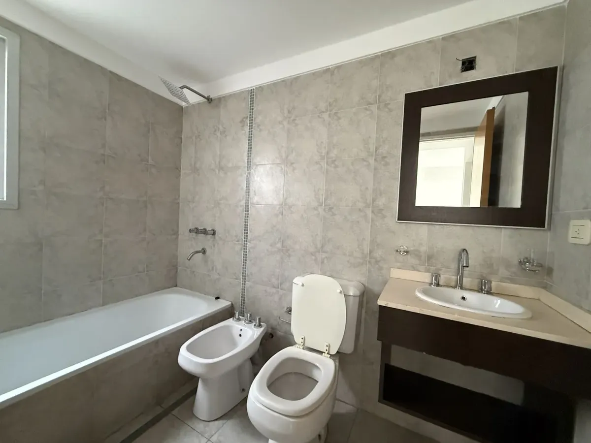 Apartamento de 2 ambientes em Castelar, Morón. Conta com sala de estar e jantar, cozinha separada com forno a gás e ventilação própria, varanda de fundos com vista para o contrafrente e banheiro completo com banheira. O dormitório principal tem armário embutido. Contrato de 24 meses com reajuste trimestral pelo índice IPC.
