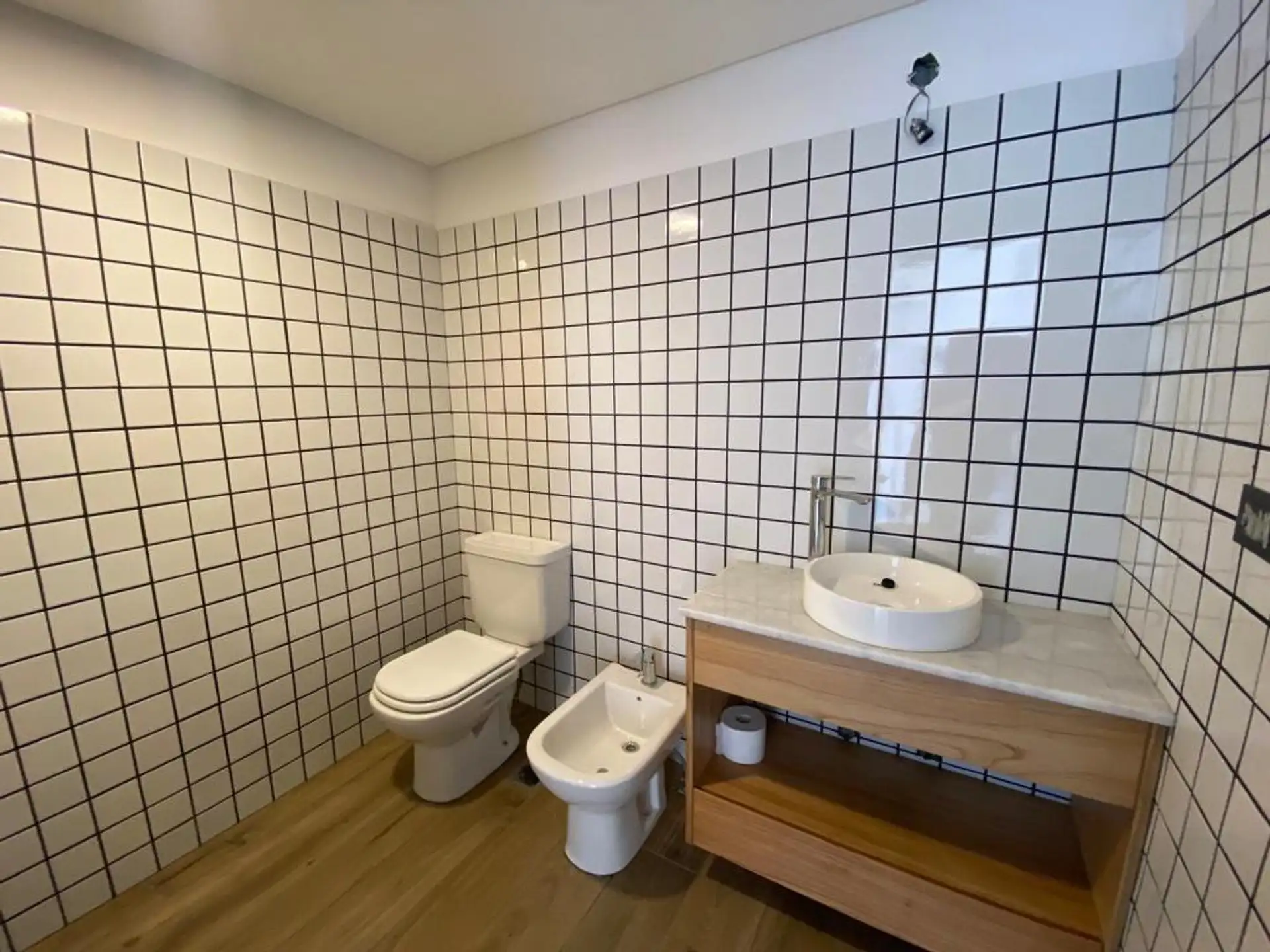 Apartamento em edifício na Avenida Presidente Perón, sobre o novo corredor do Metrobús. A unidade tem sala de estar e jantar, cozinha integrada com barra, banheiro completo com banheira, e 1 dormitório com armário. A cozinha inclui fogão e conta com termo elétrico; há instalação para máquina de lavar. O apartamento tem 2 split frio/calor instalados, janelas com vidro duplo (DVH) e aberturas em alumínio negro. O edifício é elétrico. O depósito equivale a 1 mês. Impostos e água ficam a cargo do in
