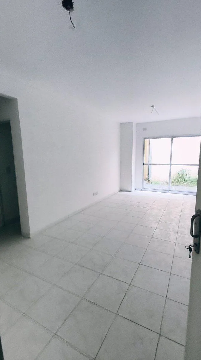 Apartamento de 2 ambientes em Morón, com área de jardim. Condomínio com unidade 100% elétrica, com termotanque, forno e cooktop elétricos. O prédio tem piscina, salão de festas (SUM) e espaços verdes. As medidas informadas são aproximadas.