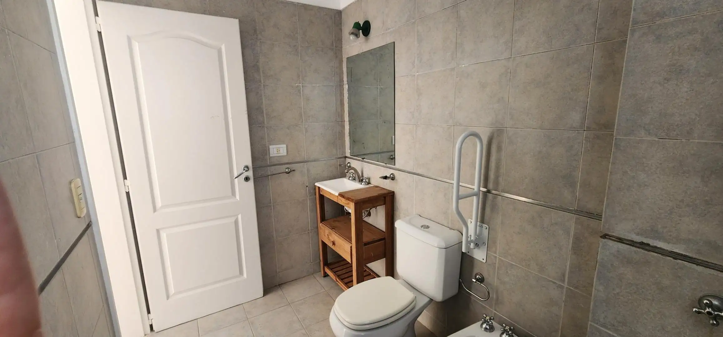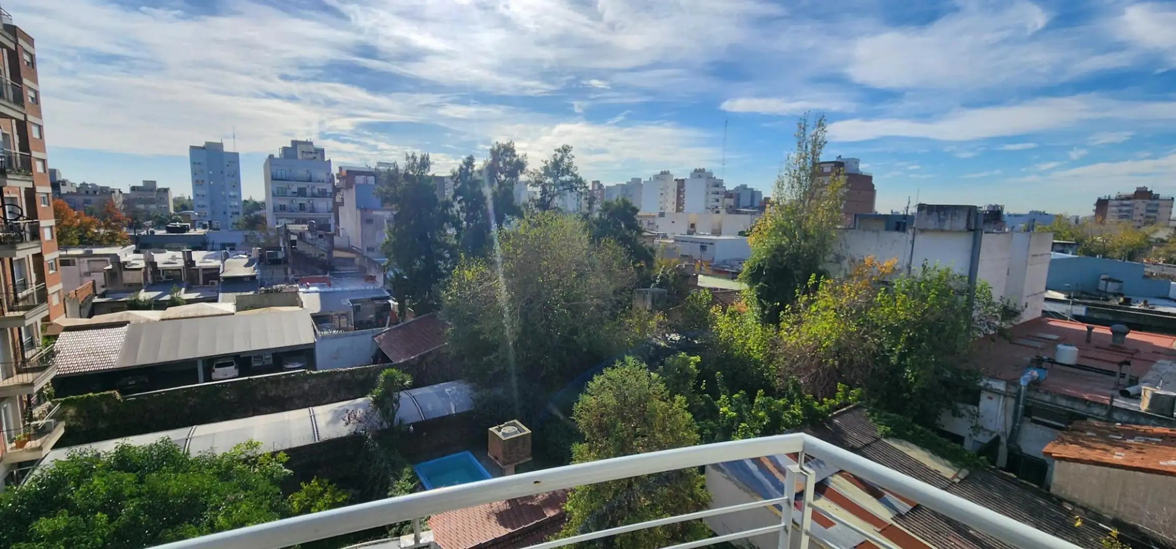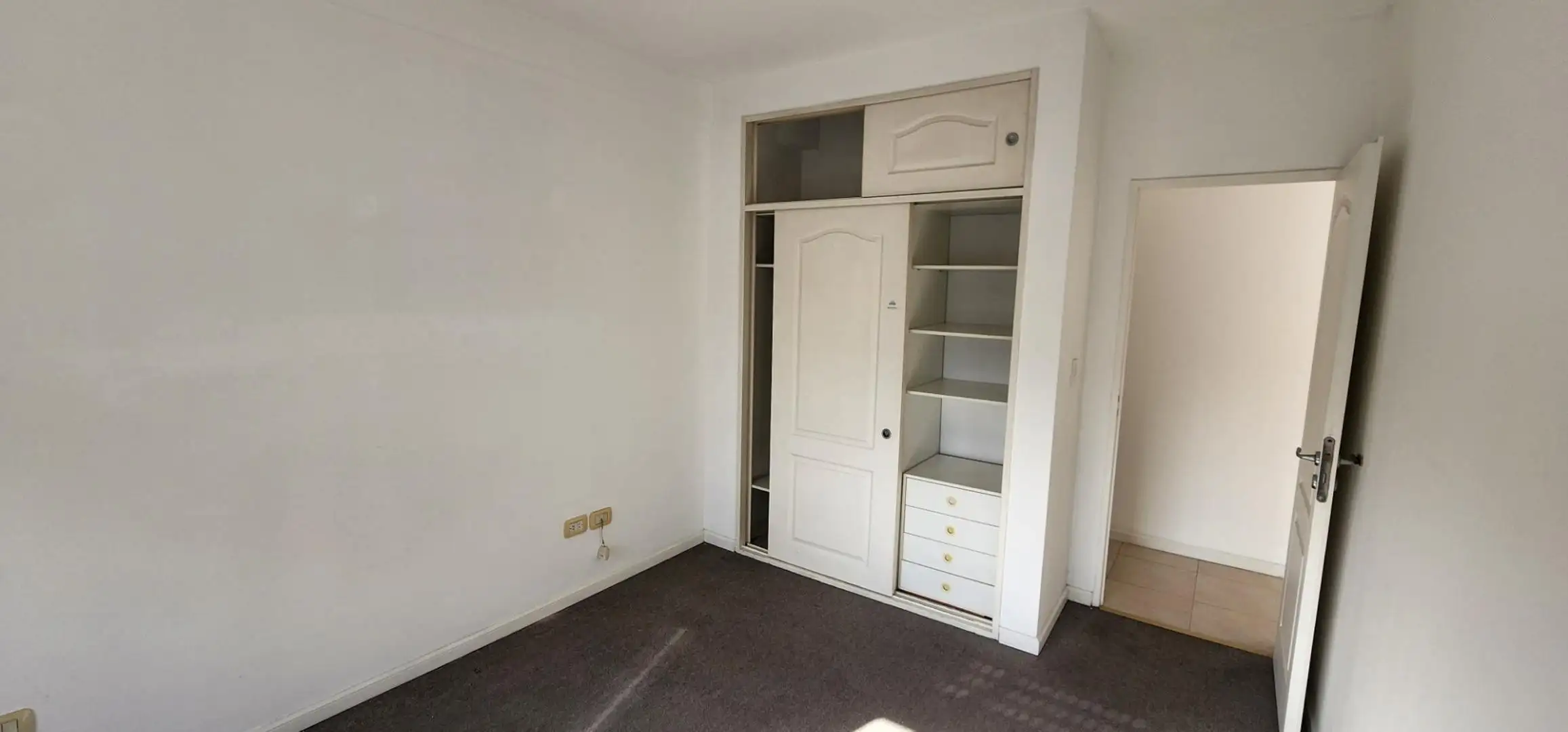 Apartamento de 2 ambientes de frente para o miolo de quadra (contra frente), com orientação norte. O imóvel tem 1 quarto, living com varanda, cozinha independente com móveis sob a bancada e conexão para lavadora, além de banheiro completo com banheira. Há aquecimento por estufa a tiro balanceado e termo elétrico, e o prédio tem 3 elevadores, terraço comum com solário e área de churrasco. A locação exige garantia familiar proprietária e não permite animais, com contrato de 2 anos e reajuste trime