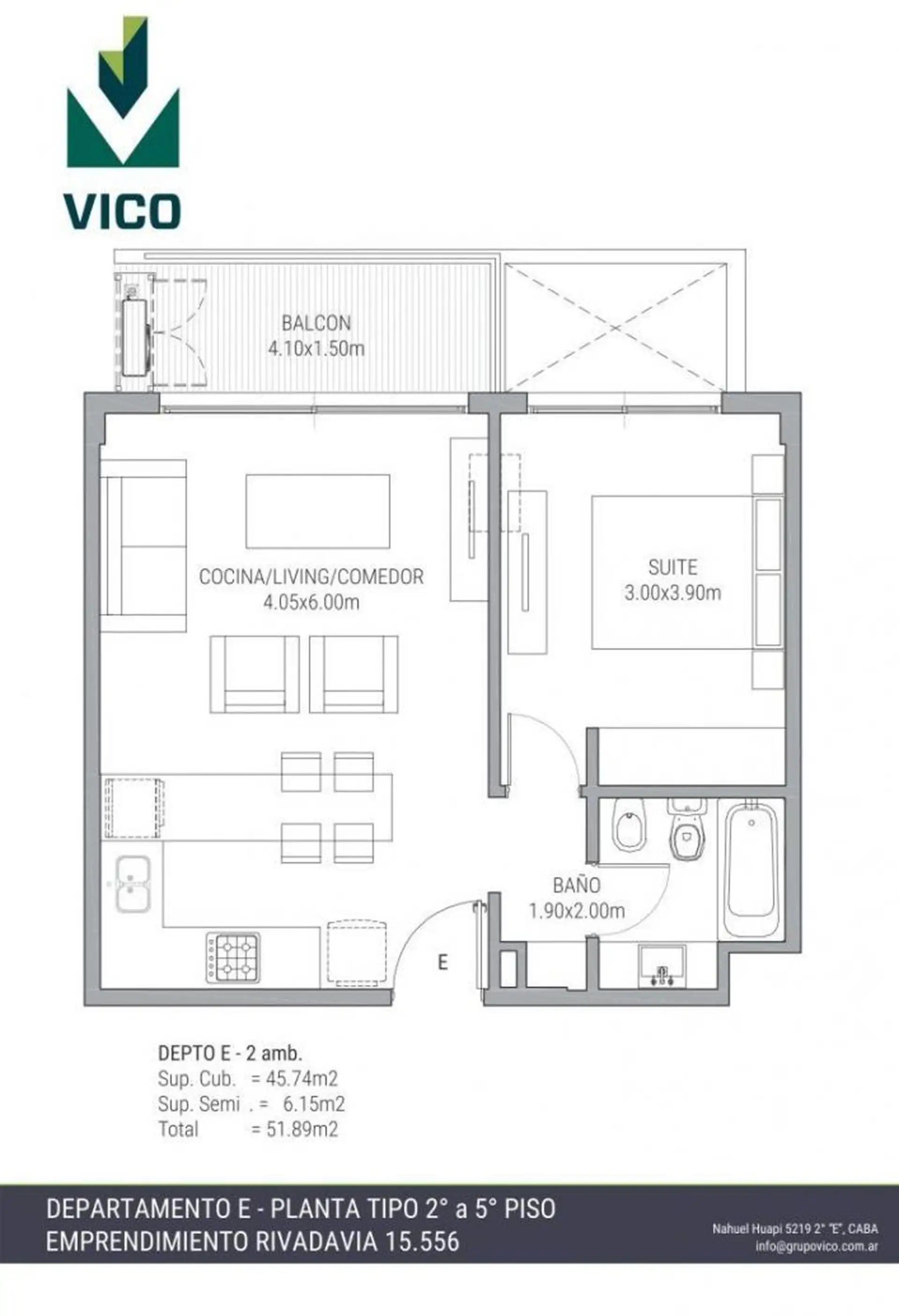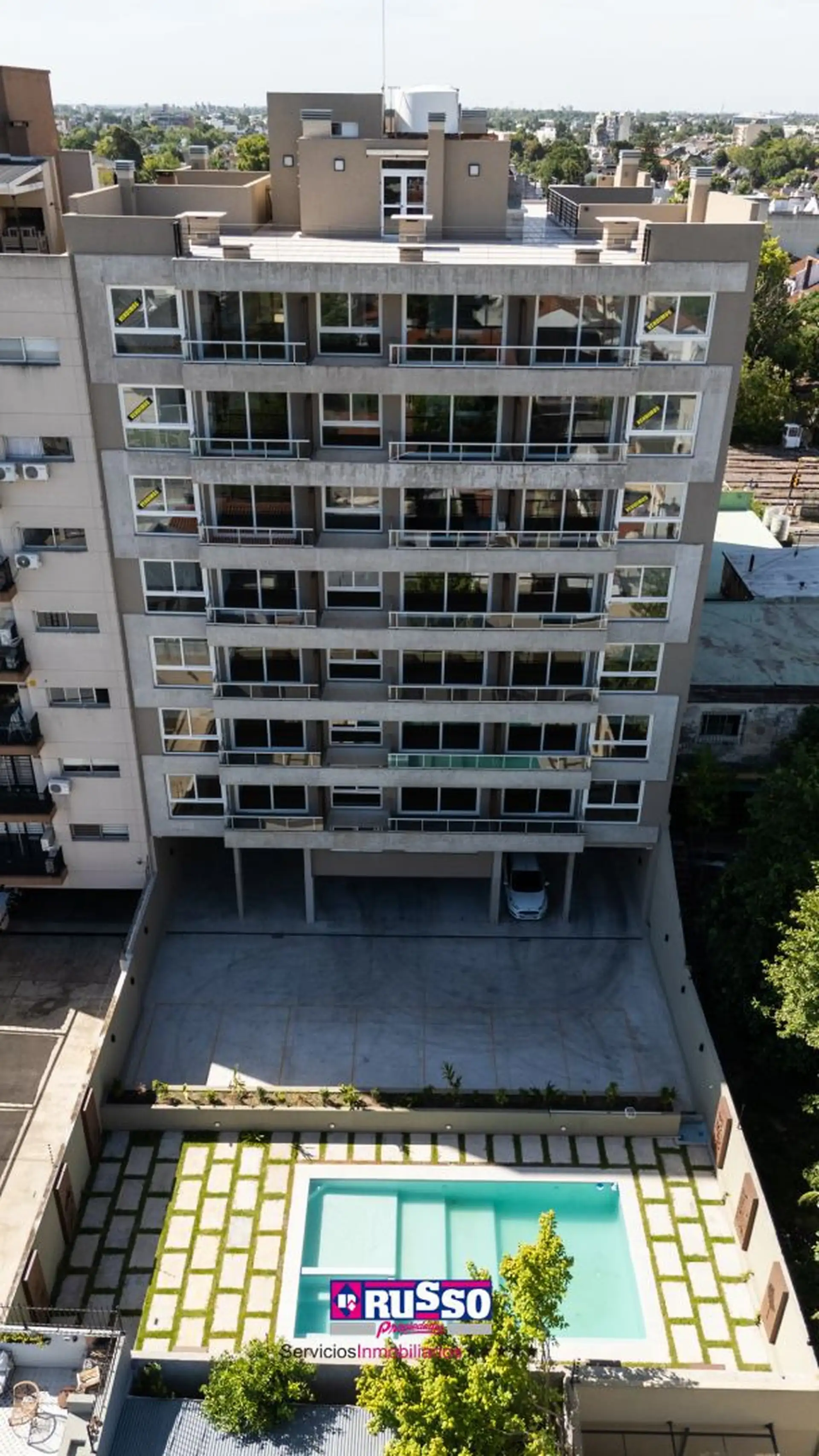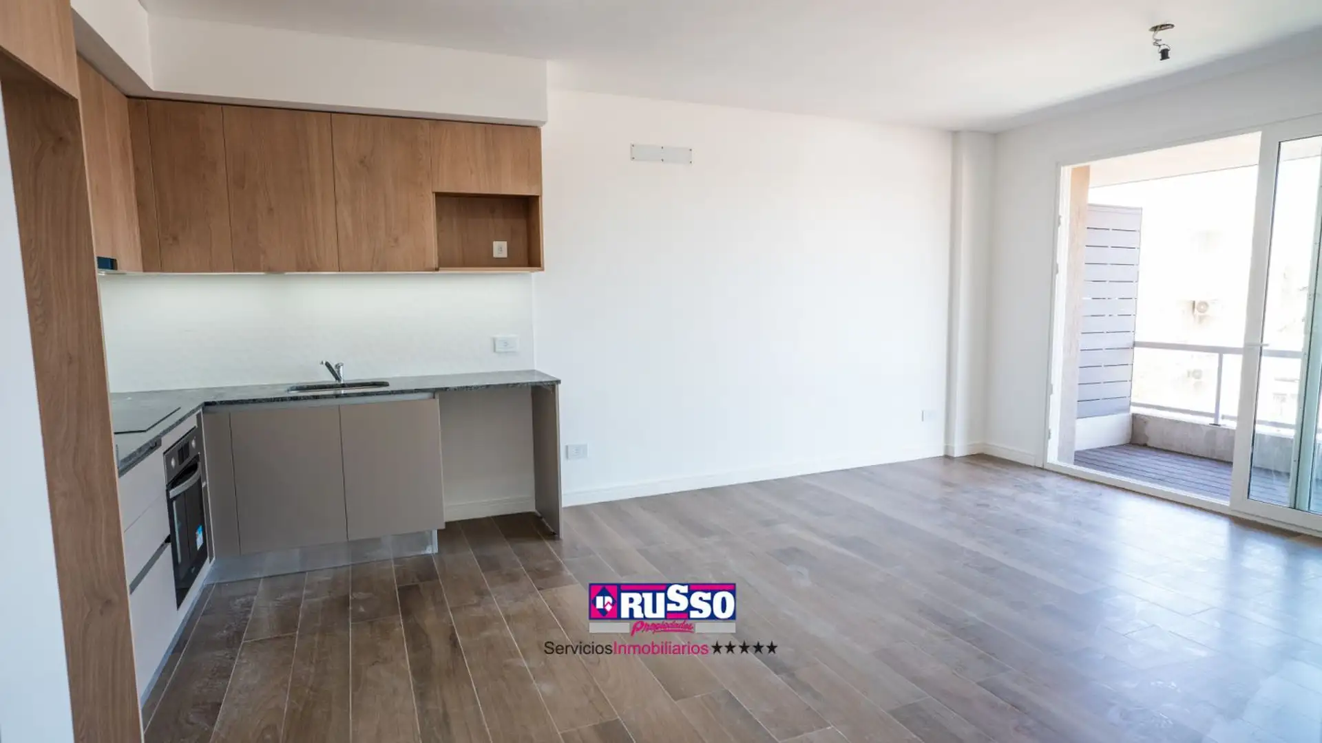 Apartamento de 2 ambientes novo (nunca habitado) em Haedo, Morón. Unidade de fundos (contrafrente), com cozinha integrada ao living-comedor, 1 quarto com armário com interiores completos, banheiro completo e varanda de fundos. O edifício tem hall de acesso coberto, fachada com vidro Blindex, piscina com solário no térreo, elevadores e água quente central.