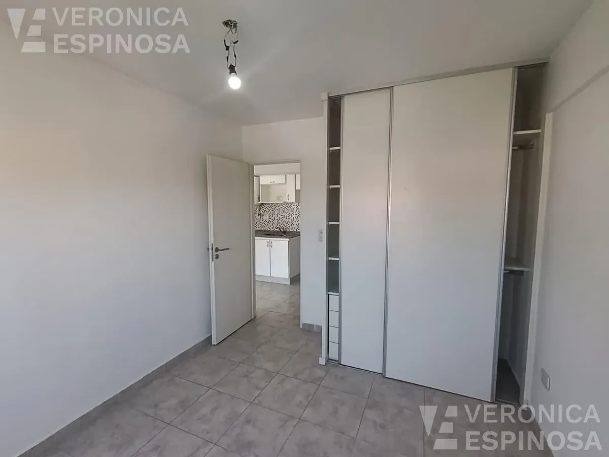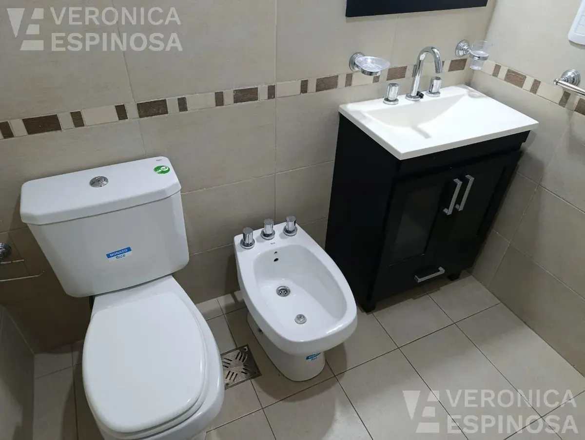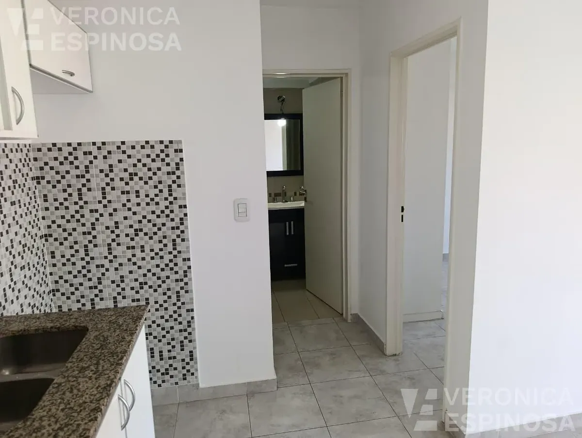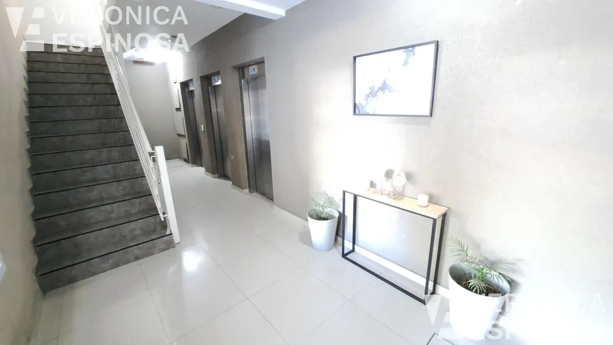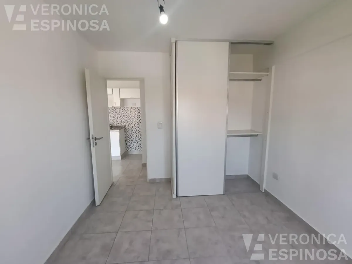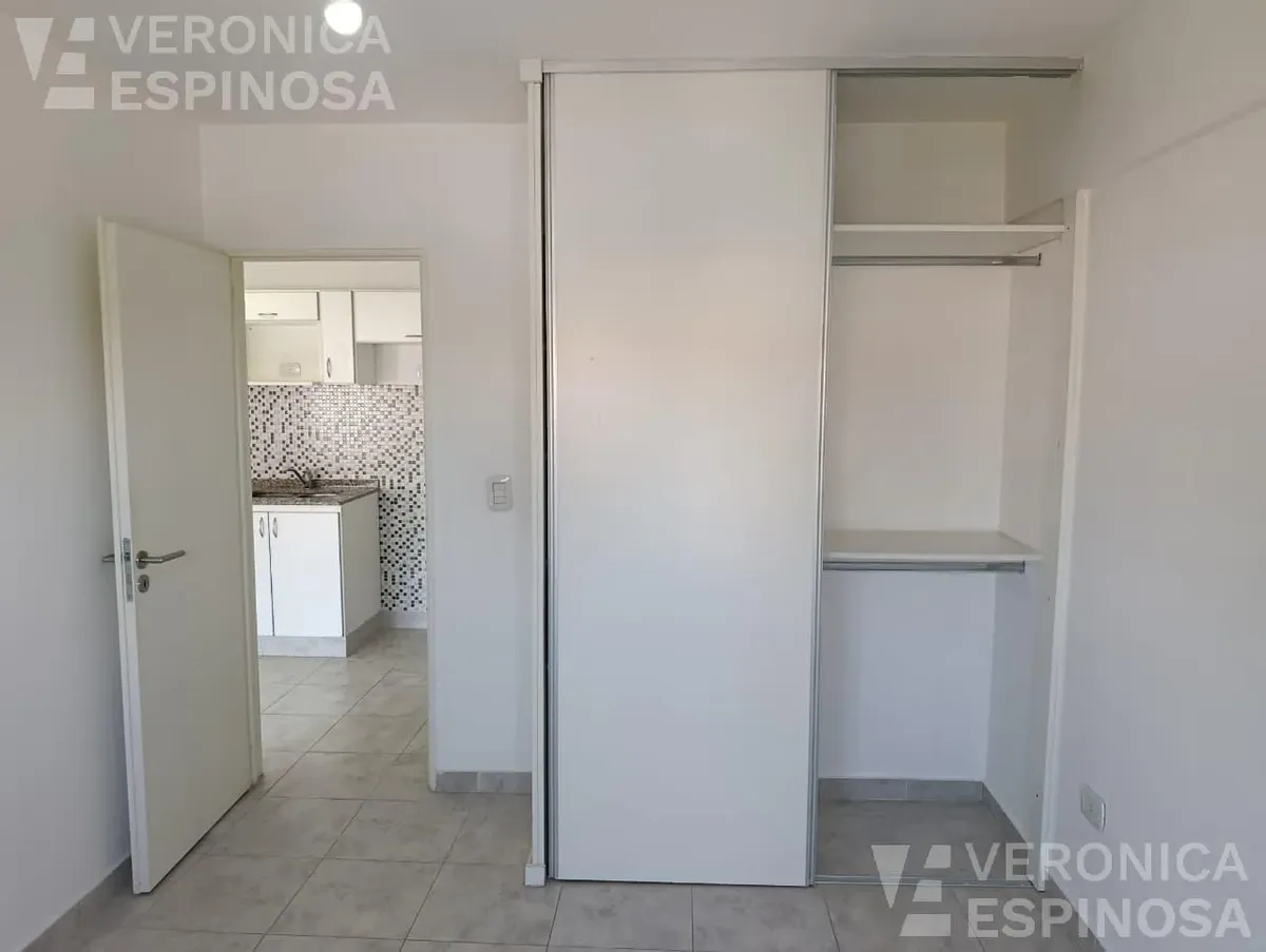 Apartamento de dois ambientes com frente para a rua, no centro de Morón. A unidade tem sala de estar e jantar, cozinha com bancada de mármore, pia de aço inox, torneira monocomando, armários inferiores e despensa, além de aparelho de cozinha e aquecedor de água elétrico (termotanque). O quarto tem piso de cerâmica, guarda-roupa embutido do piso ao teto e aquecimento por aquecedor de tiro balanceado. Há pré-instalação de ar-condicionado nos dois ambientes e banheiro completo com banheira e tornei