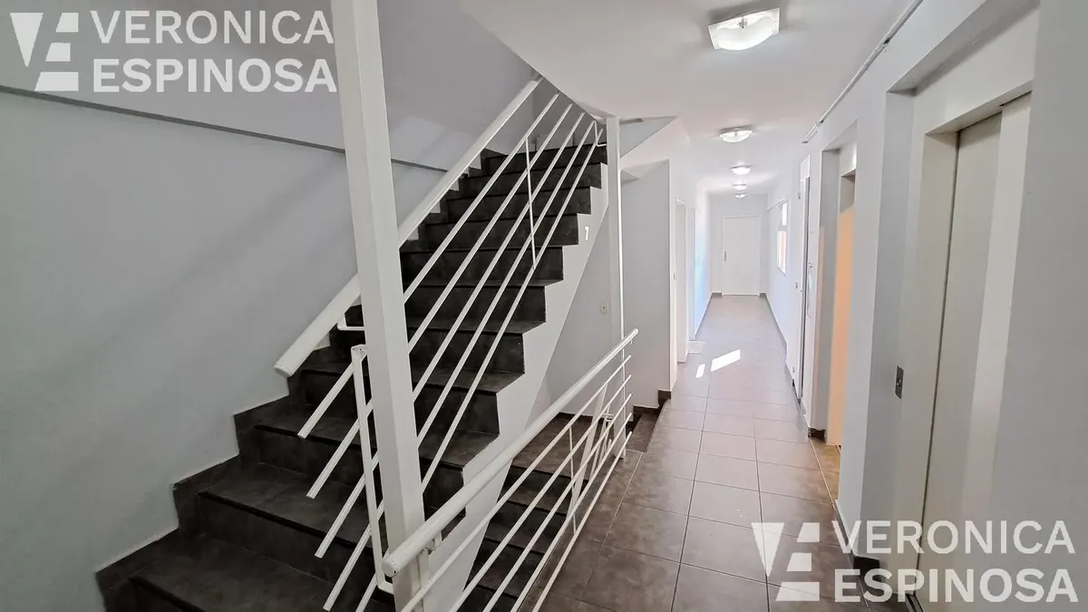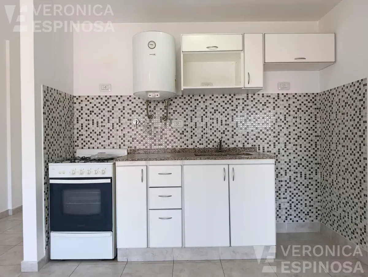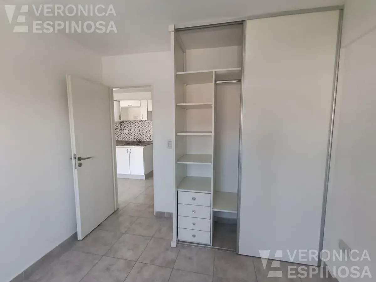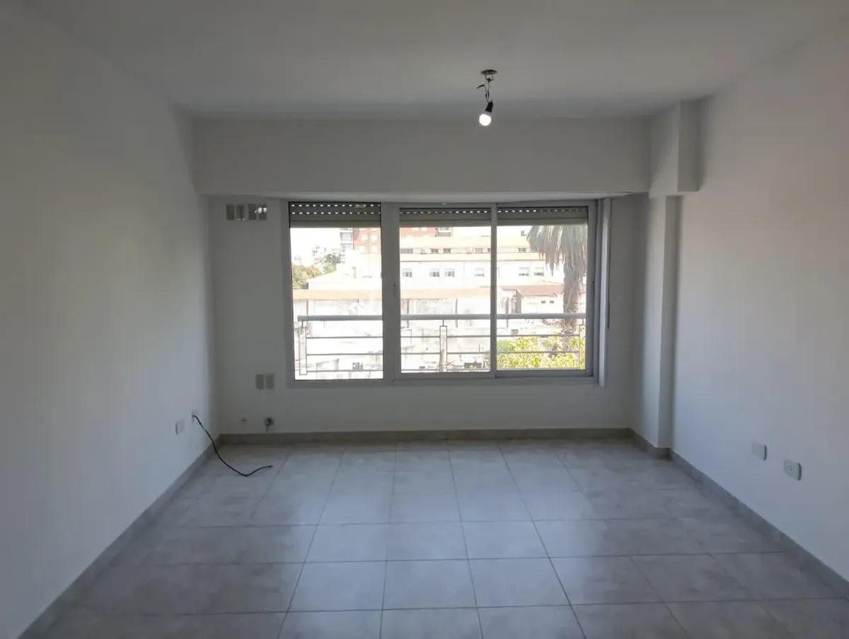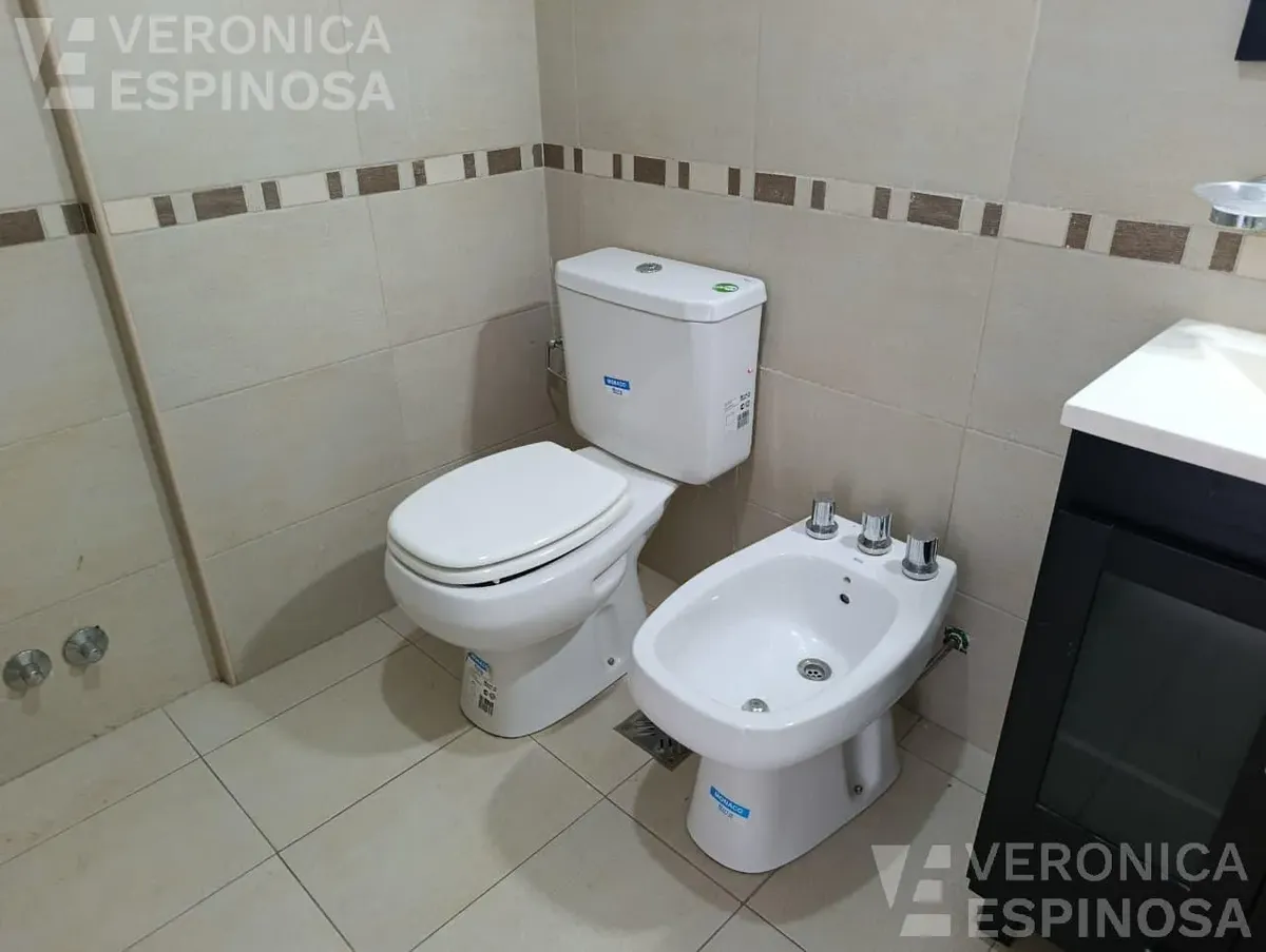 Apartamento de dois ambientes com frente para a rua, no centro de Morón. A unidade tem sala de estar e jantar, cozinha com bancada de mármore, pia de aço inox, torneira monocomando, armários inferiores e despensa, além de aparelho de cozinha e aquecedor de água elétrico (termotanque). O quarto tem piso de cerâmica, guarda-roupa embutido do piso ao teto e aquecimento por aquecedor de tiro balanceado. Há pré-instalação de ar-condicionado nos dois ambientes e banheiro completo com banheira e tornei