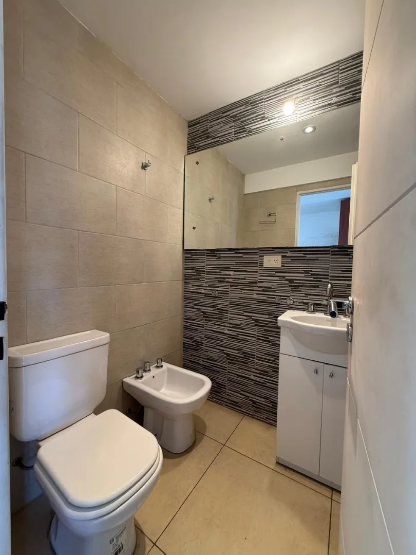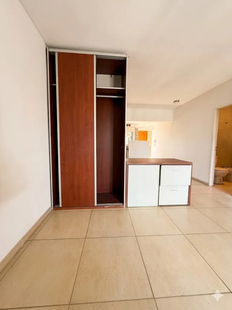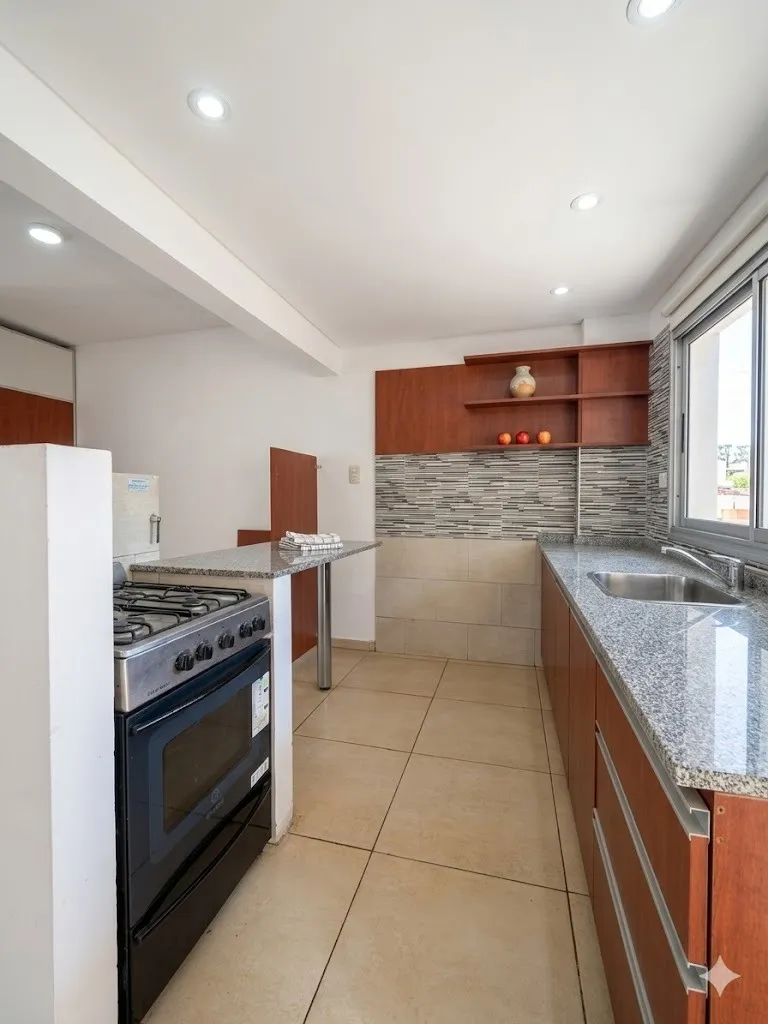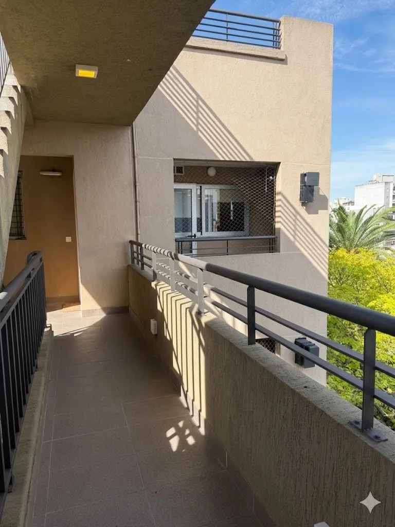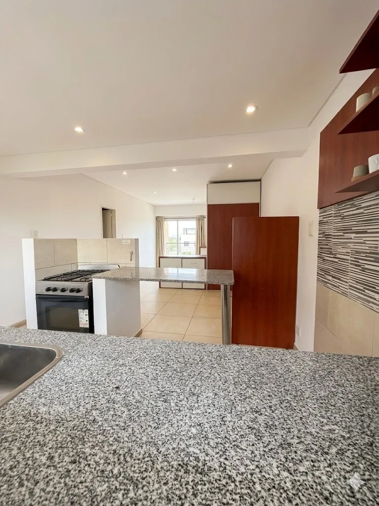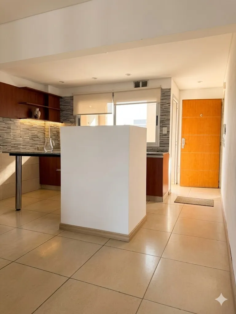 Apartamento para alugar em Morón com 1 quarto e vaga de garagem. Possui ambiente com possibilidade de divisão para dormitório, cozinha instalada com ilha e passa-prato, área de refeições diárias e lavadero independente. Inclui banheiro completo com vanitory, quarto com armário embutido por placard e varanda-terraço com boa entrada de luz natural. O imóvel tem piso de porcelanato e água quente por calefón a gás natural. O prédio conta com salão de usos múltiplos (SUM) com área de churrasco, quios