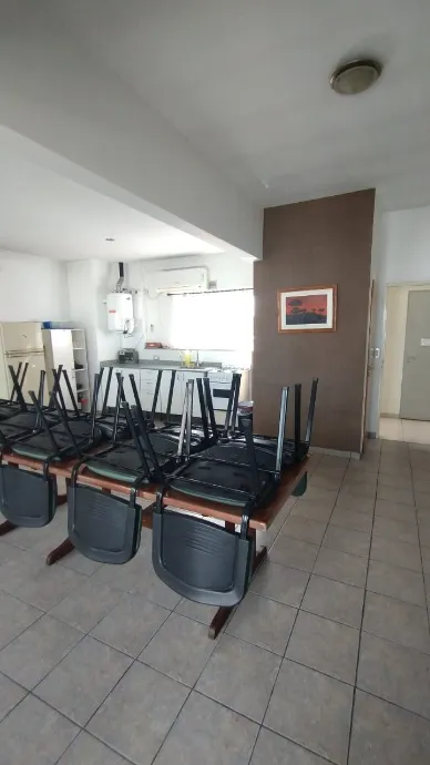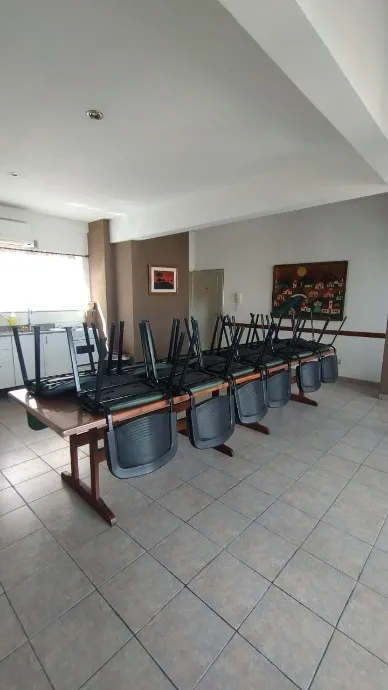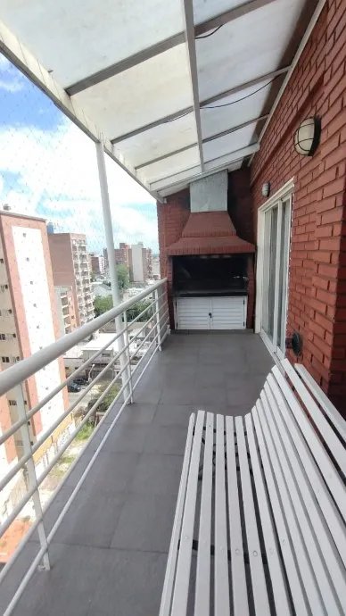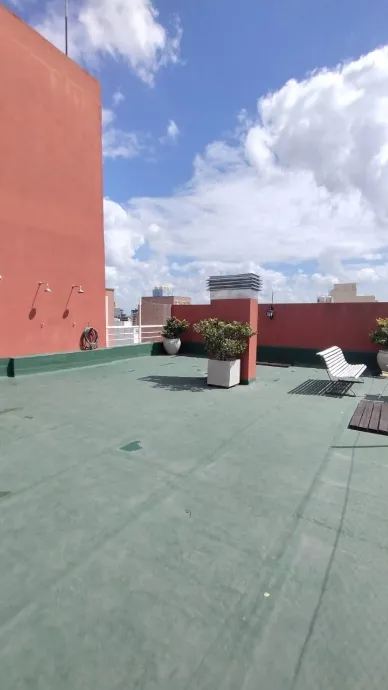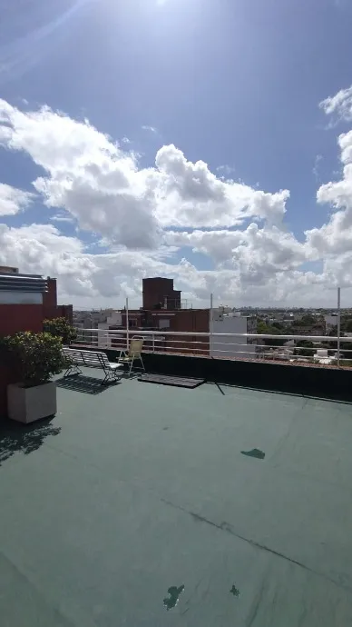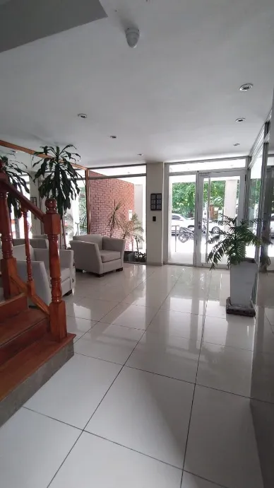 Apartamento de 2 ambientes em edifício em Morón, com 1 quarto e banheiro completo. Inclui living com ar split (apenas frio) e estufa elétrica, cozinha separada mobiliada e equipada com fogão e exaustor, e conexão para lavadora na parte inferior da bancada. O dormitório tem placar. O prédio oferece lavadero na planta baixa, salão de usos múltiplos no último piso e terraço com solarium. Não são aceitos animais. Contrato de 2 anos, com atualização trimestral pelo IPC. Requisitos: comprovação de ren