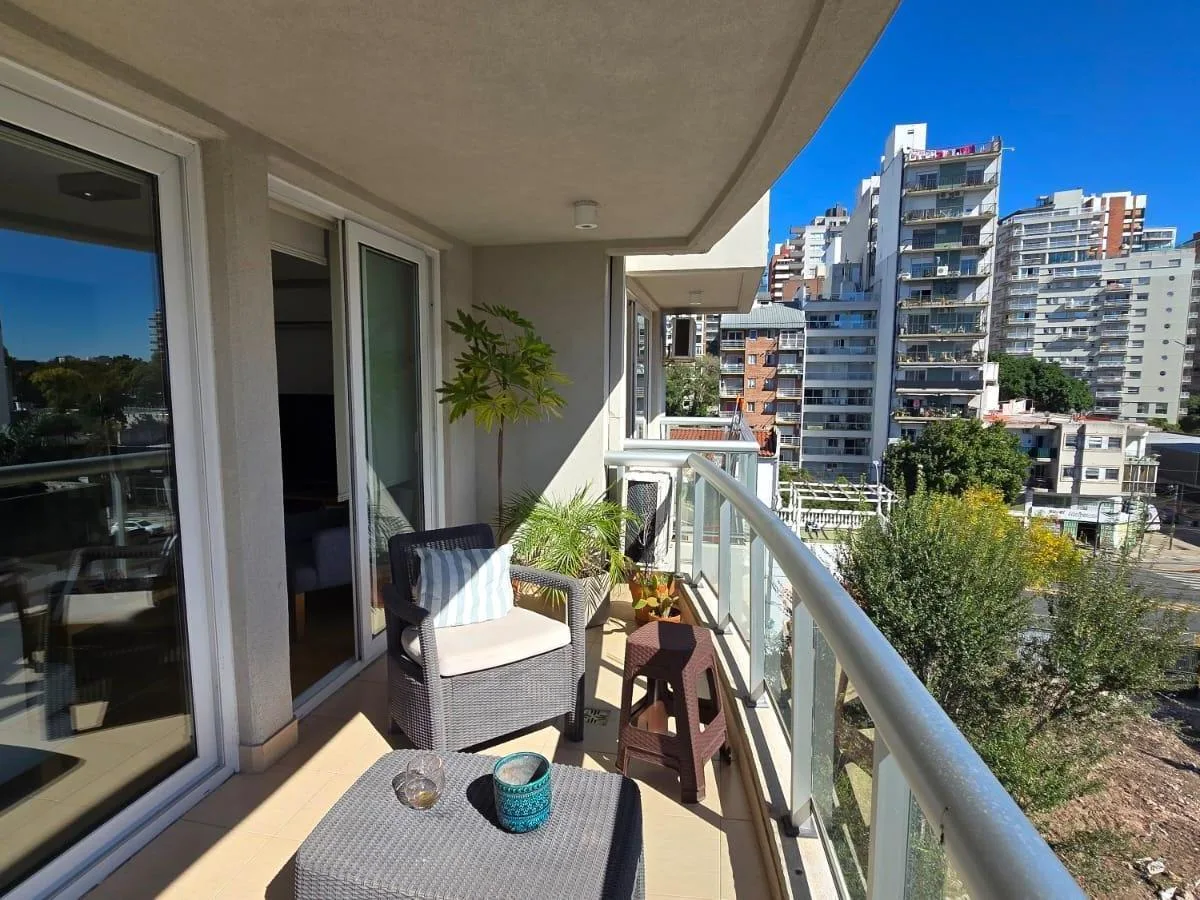 Apartamento de dois ambientes em Olivos, com 1 suíte, 1 banheiro completo e 1 lavabo adicional. Unidade com orientação noroeste, de fundos (contrafrente), com varanda. Edifício com elevador; imóvel com cerca de 5 anos e ar-condicionado individual; aceita animais de estimação.
