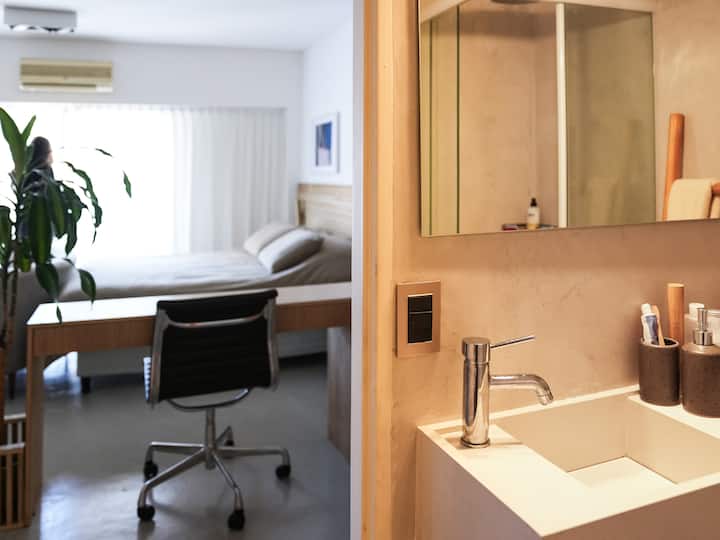 Apartamento em Palermo com varanda e 1 dormitório, mobiliado. Wi-Fi com velocidade de 150 Mbps, cama queen, Alexa e smart TV. Também inclui utensílios de cozinha e roupa de cama, com opções para estadias de longa duração. Fica na mesma quadra da Universidad de Palermo.