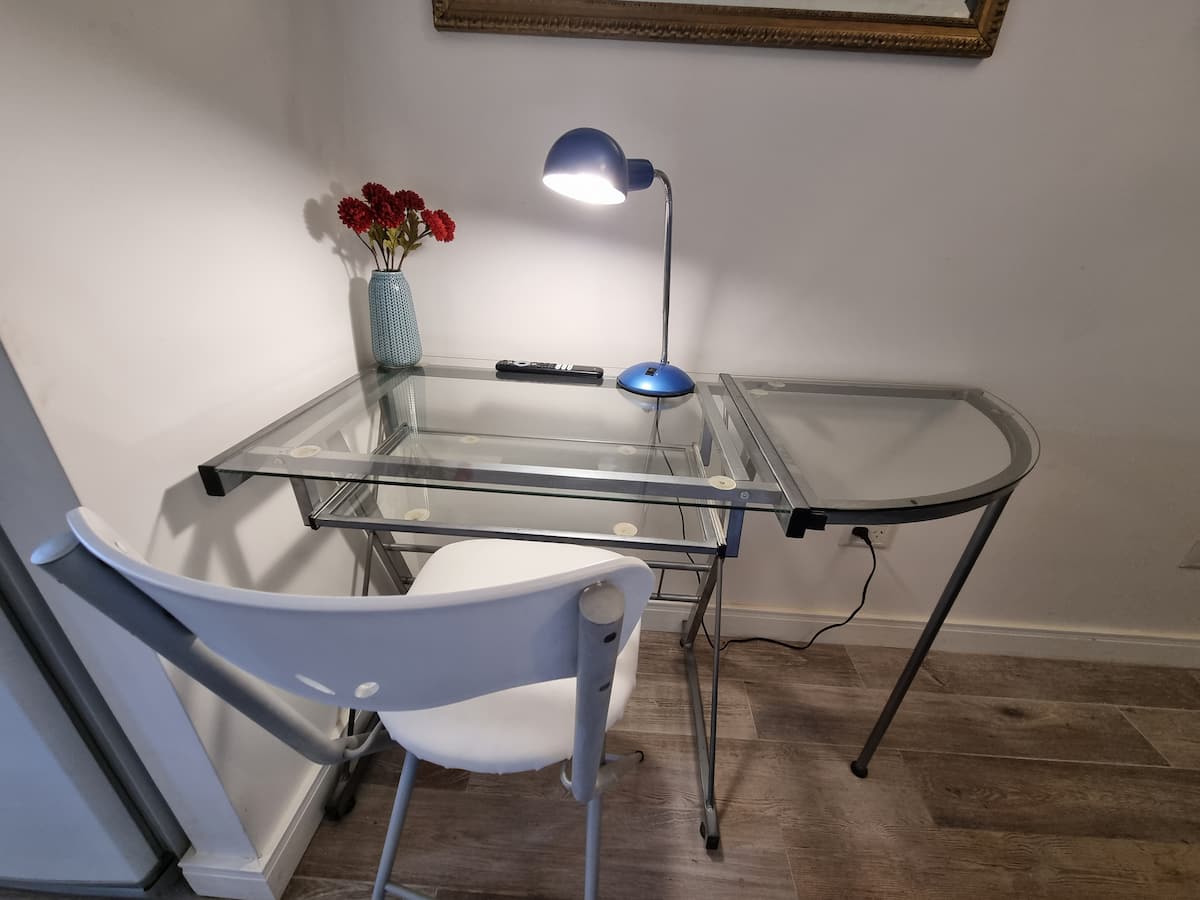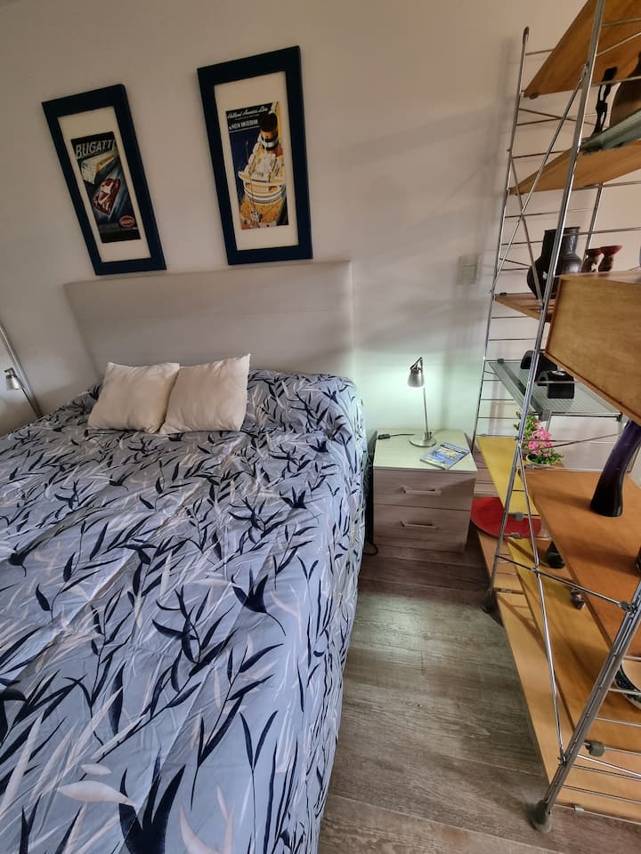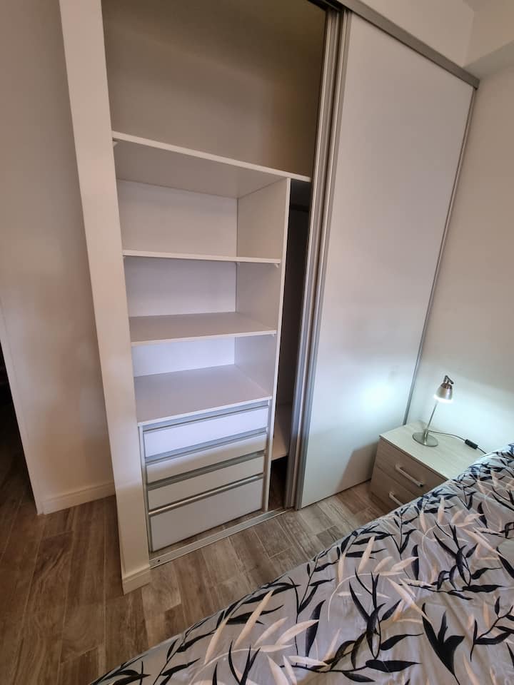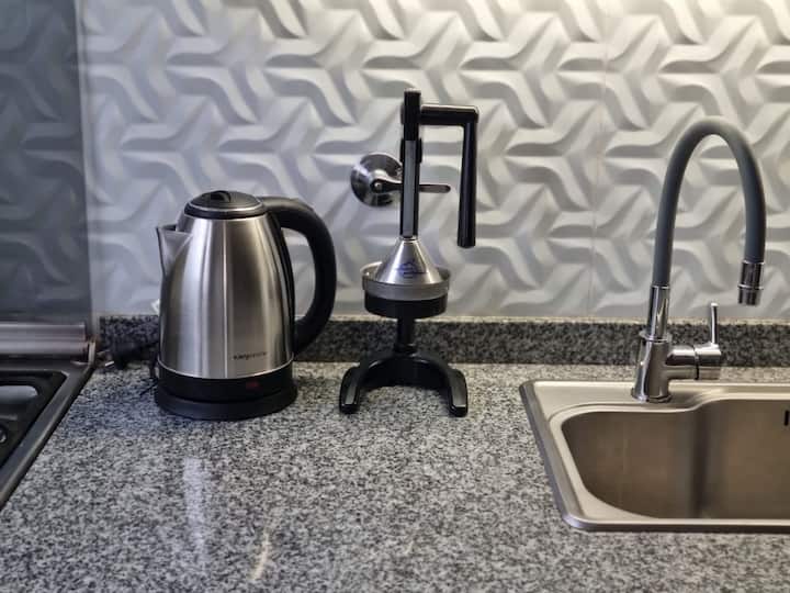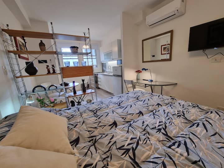 Apartamento tipo kitnet em Palermo Soho, com entrada independente e depósito para bagagens. Cozinha equipada com geladeira com freezer, fogão com forno, micro-ondas, cafeteira, chaleira elétrica, espremedor, torradeira e TV com acesso ao FLOW, além de internet de 300 MB. O imóvel foi reformado recentemente e inclui colchões novas e box springs com gavetas de armazenamento, com roupas de cama e itens de apoio. Há opção de deixar a bagagem antes do check-in e após o check-out.