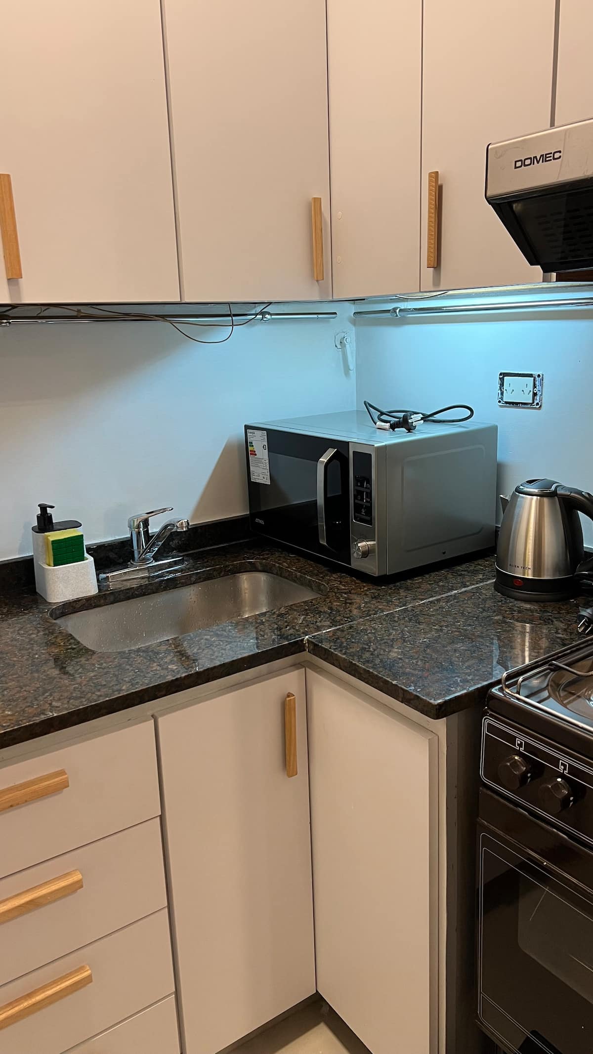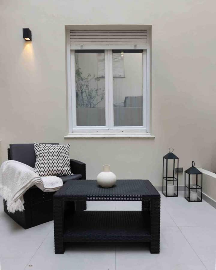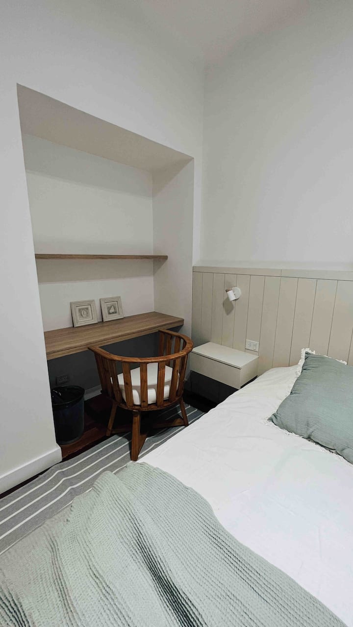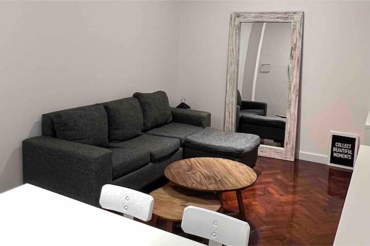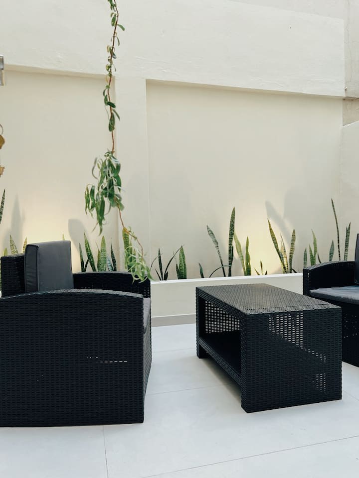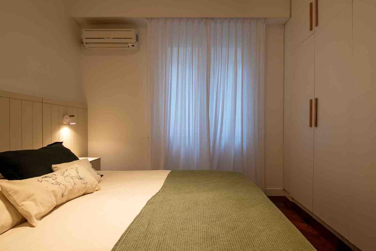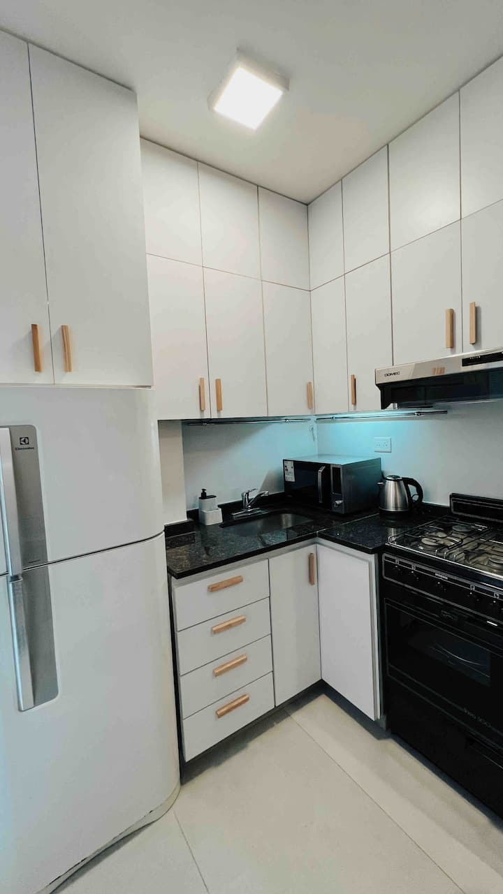 Apartamento de 50 m² no térreo, reformado, com cozinha equipada, banheiro completo e 1 dormitório com ar-condicionado (quente/frio). Há um escritório no dormitório e um sofá que pode ser usado por uma terceira pessoa sem custo adicional. Conta com pátio e área externa. Fica a meio quarteirão da Av. Cabildo, a 50 m da parada de ônibus e a 2 quadras da estação de metrô; há mercado e lavanderia em frente ao imóvel.