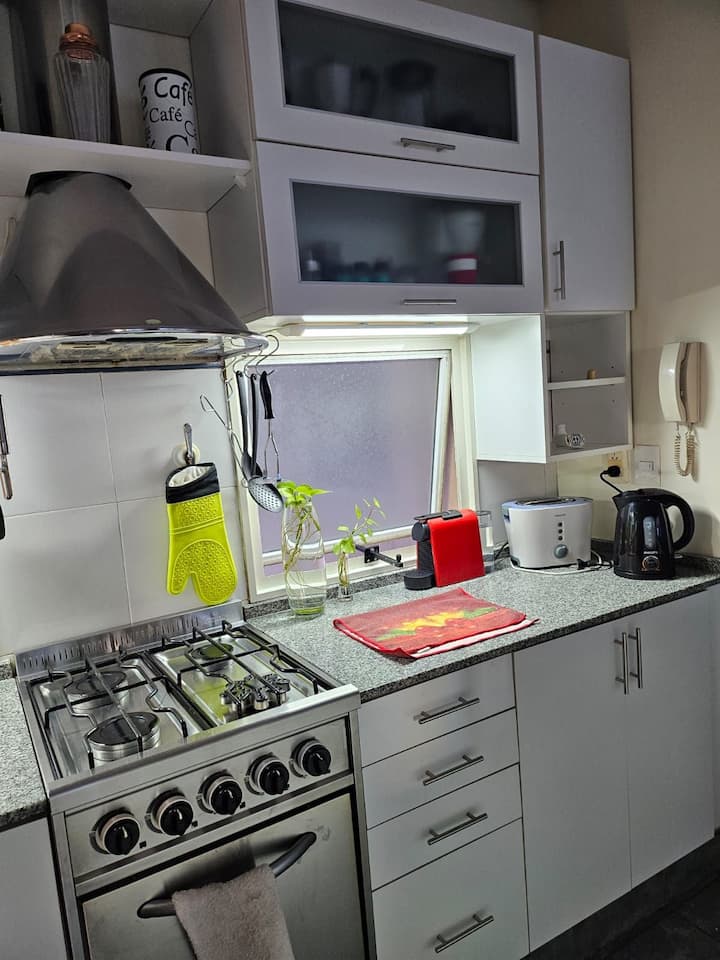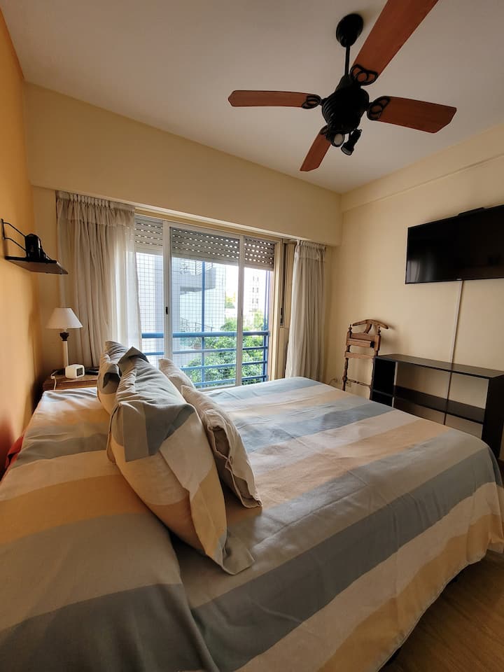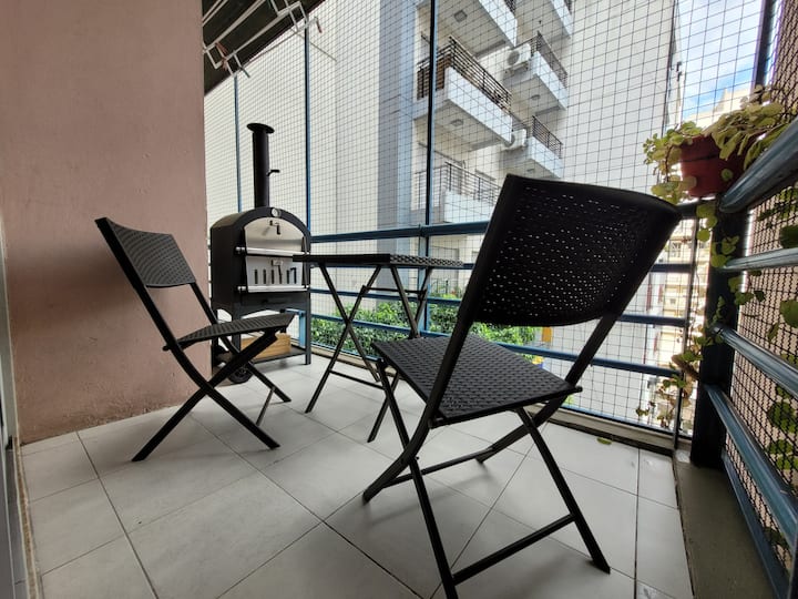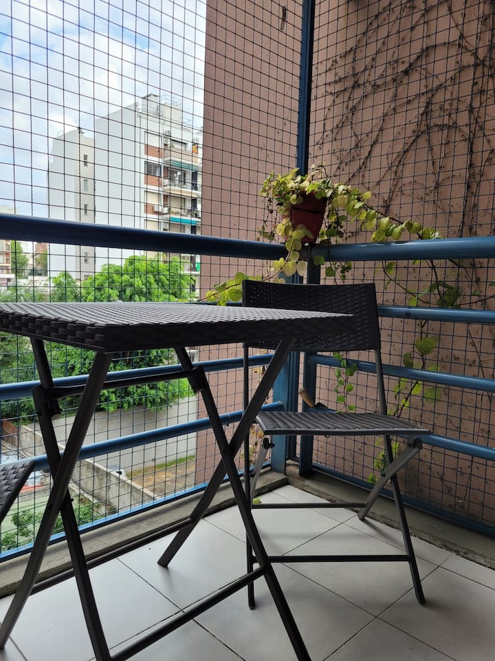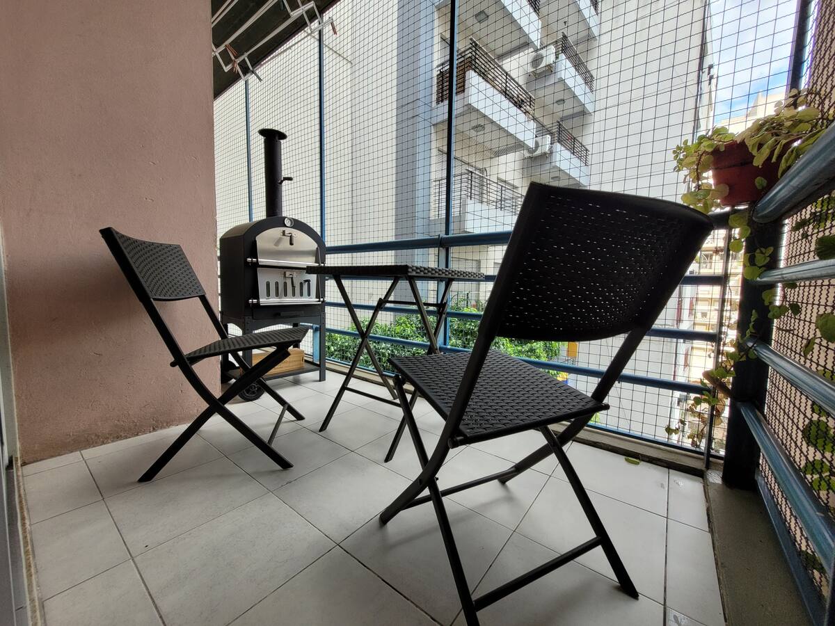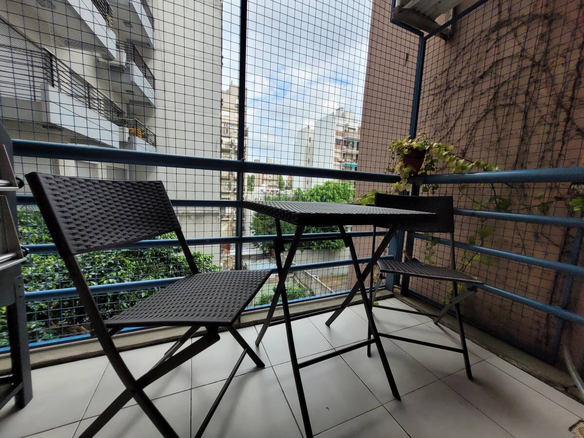 Apartamento de dois ambientes em Palermo, com varanda e área de churrasco. Imóvel mobiliado e totalmente equipado com Wi-Fi, PlayStation 4, ar-condicionado e máquina de lavar.