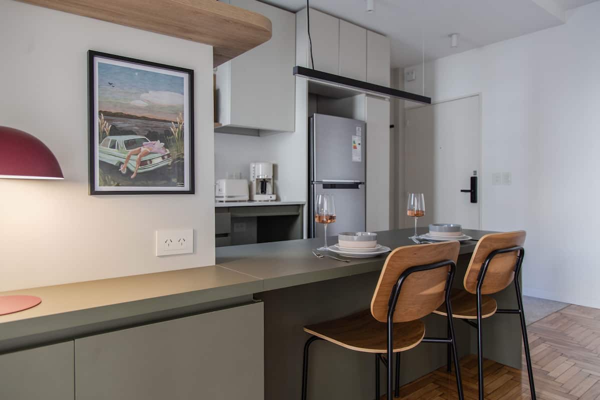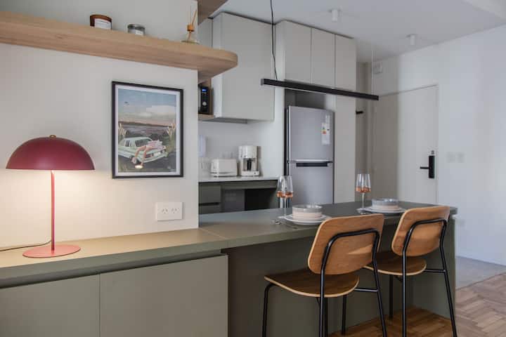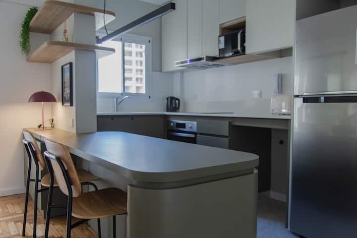 Apartamento em Palermo Soho, recentemente reformado. Tem 1 quarto e cozinha totalmente equipada. Inclui uma área de trabalho. A localização é em Palermo Soho.