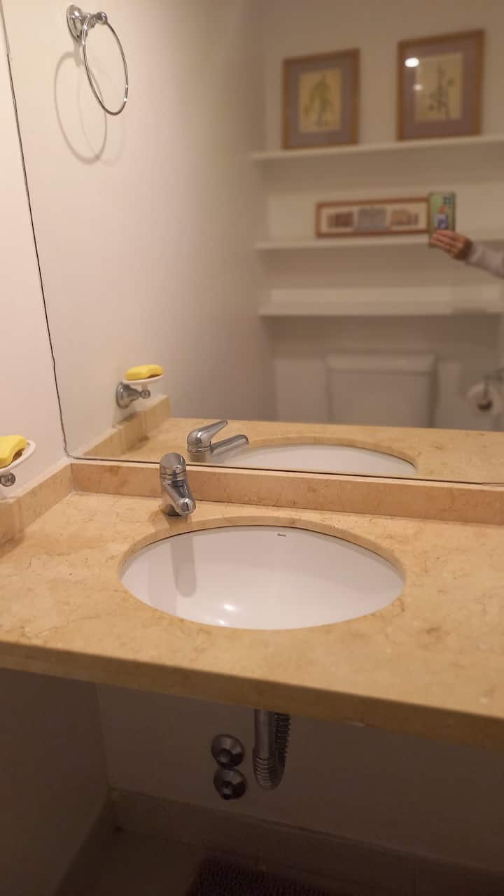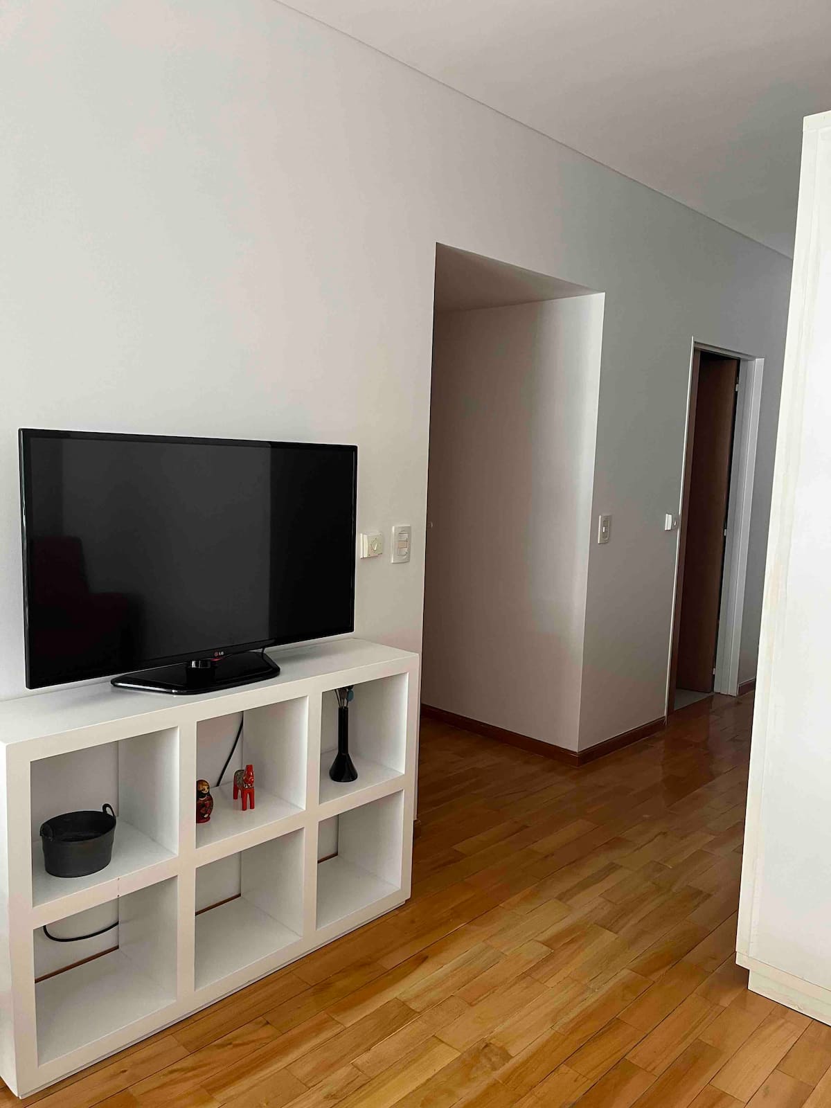 Apartamento em Palermo com 44 m², 1 dormitório em suíte, sala de estar e cozinha integrada com mesa. O imóvel tem varanda, geladeira grande, micro-ondas e 2 banheiros (um na suíte, mais um para visitantes). A conexão Wi‑Fi é por fibra óptica; a listagem menciona 300 Mbps (também citada como 500 megabytes) da Iplan. O prédio conta com piscina, área de churrasco e lavanderia.