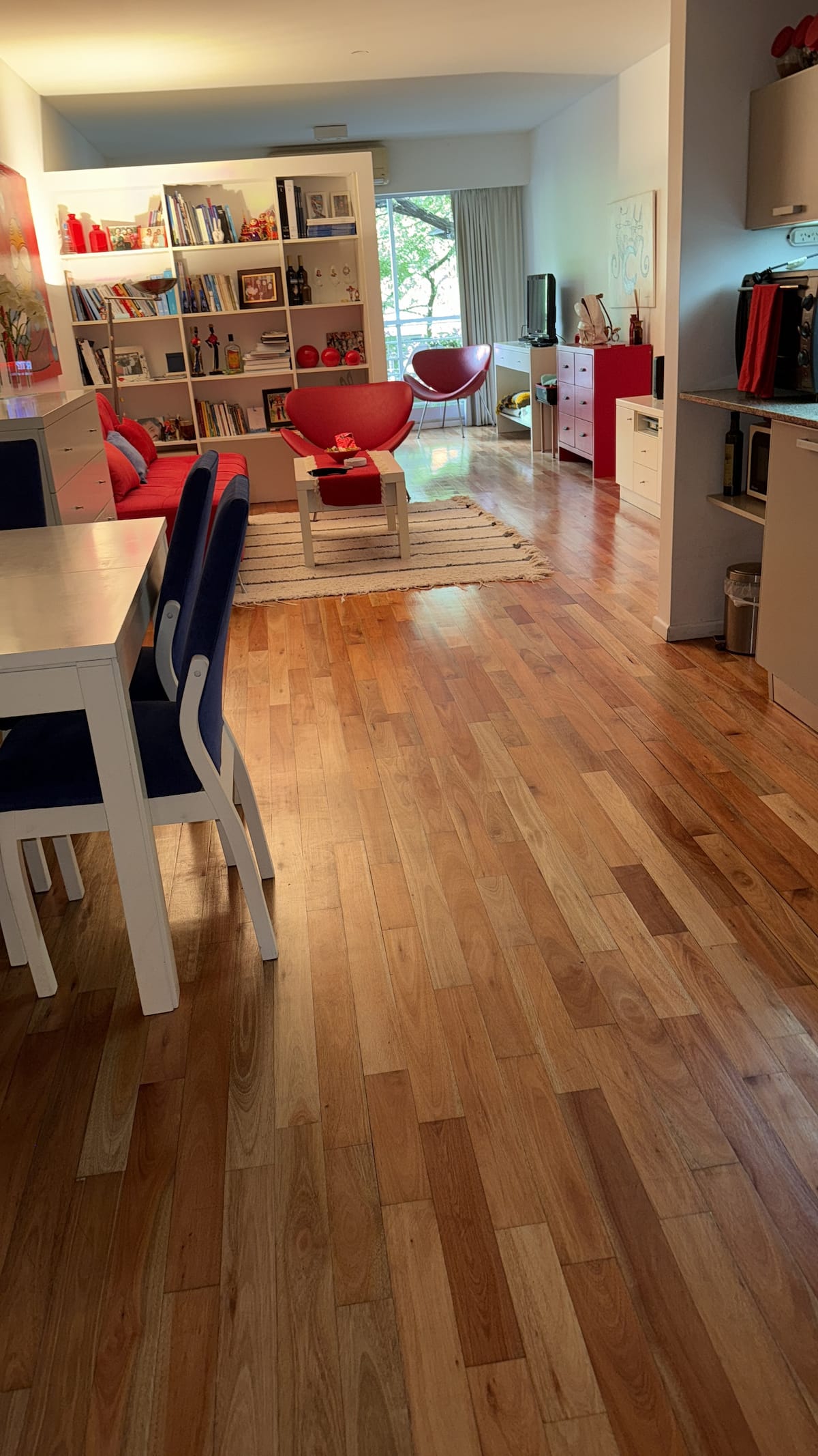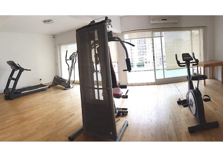 Elevador, lavadora, mercado próximo, quarto silencioso.