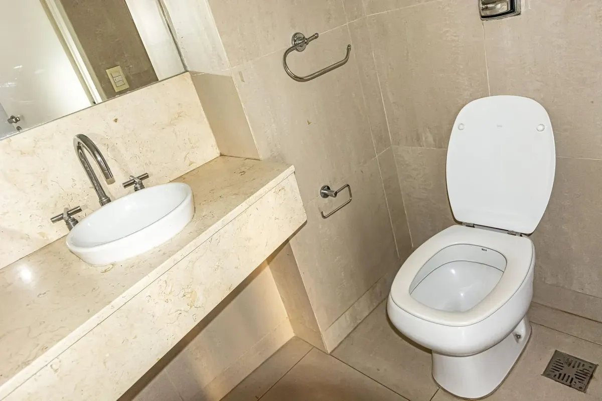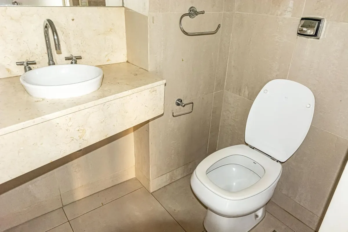 Apartamento de 2 ambientes de fundos, com varanda ampla. Cozinha integrada com barra passa-pratos e espaço para armazenamento, além de dormitório com amplo armário embutido. Possui banheiro completo em suíte e lavabo. O edifício tem piscina, solarium, área de churrasco e lavanderia.