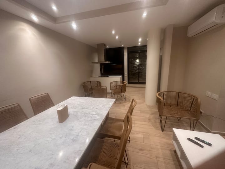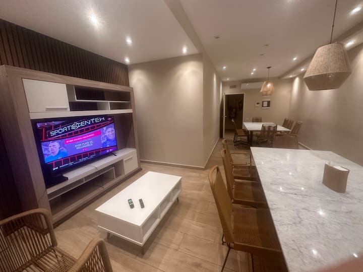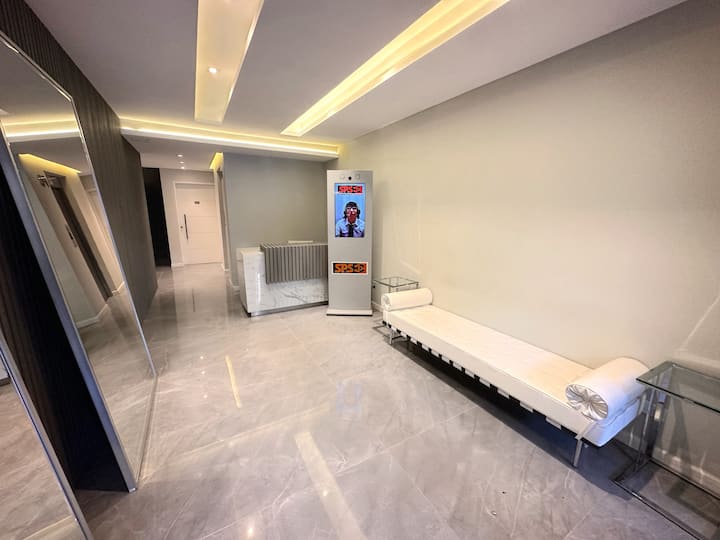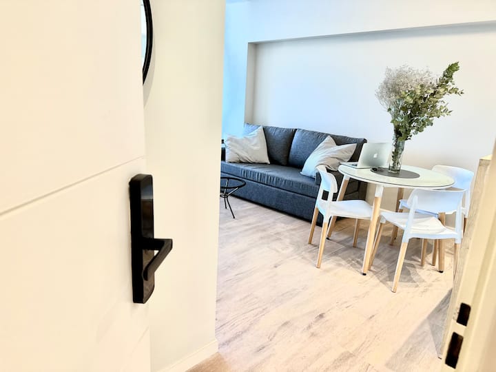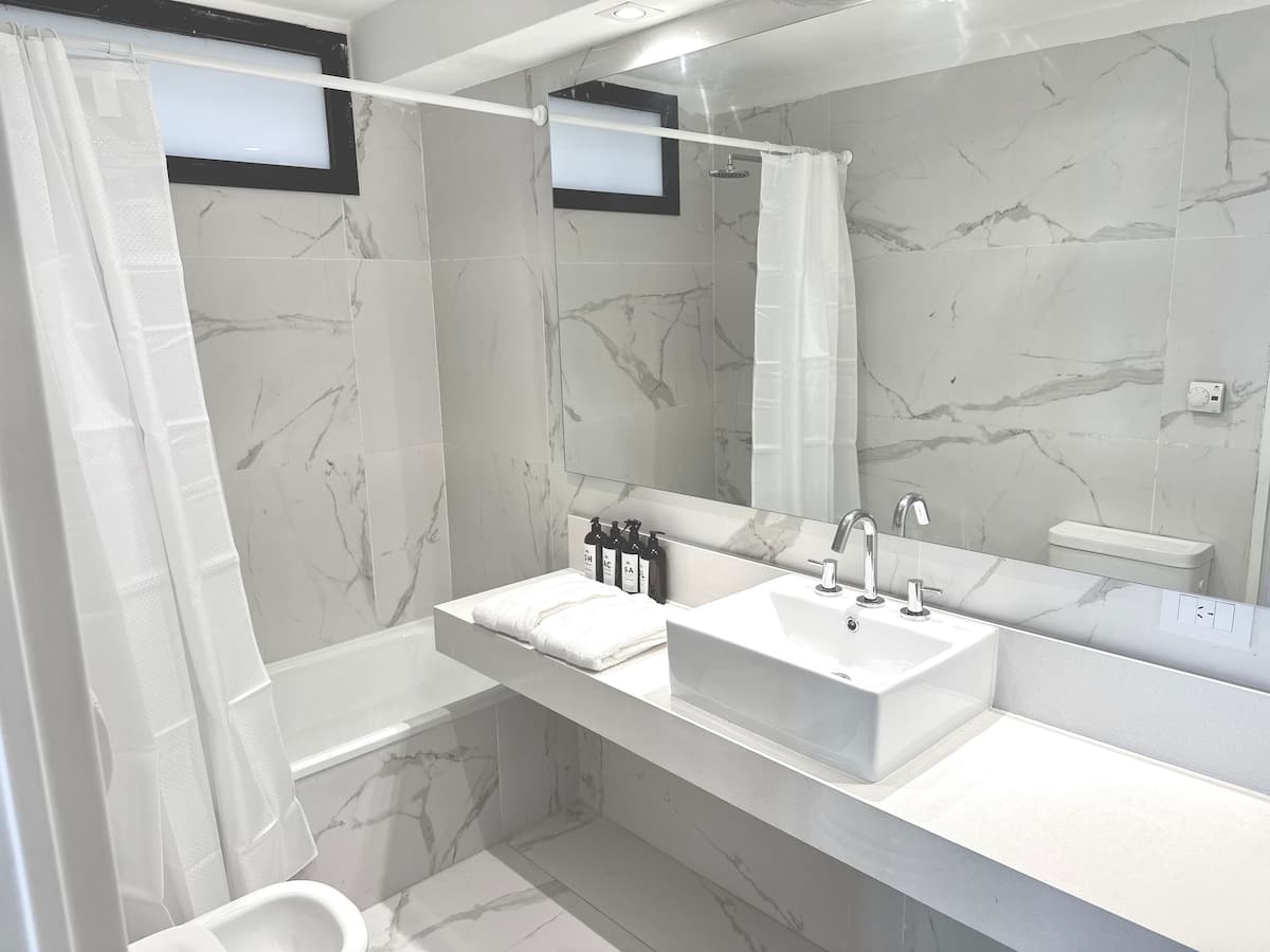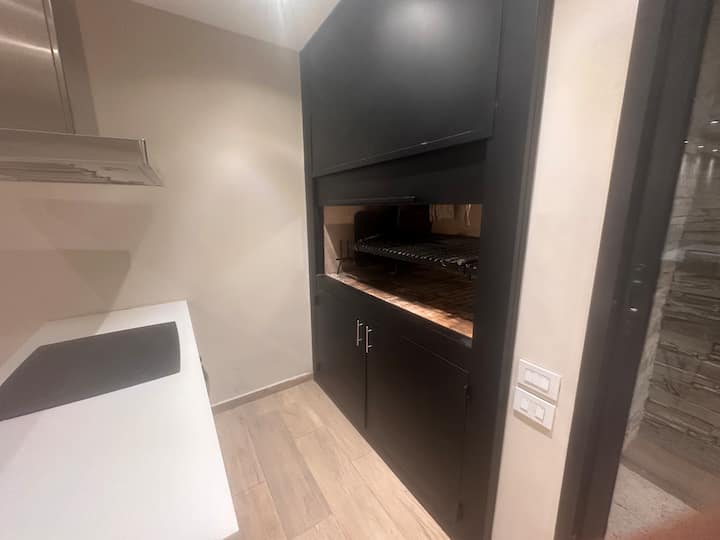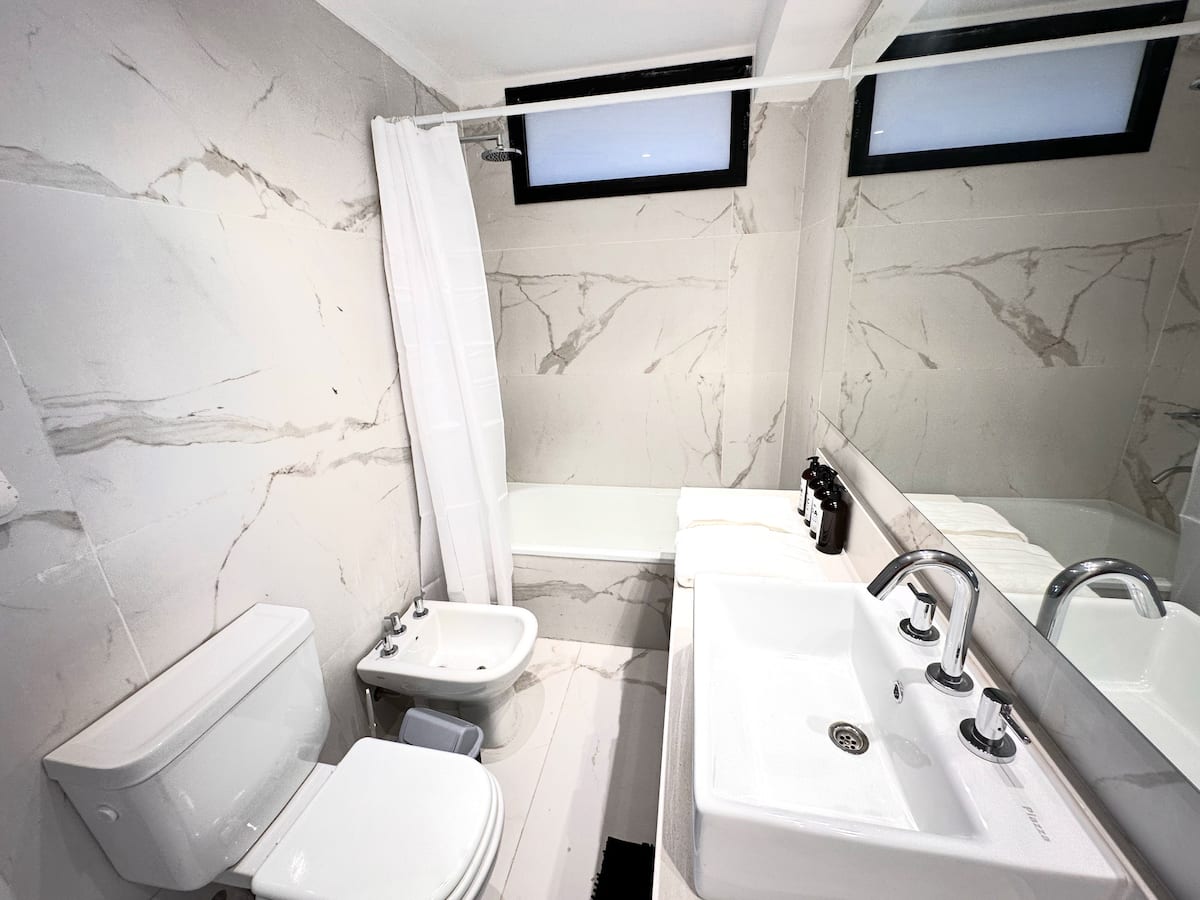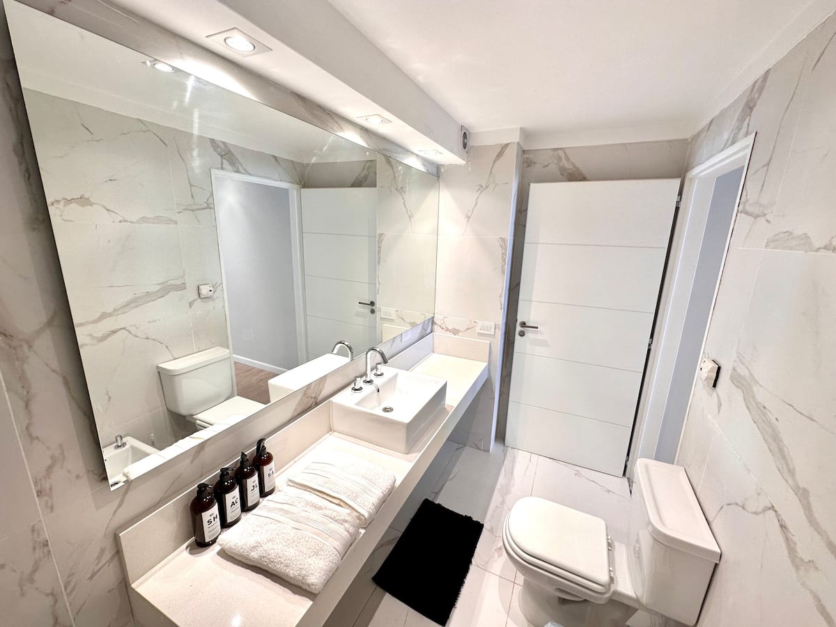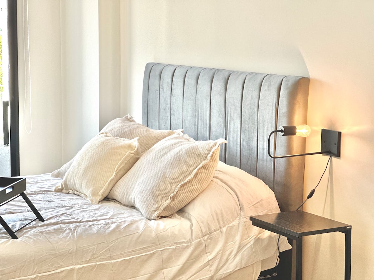 Kitnet mobiliada em Palermo Hollywood, em prédio novo. A unidade tem varanda ampla, cama queen-size, sofá-cama e Smart TV de 43”. A cozinha traz fogão cerâmico de 4 bocas, forno elétrico, micro-ondas digital e geladeira com freezer, além de utensílios. O prédio oferece piscina na cobertura, área de churrasco (grill), lavanderia e SUM, com acesso por fechadura digital e portaria com segurança 24 horas. Internet Wi-Fi de alta velocidade e check-in automático 24 horas estão disponíveis.