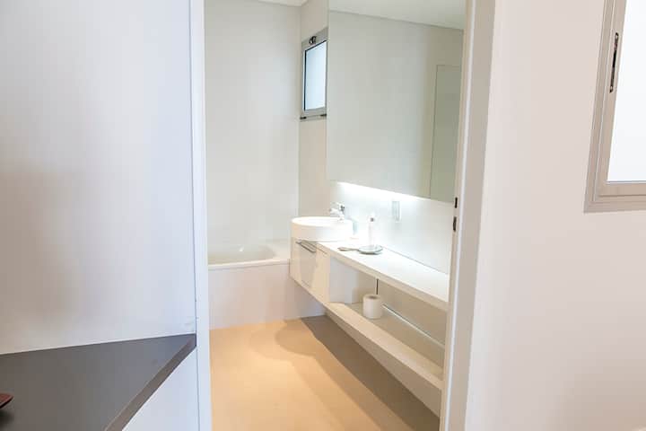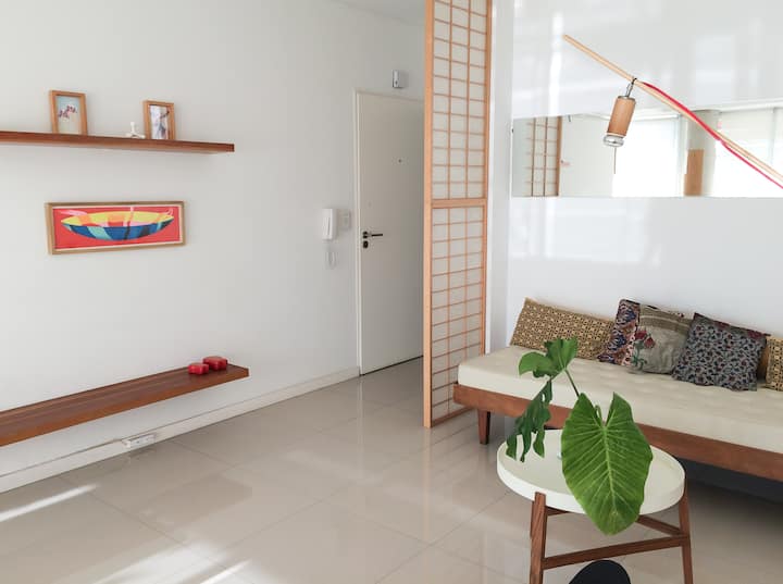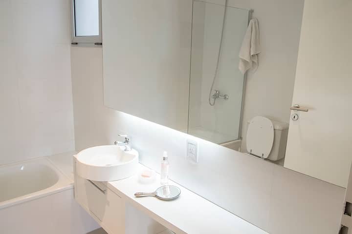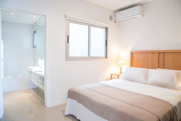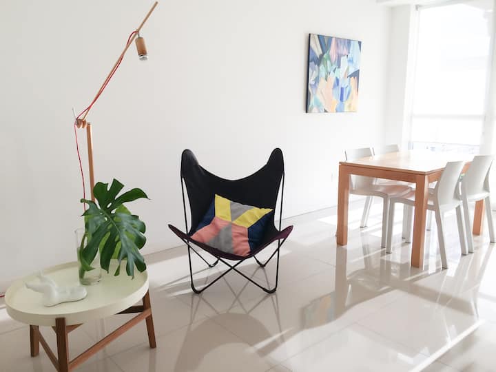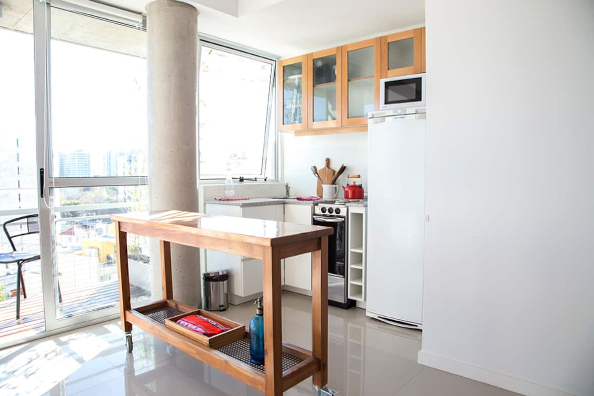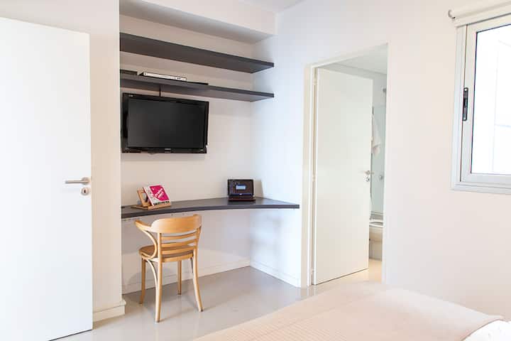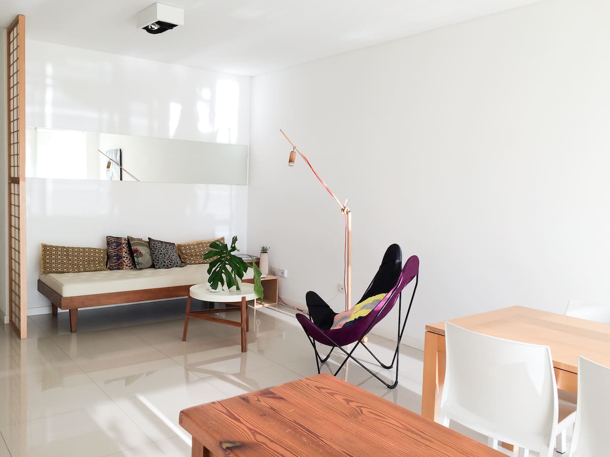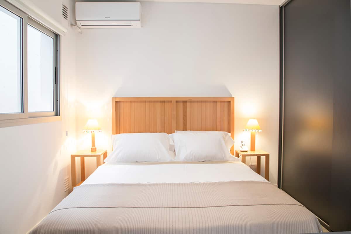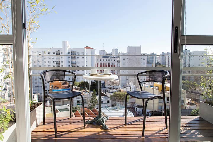 Apartamento em Palermo Hollywood para locação temporária com 1 quarto, varanda e ar-condicionado. O prédio oferece piscina, lavanderia e recursos como aquecimento central, internet Wi‑Fi, TV a cabo e cofre.