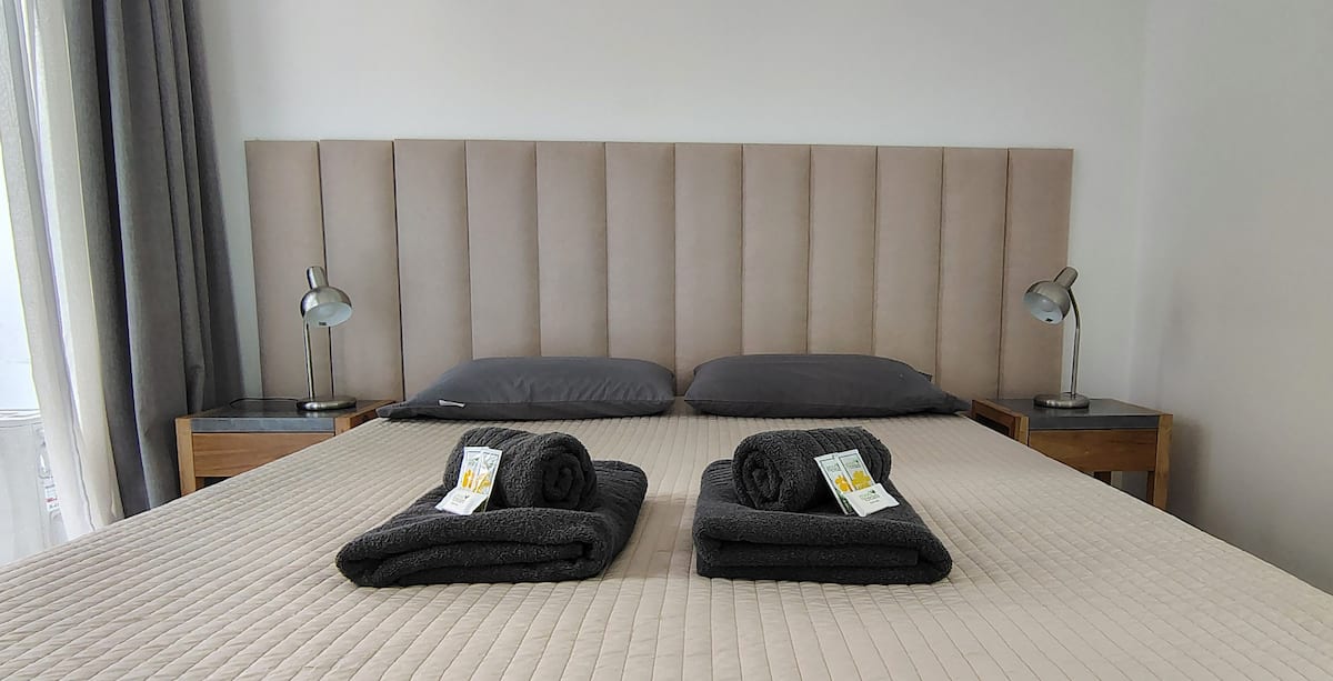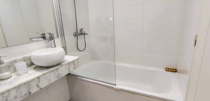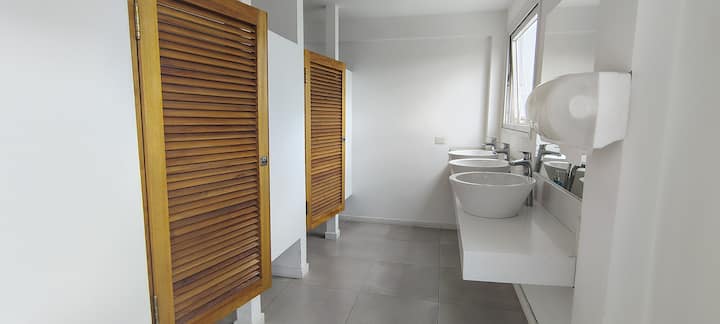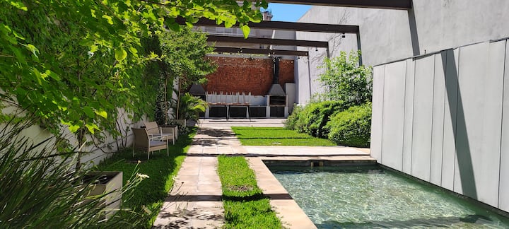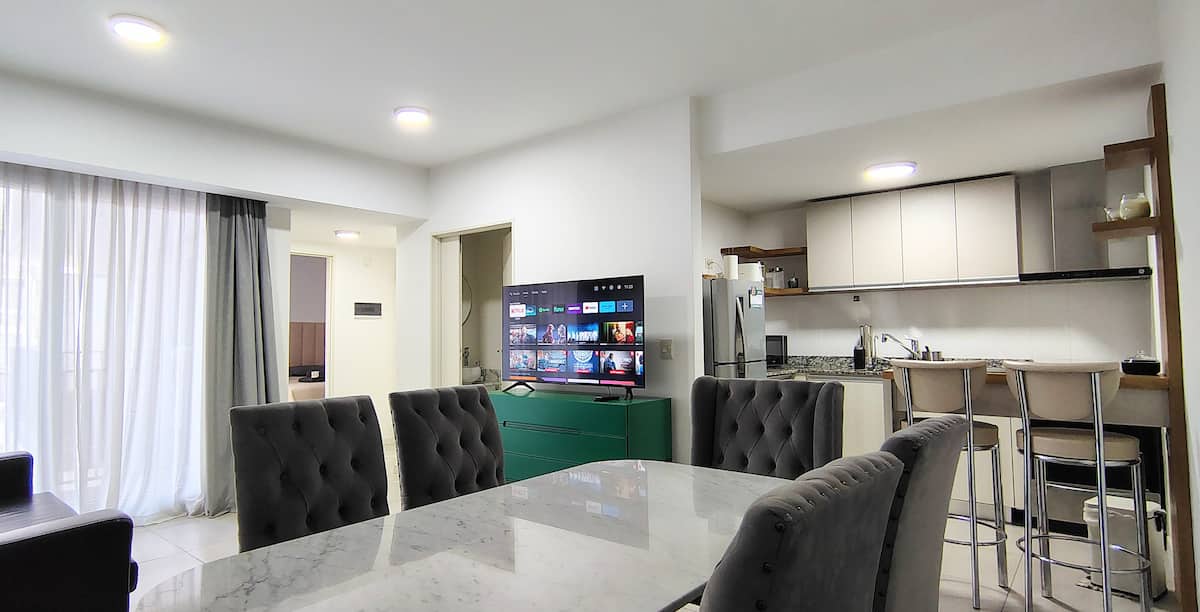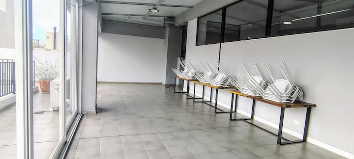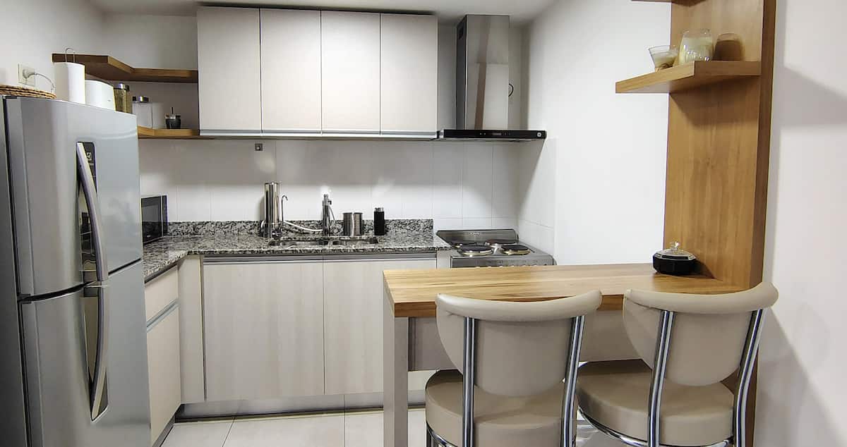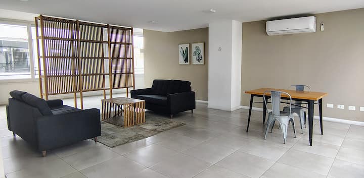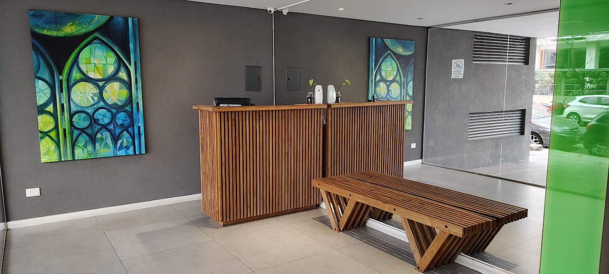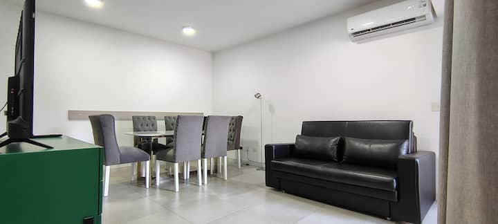 Apartamento em Palermo com 1 quarto, no 4º andar do edifício Vitreaux. Inclui sala de estar com sofá-cama, cozinha integrada com forno e fogão elétrico, micro-ondas, chaleira elétrica, cafeteira e torradeira, além de 2 banheiros (um deles privativo no quarto). O imóvel tem ar-condicionado e aquecimento em ambos os ambientes; inclui internet de alta velocidade e acesso gratuito à academia do prédio, além de piscina, lavanderia e espaço de cowork. O Sanatorio Guemes fica a cerca de 200 metros.
