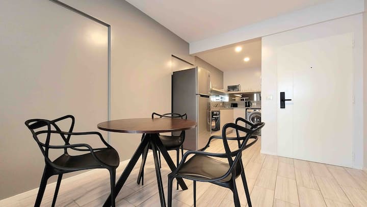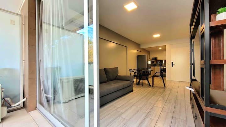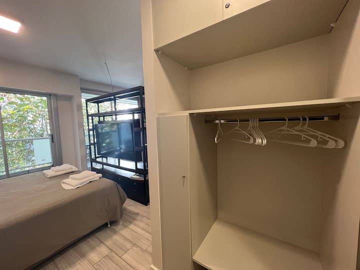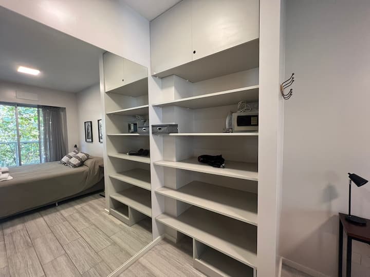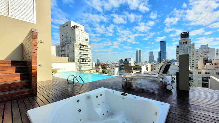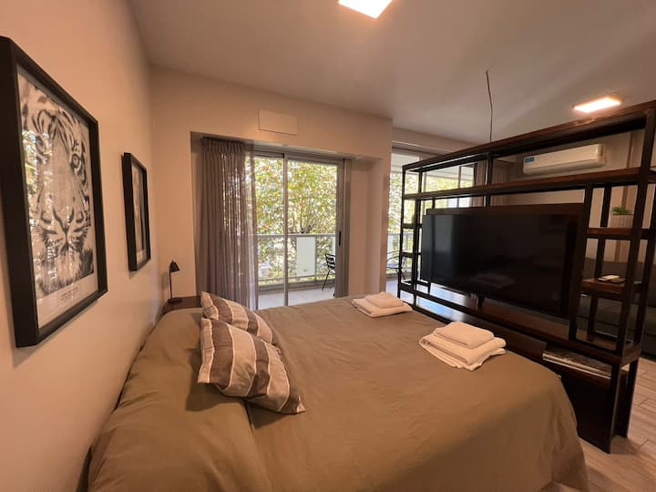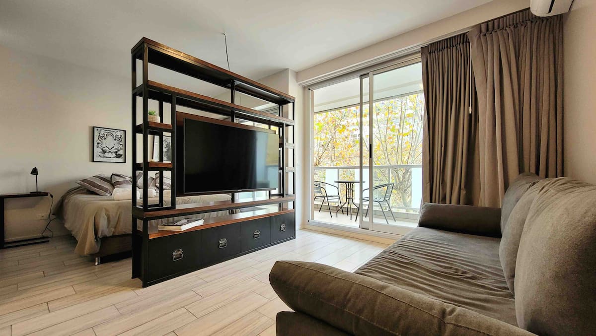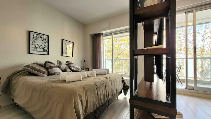 Apartamento em Palermo Soho com 1 quarto, com Smart TV, máquina de café Nespresso, máquina de lavar e Wi-Fi. O edifício tem segurança 24 horas, piscina grande com solário, academia e sala multiuso com churrasqueira e mesa de bilhar. Há acesso a todas as áreas comuns, com check-in e check-out automático.