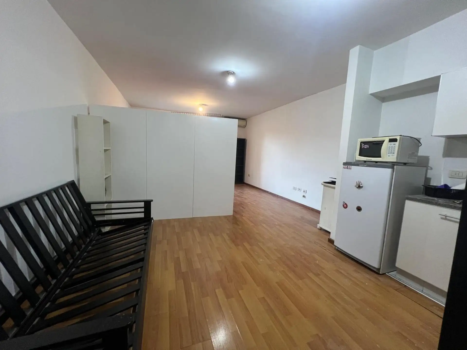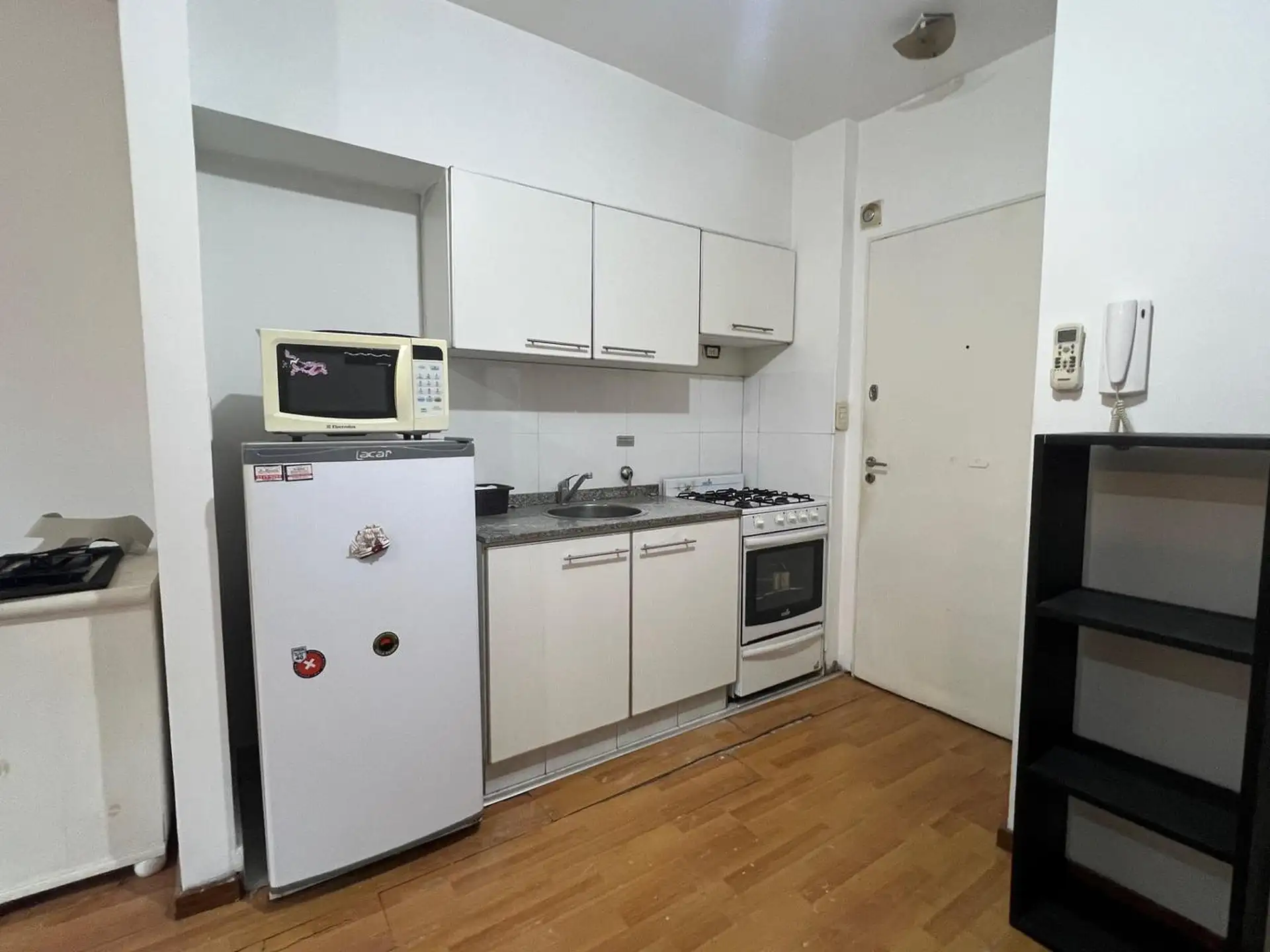 Kitnet divisível em Palermo Soho, no 5º andar de frente para a rua, com 1 banheiro. Semiamoblado: geladeira, micro-ondas, armários e cortinas, com ar-condicionado. Cozinha integrada com área de armazenamento e banheiro completo com banheira. O prédio tem piscina, solarium, área de churrasco e lavanderia. Contrato de 24 meses com reajuste trimestral pelo IPC. Requerimentos: comprovação de renda e garantia com imóvel próprio em CABA ou seguro de fiança (caución). Pagamento inicial de 1º mês de alu