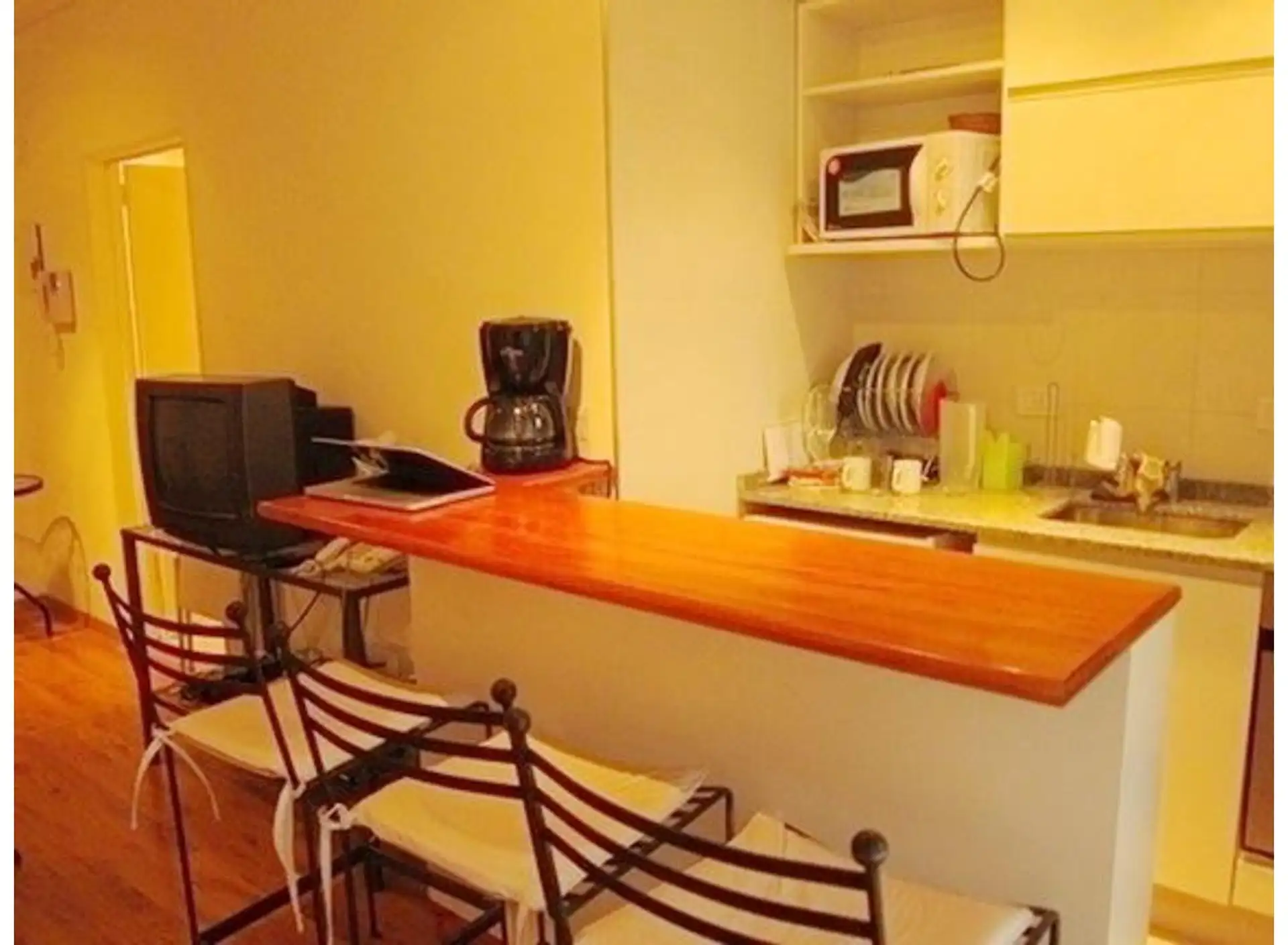 Apartamento de 2 ambientes novo, de frente para os fundos (contrafrente), com ar-condicionado frio/calor e balcão na parte de fundos. Cozinha estilo americana e banheiro completo. O prédio tem piscina, salão de usos múltiplos, área de churrasco, lavanderia e sauna, além de TV a cabo e Wi‑Fi.
